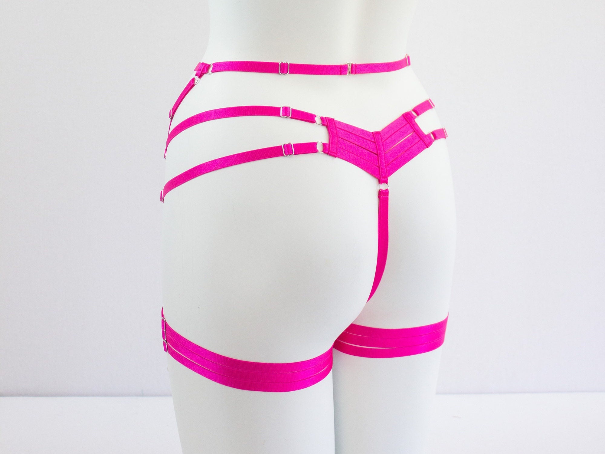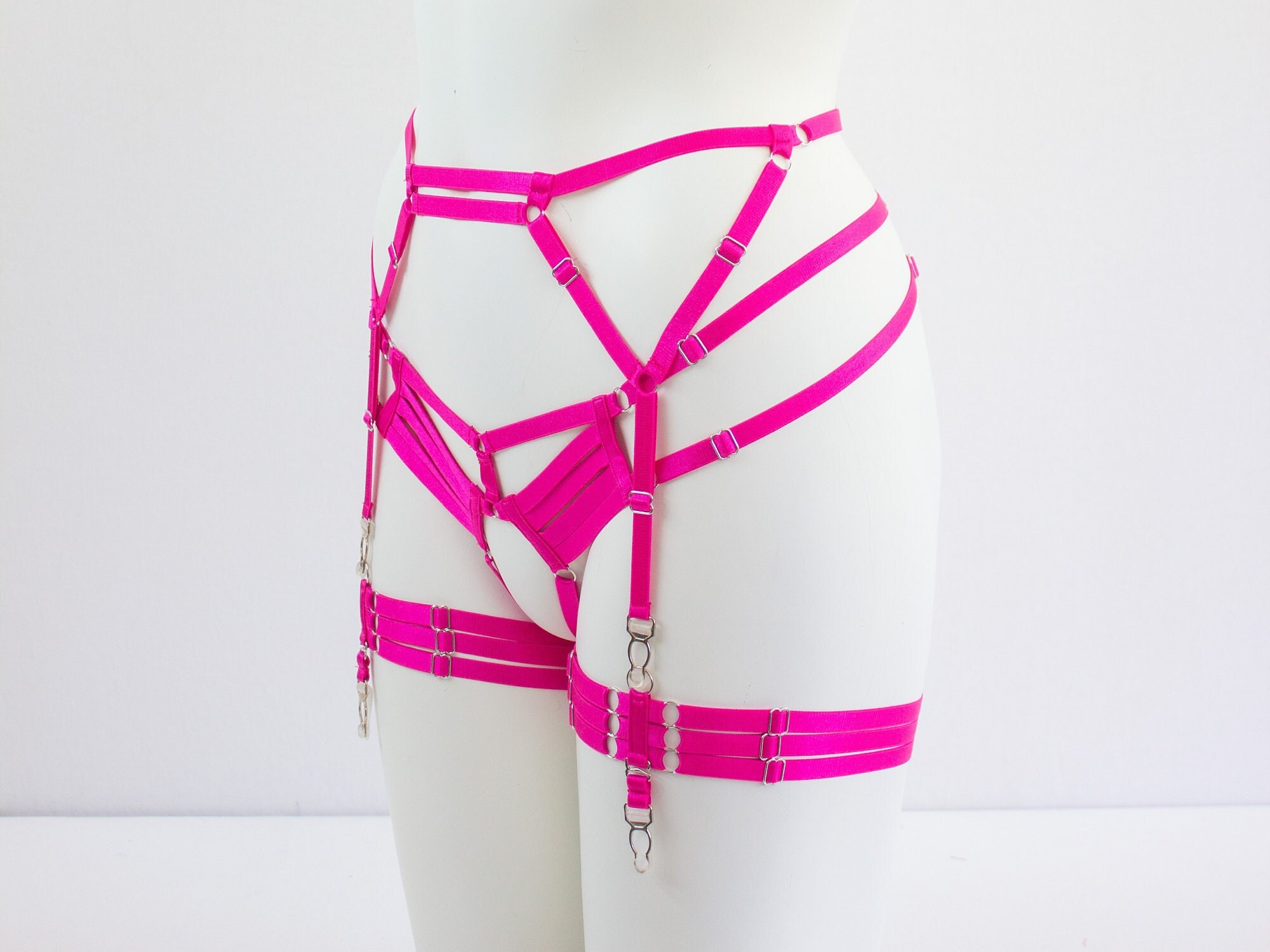 Pink Body Harness Lingerie Set, Pink Garter Belt, Pink Lingerie Set, Costume Harness, Harness Panties, Adjustable Harness, Exotic Dancewear