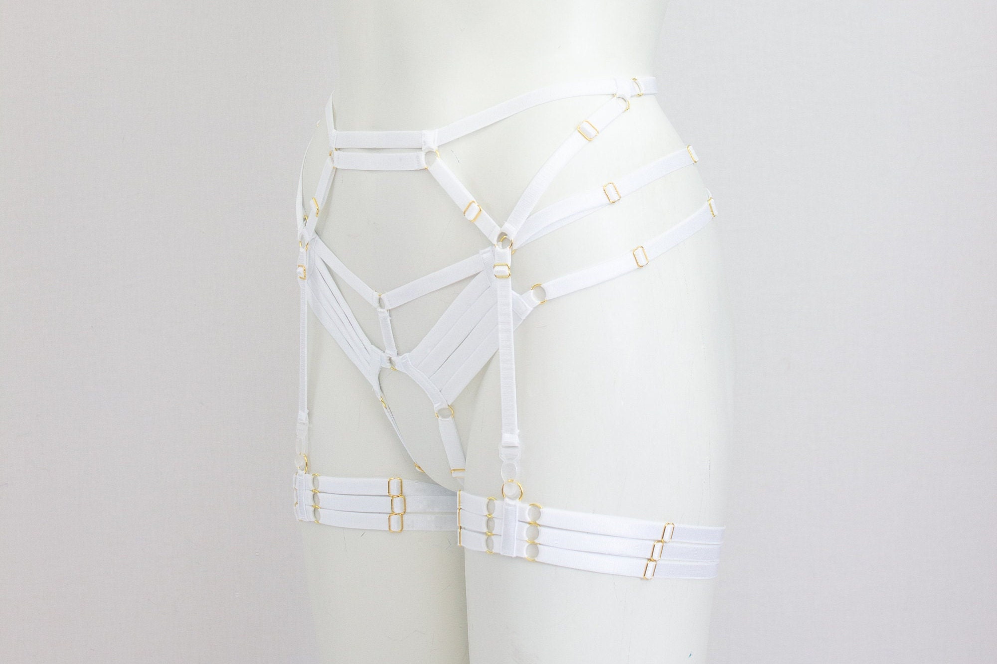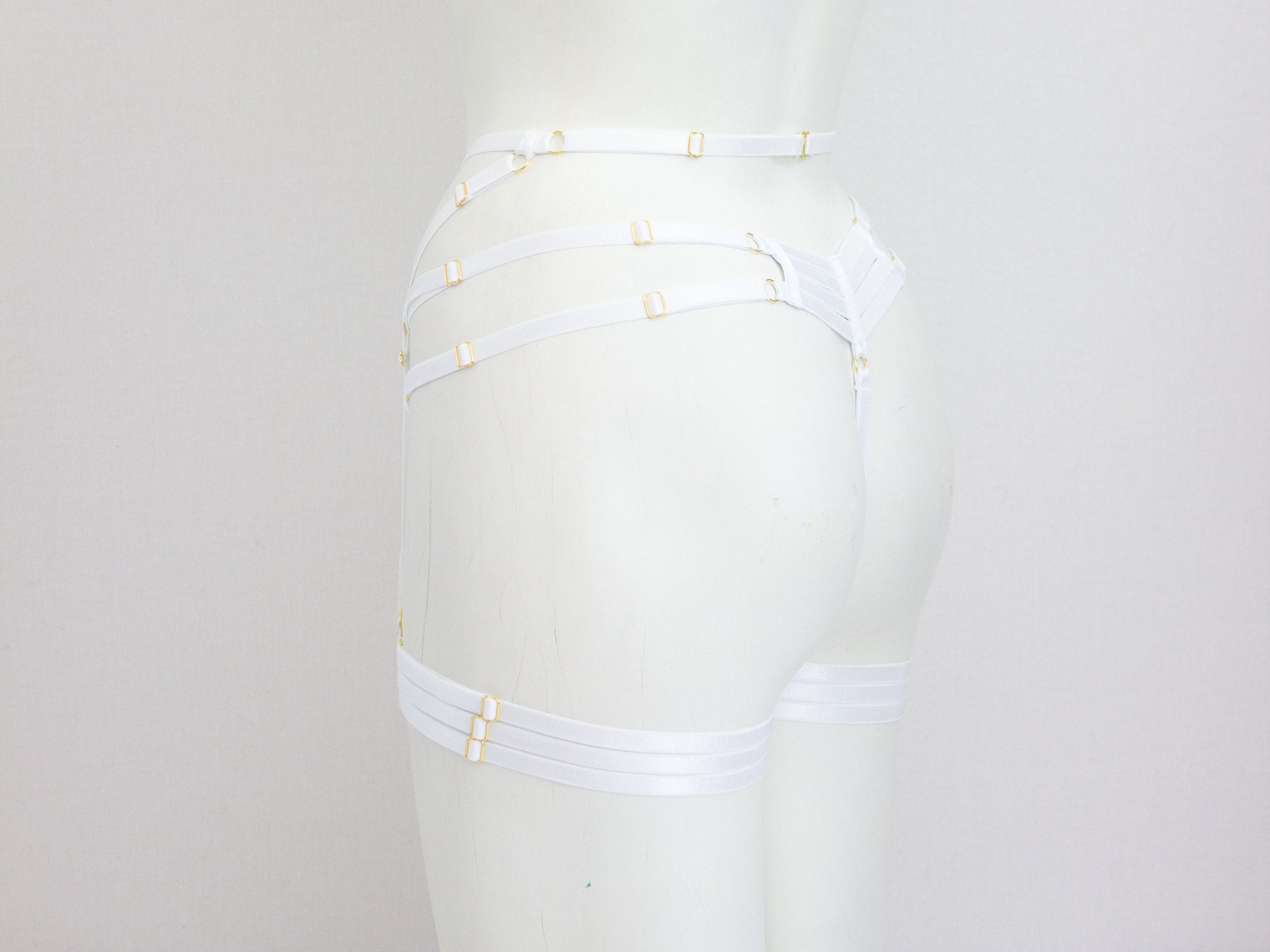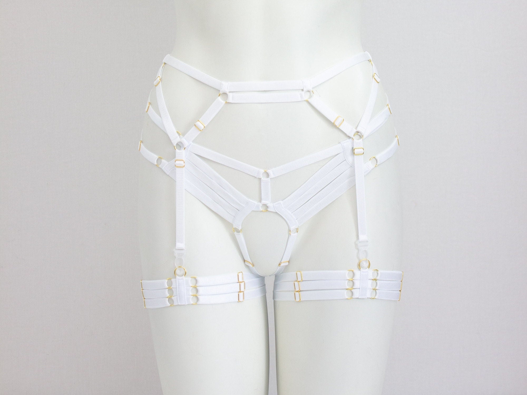 Wedding Garter Belt Set, Wedding Lingerie, White Lingerie, White Garter Belt, Harness Cage Garter, Waist Garter Belt, Glow UV Fashion, Rave Outfit