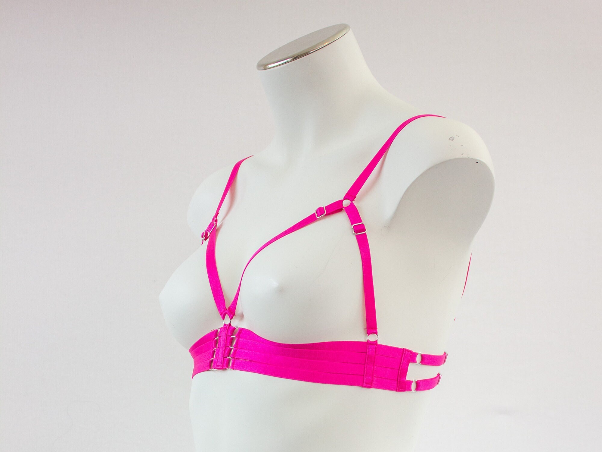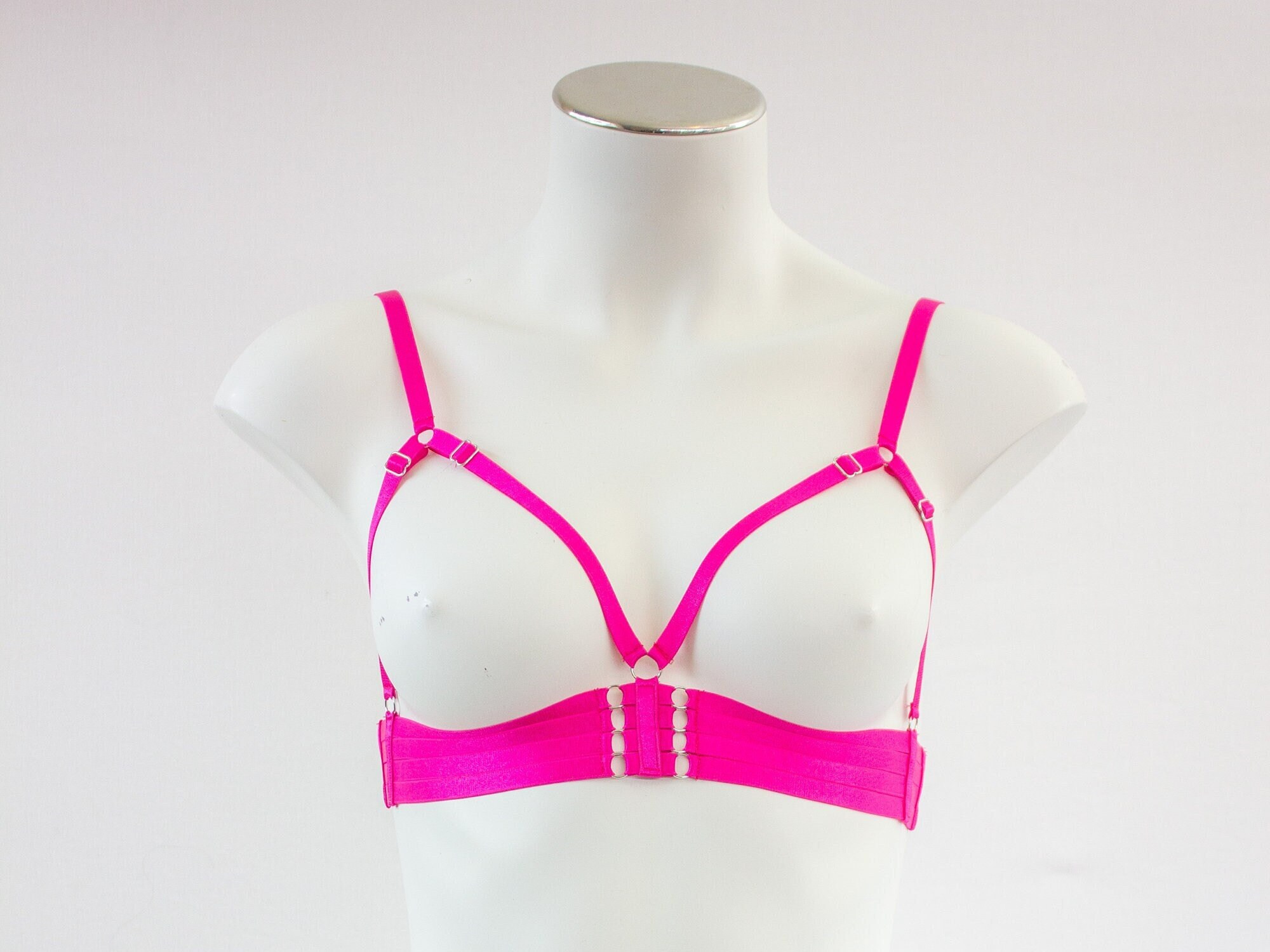 Pink Body Harness Lingerie Bralette, Triangle Cage Bra, Harness Top, Sexy Pink Lingerie, Boudoir Outfit, Festival Fashion, Pink DDLG Costume