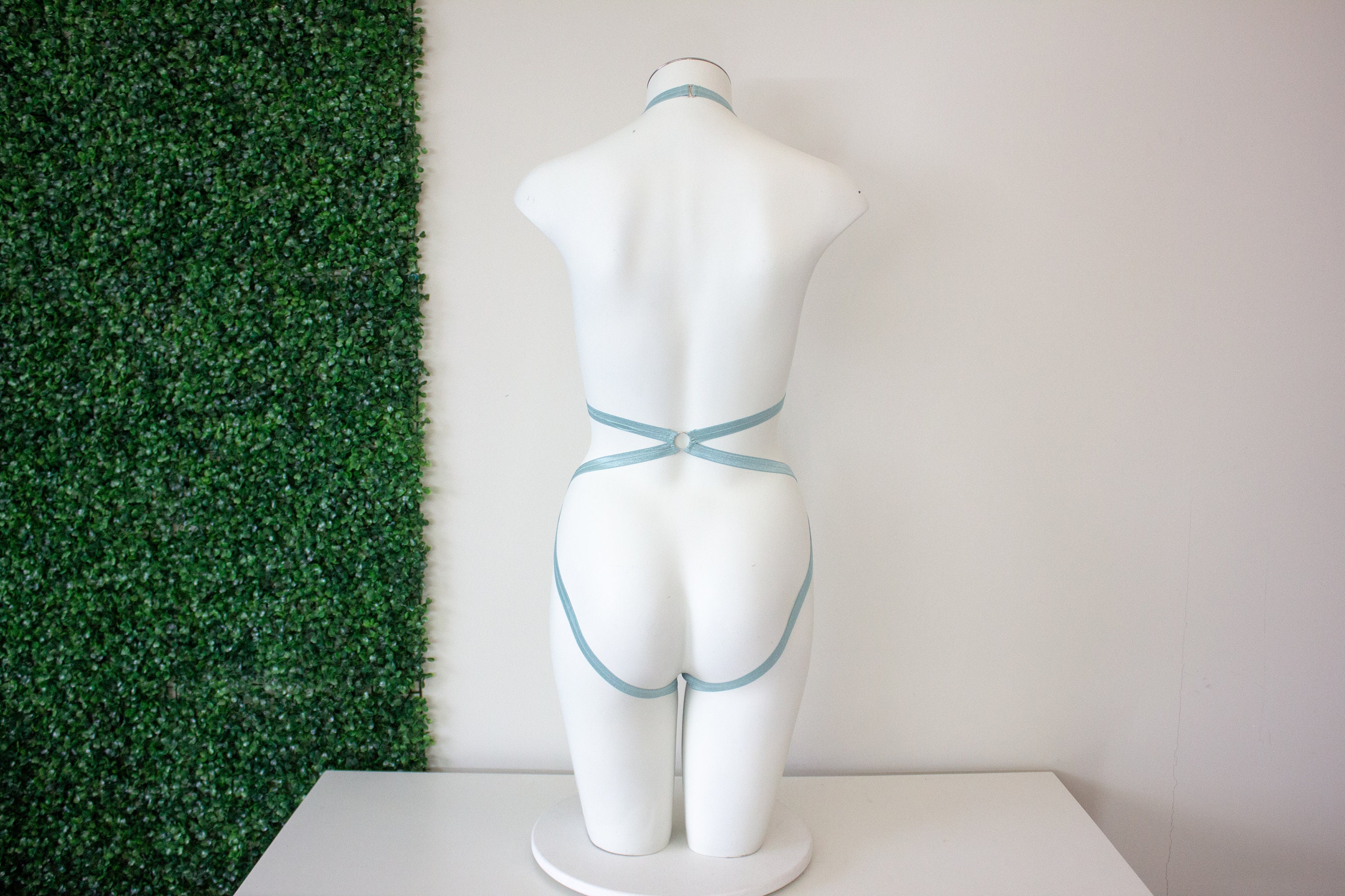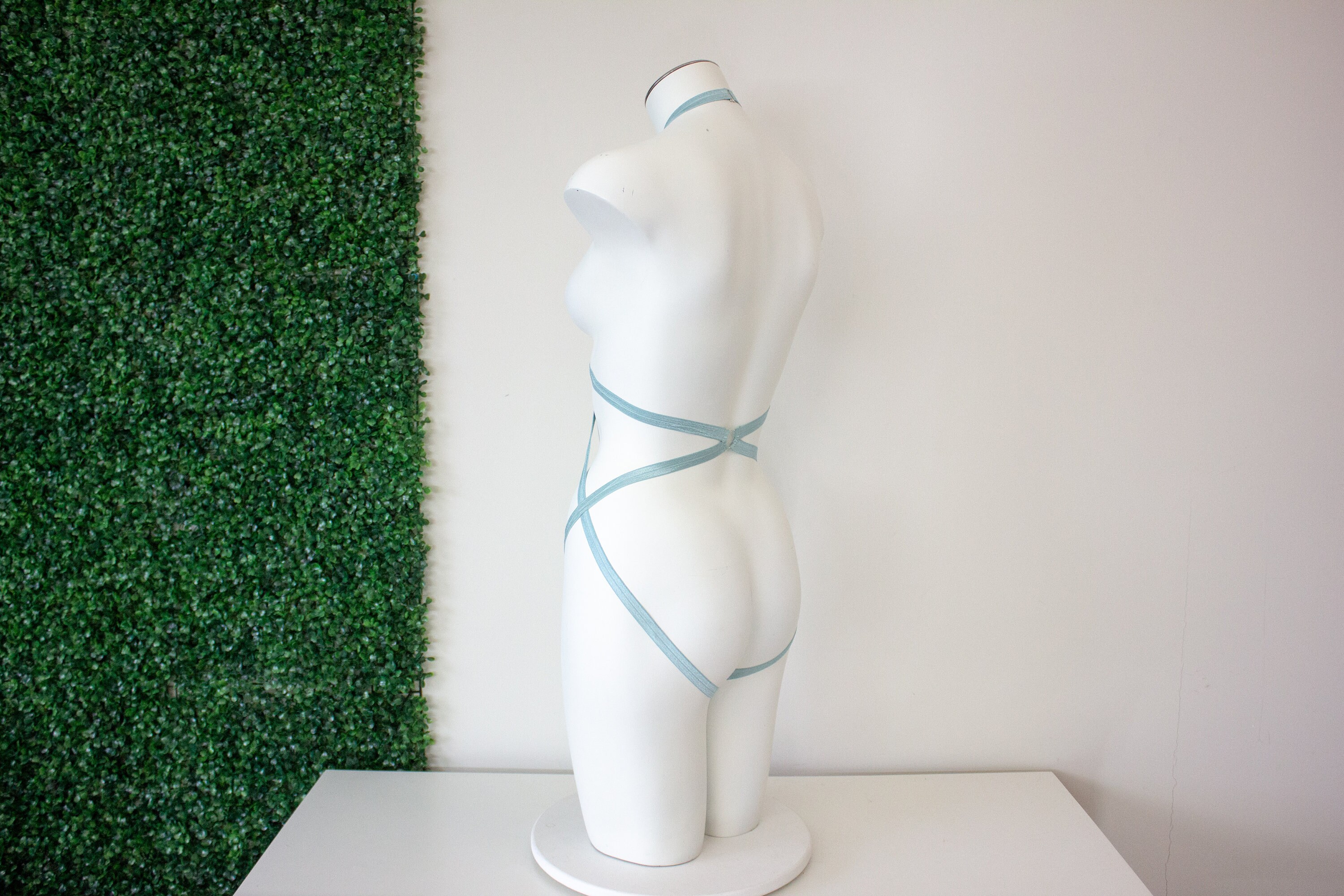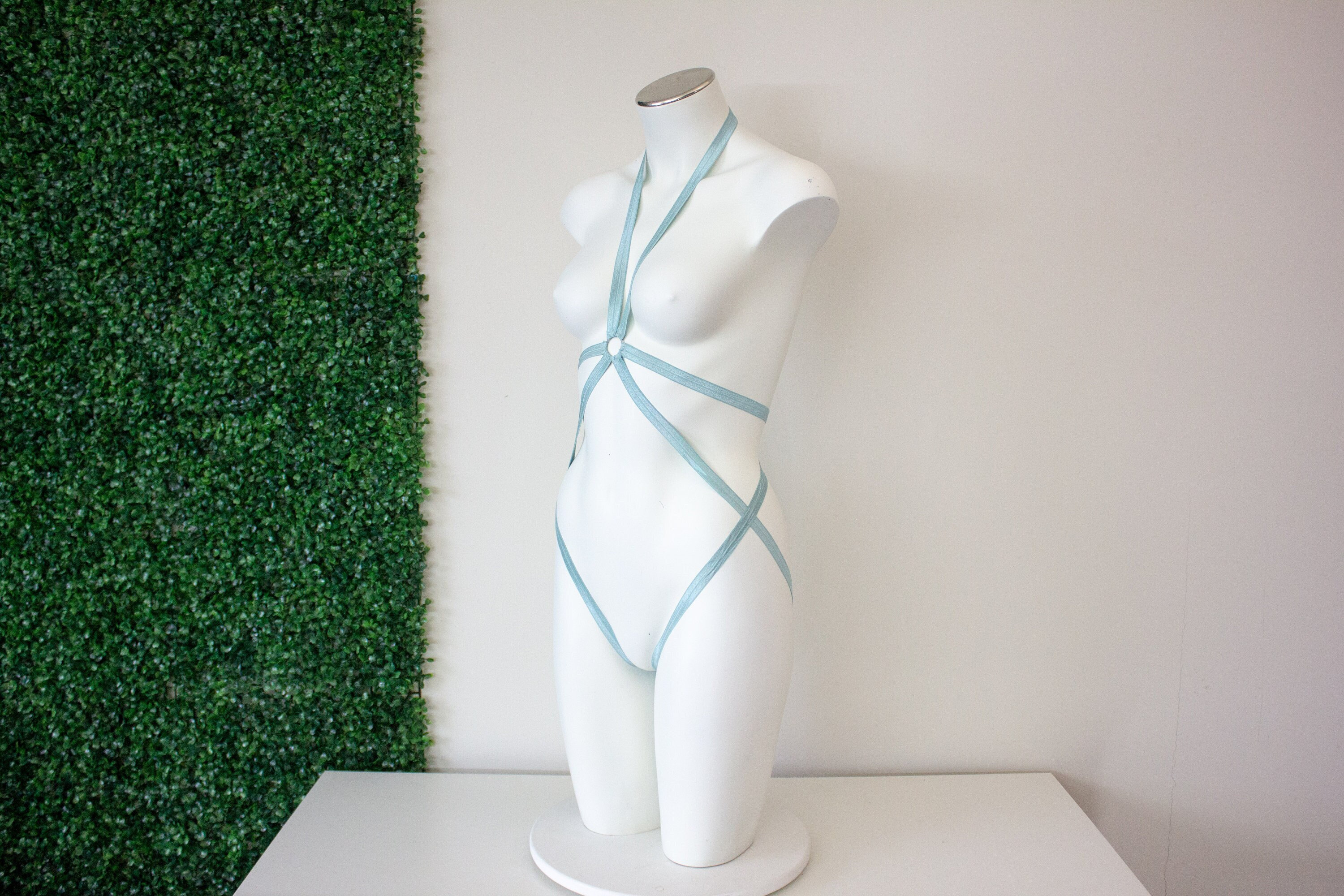 Minimalistic geometric base style bodysuit design for those who love a simplistic but sexy look or want something to build and accessories. Sexy, strappy, and simple. Easy to get in and out of.
