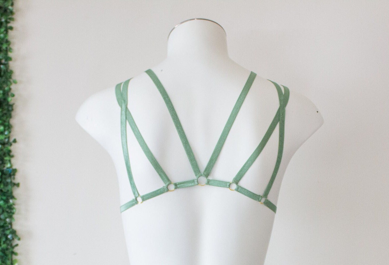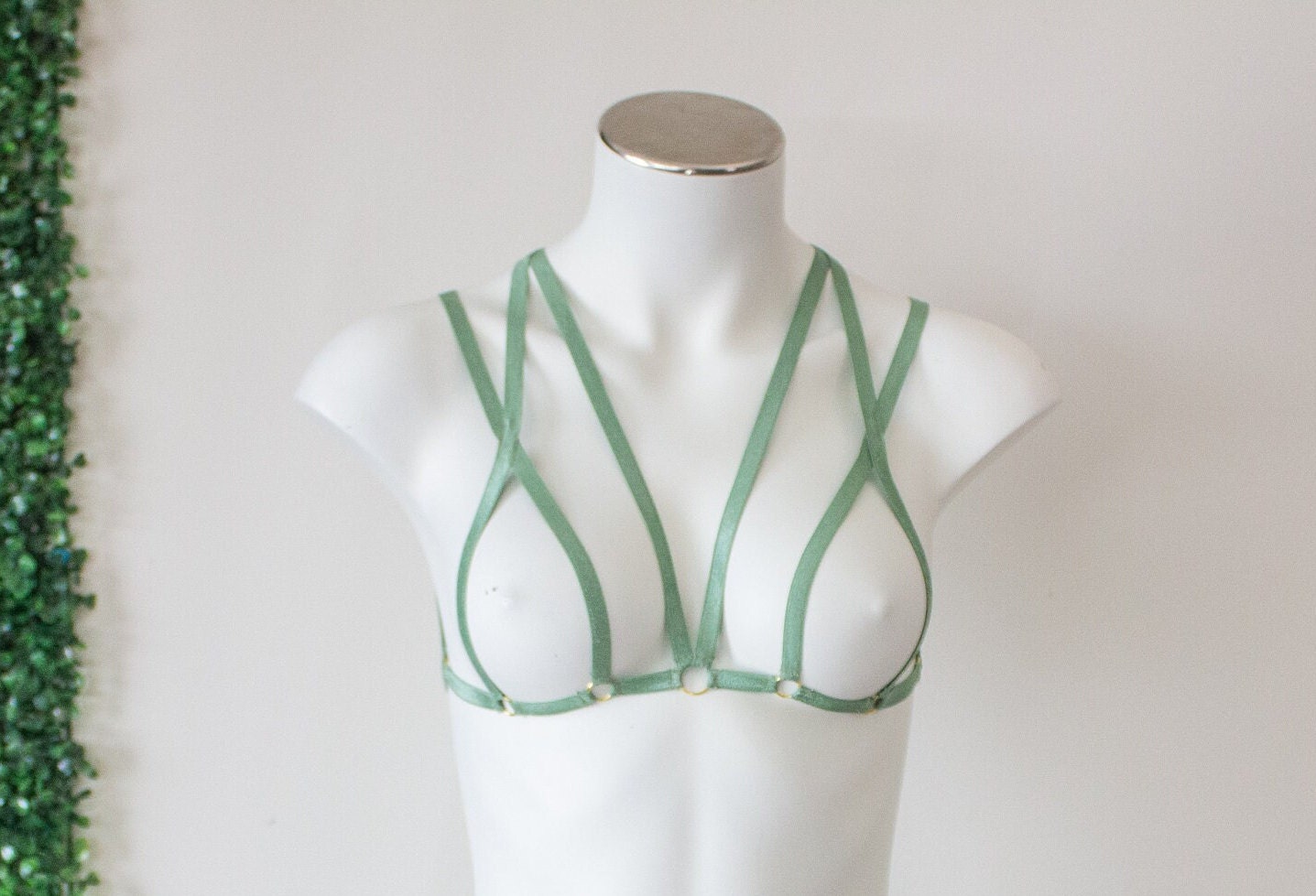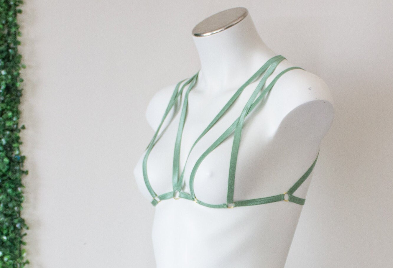 Sexy Body Harness Lingerie Bralette: Neon Green Bralette, Strappy Exotic Dancewear, Festival Outfit, Rave Fashion, Glow Clothing, Halter Top