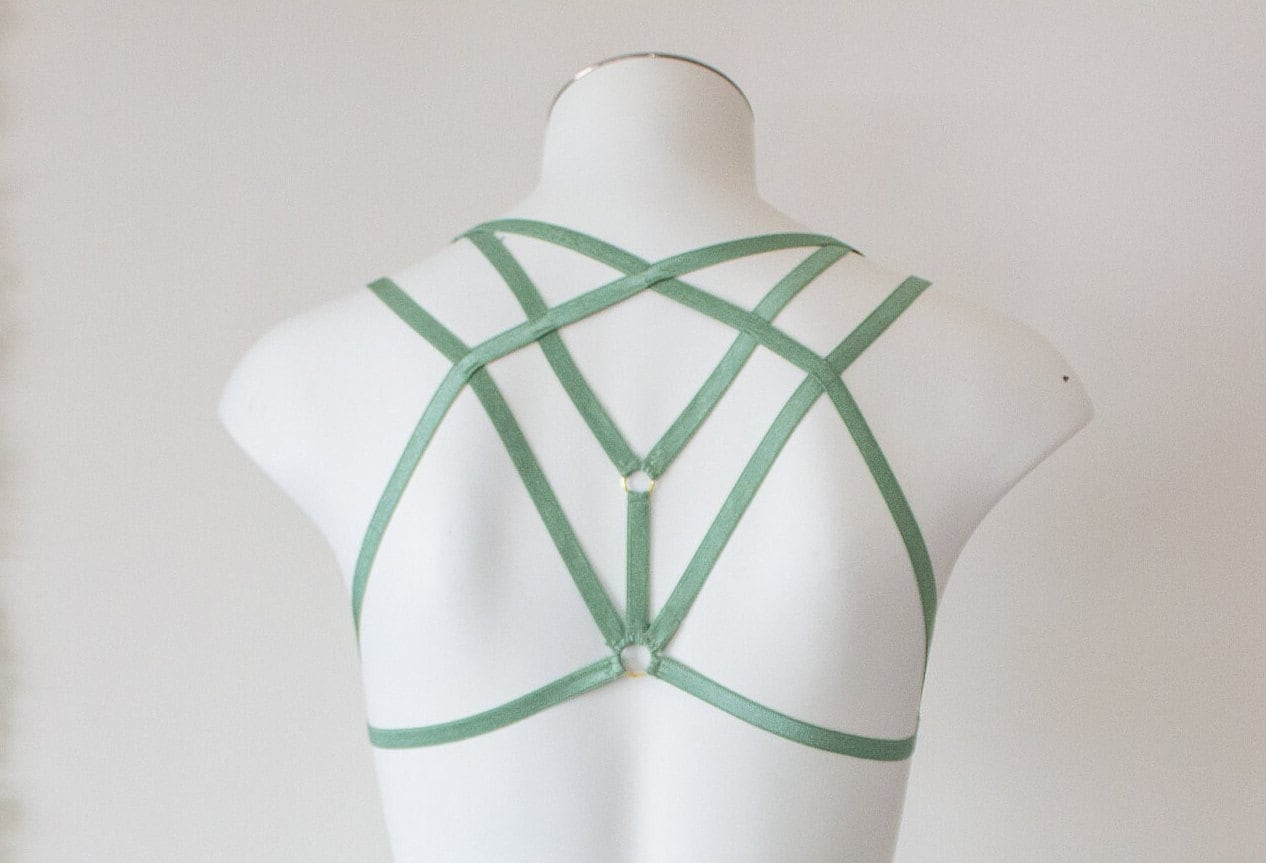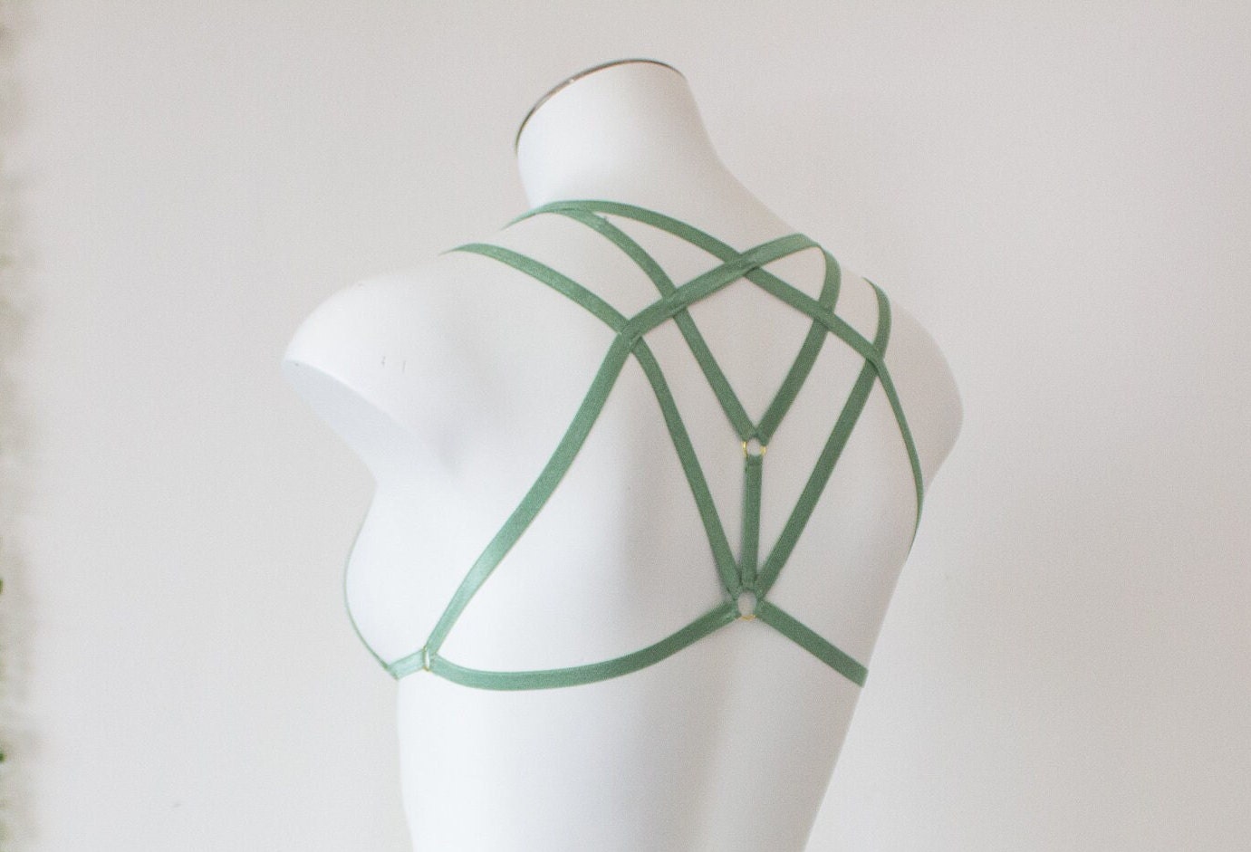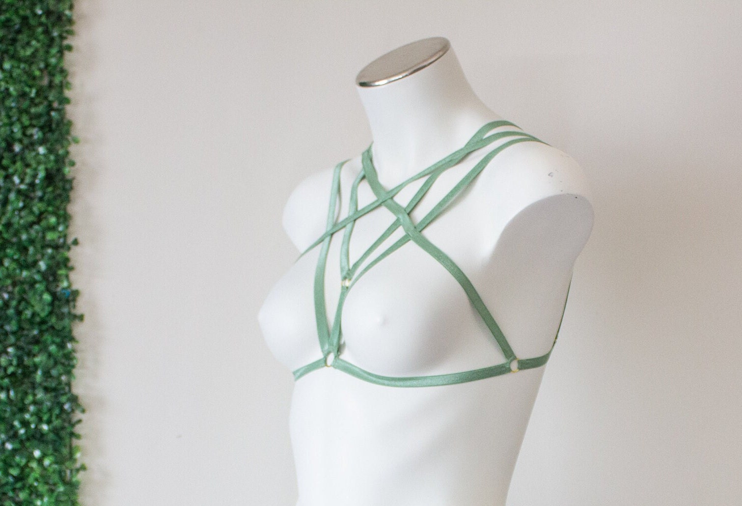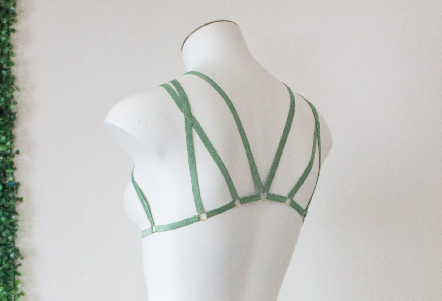 Sexy Body Harness Lingerie Bralette: Neon Green Bralette, Strappy Exotic Dancewear, Festival Outfit, Rave Fashion, Glow Clothing, Halter Top