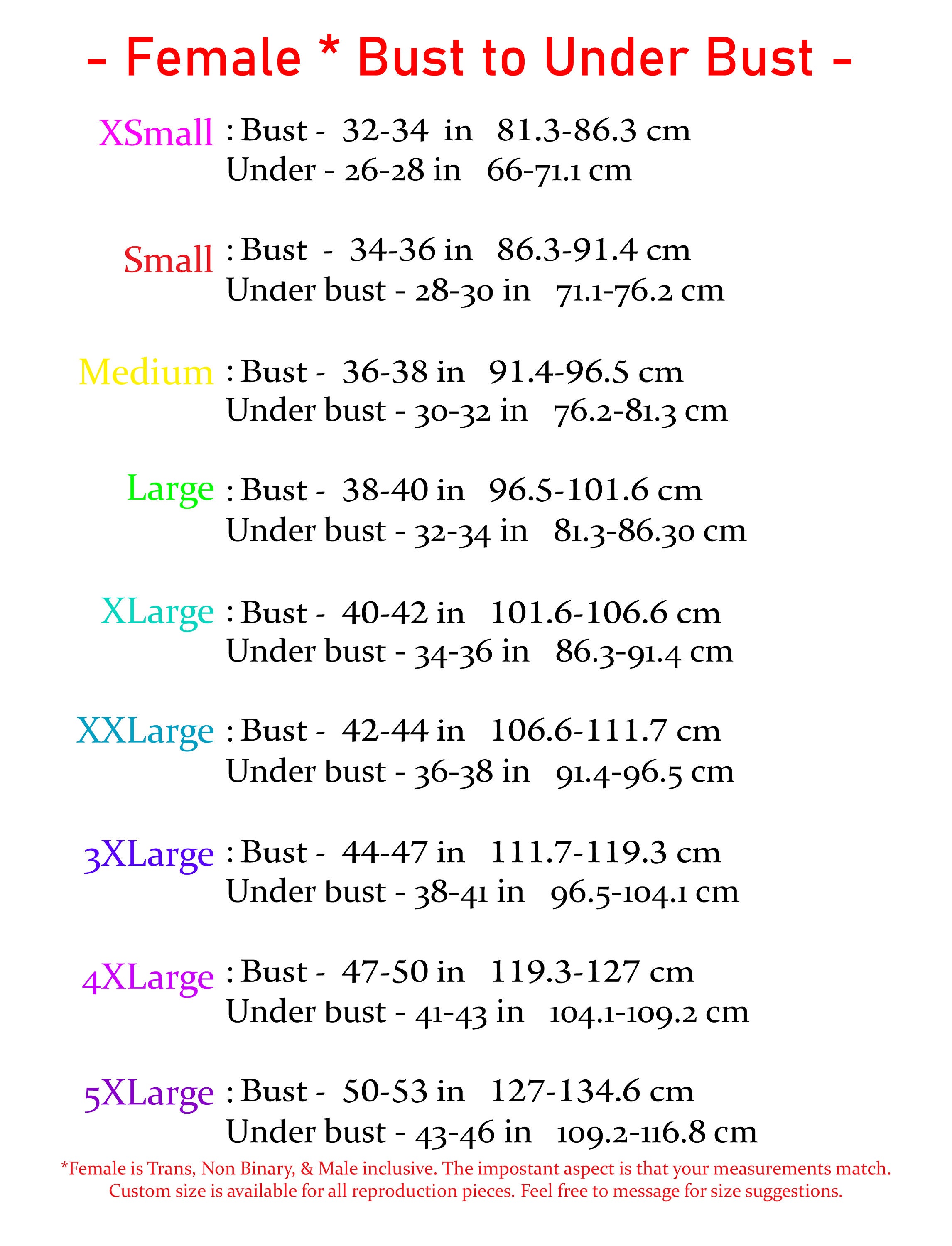 *bust size is flexible due to the open front feature of this design, so don't worry if your bust measurement doesn't match up exactly.
