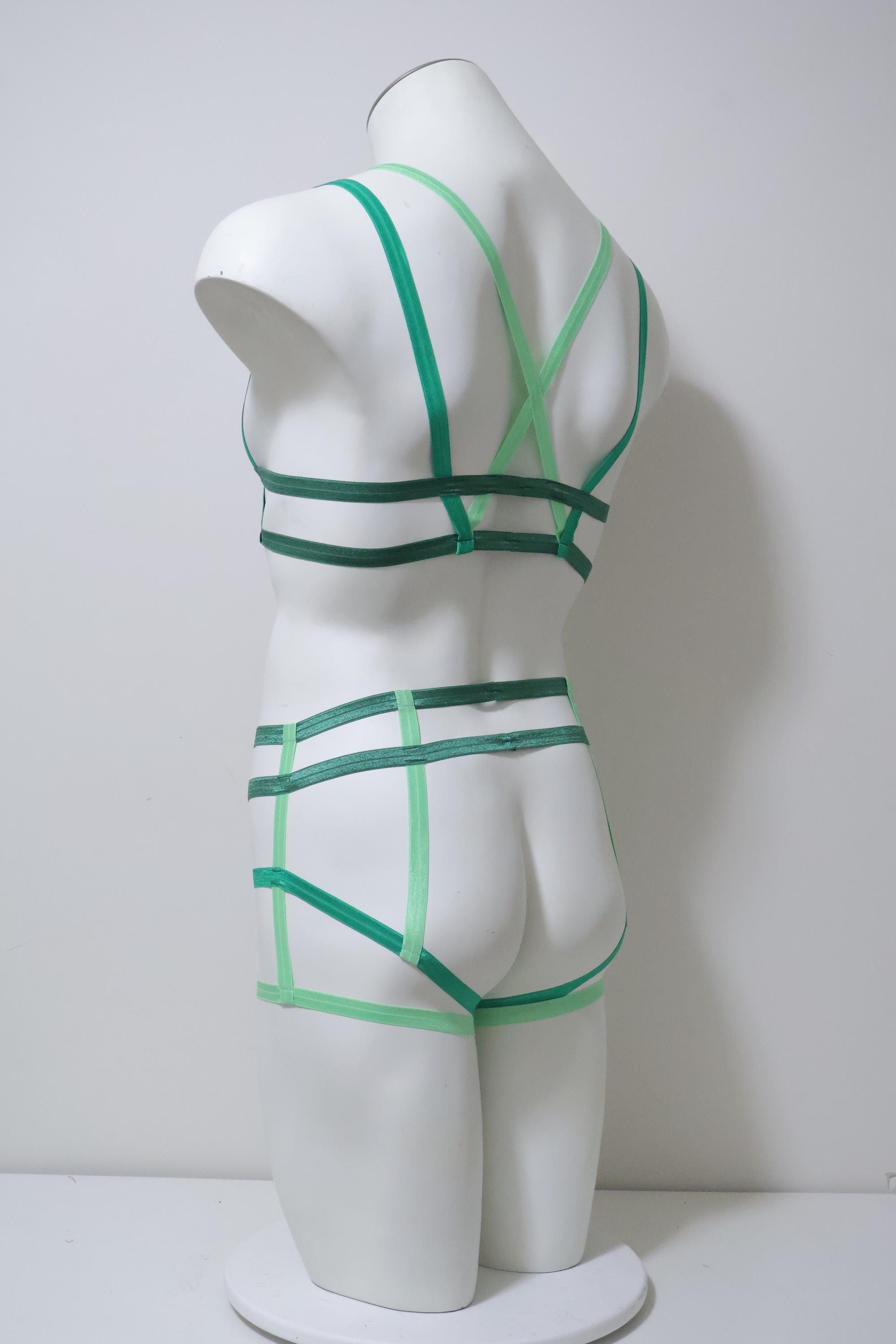 Size Chart Displayed Bellow - Ombre Strappy Body Harness Lingerie Set