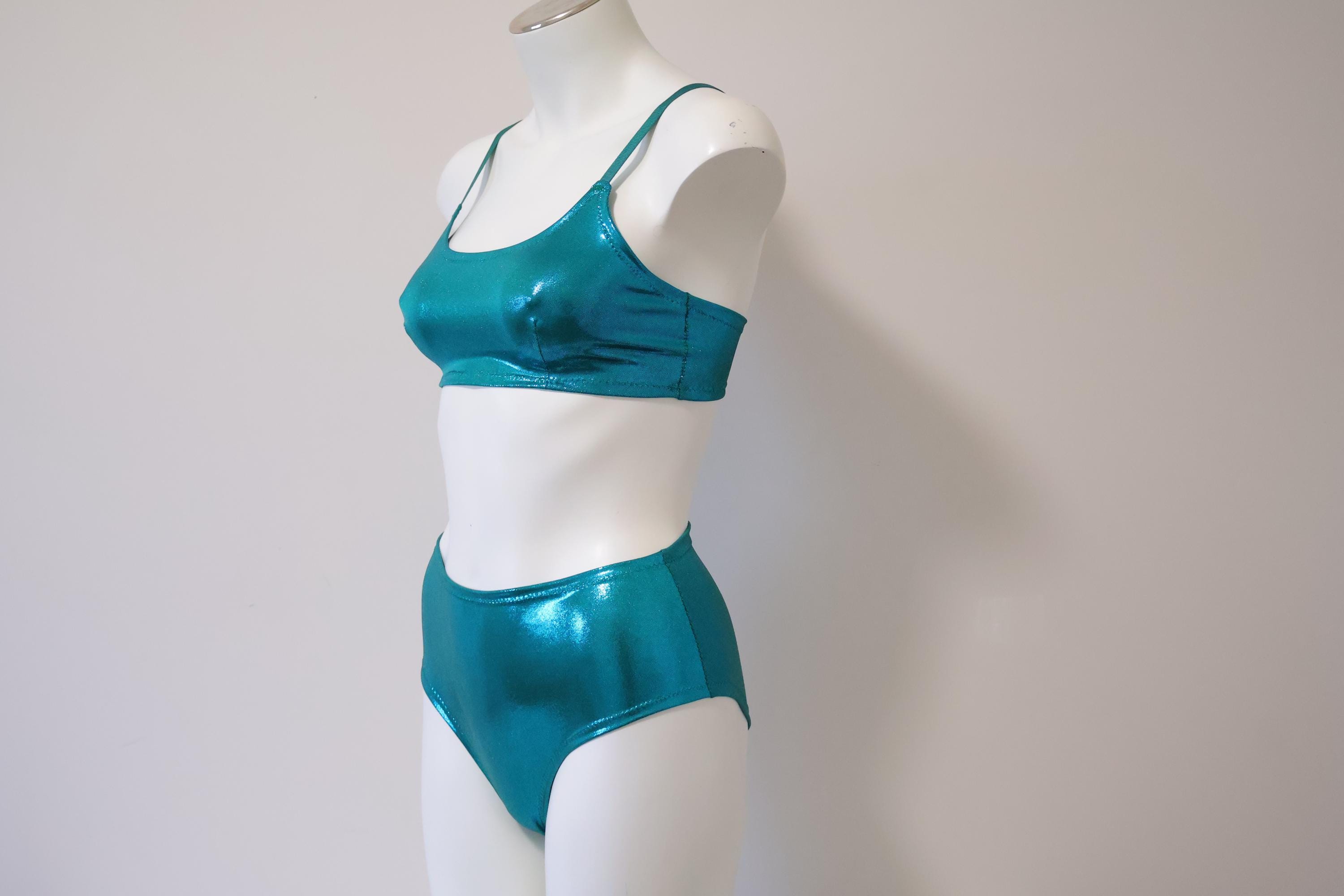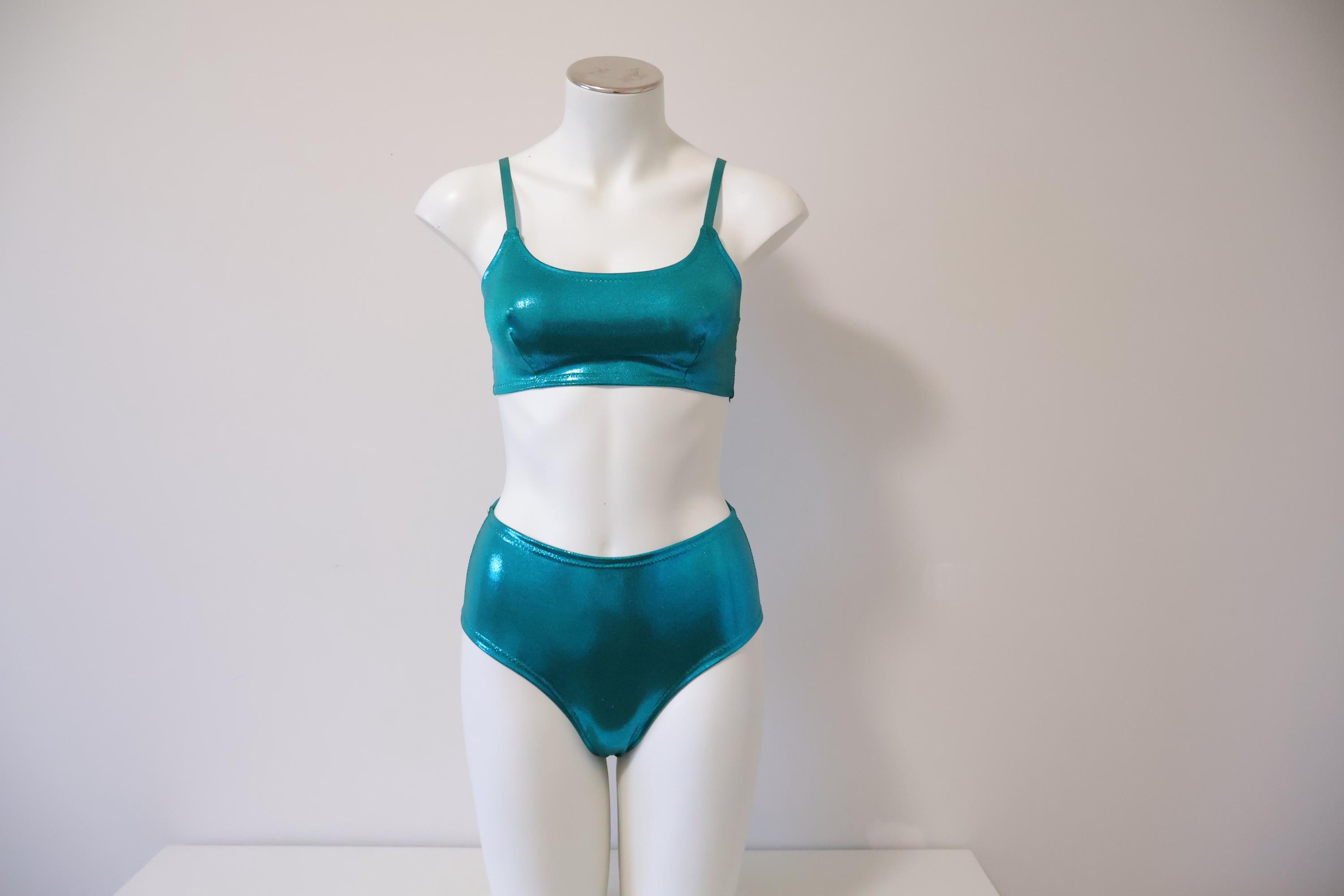 Glitter Holo bralette and high waisted retro style bikini swimsuit style lingerie set