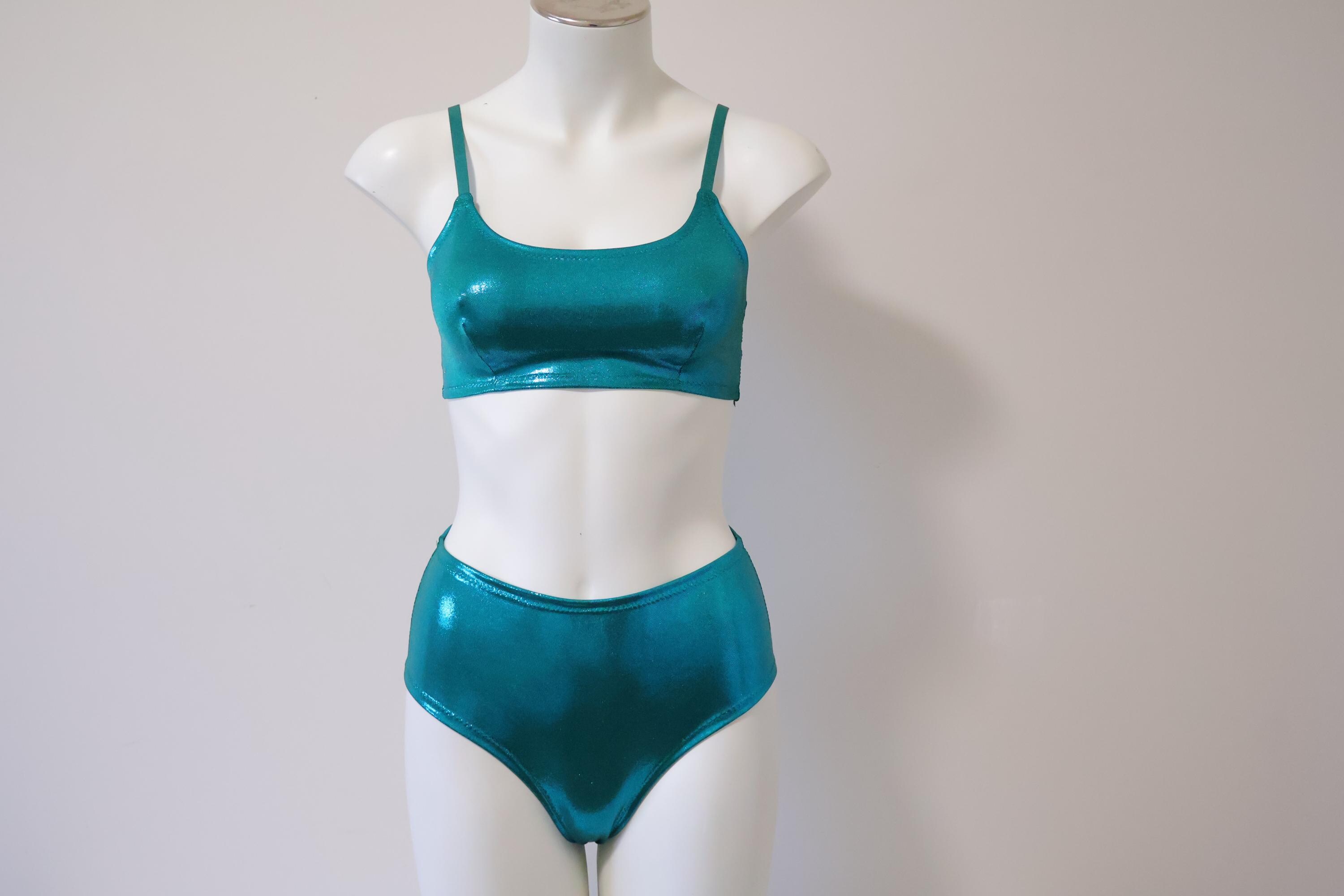 A classic style set, retro high waist panties paired with a classic bralette provides perfect comfort and coverage. Stretch holo glitter no shed spandex can be taken to the beach for a simple swim outfit as well. Dance on the poles for fitness or the fields at raves and festivals. Your rush will shine and sparkle