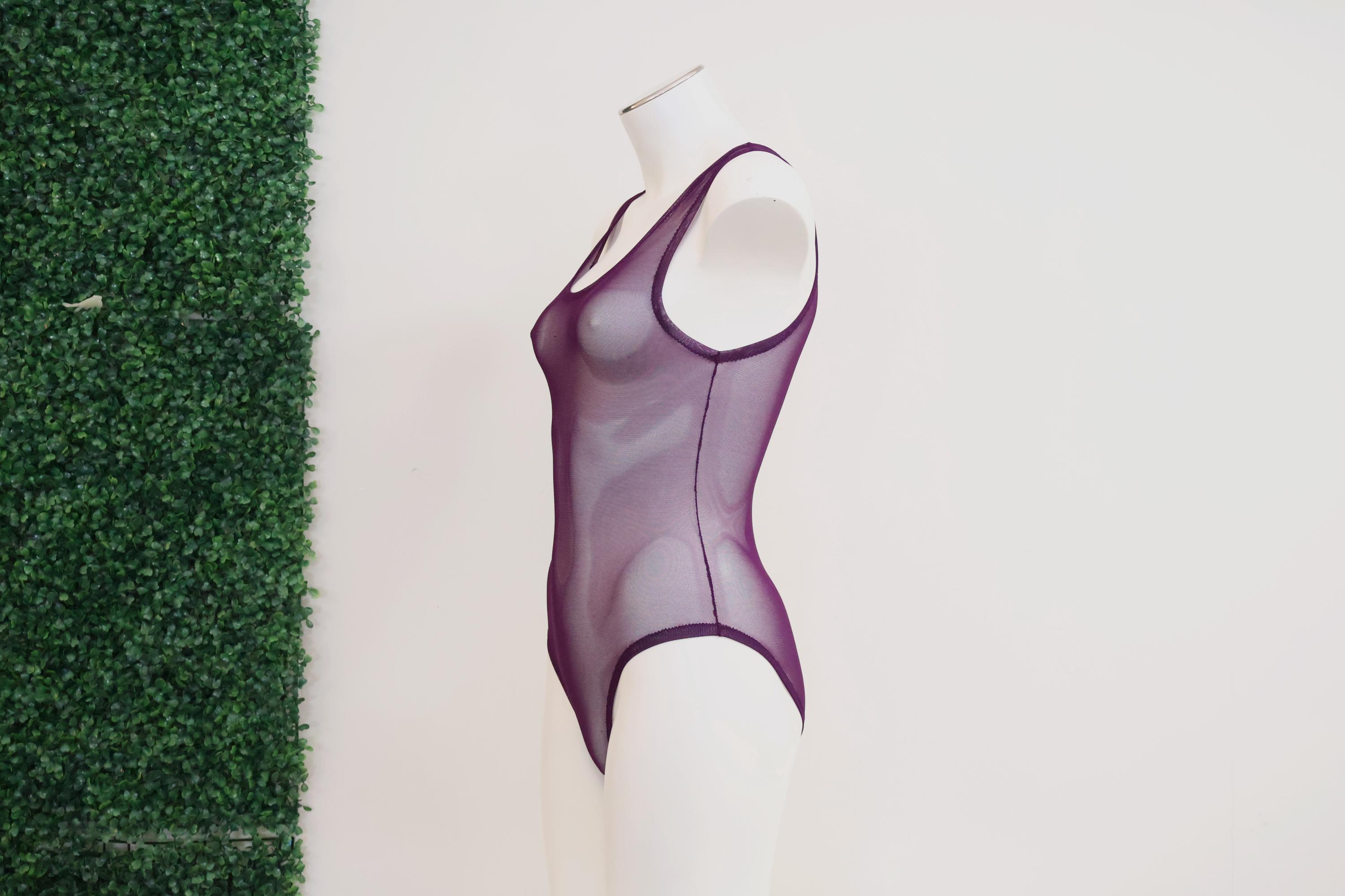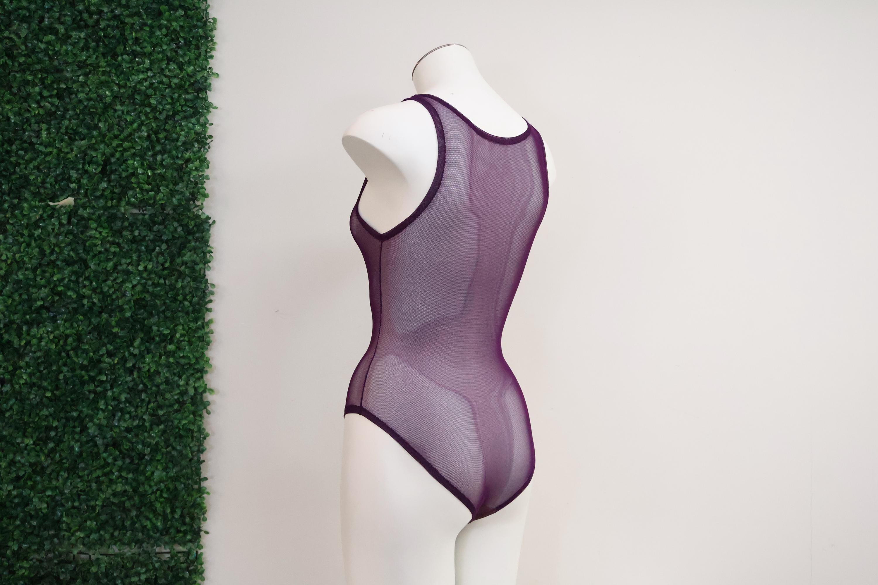 Sexy, sheer, stretch to fit mesh tank style bodysuit. This bodysuit is slip on but can be upgraded to snap crotch if preferred. Perfect as a base to build your costume for festivals, dance performances, pole fitness fun, raves or just private fun at home. Dress it up with harnesses or wear it on it's own this comfortable stretch mesh tank top style bodysuit will be all you need to start having a good time.