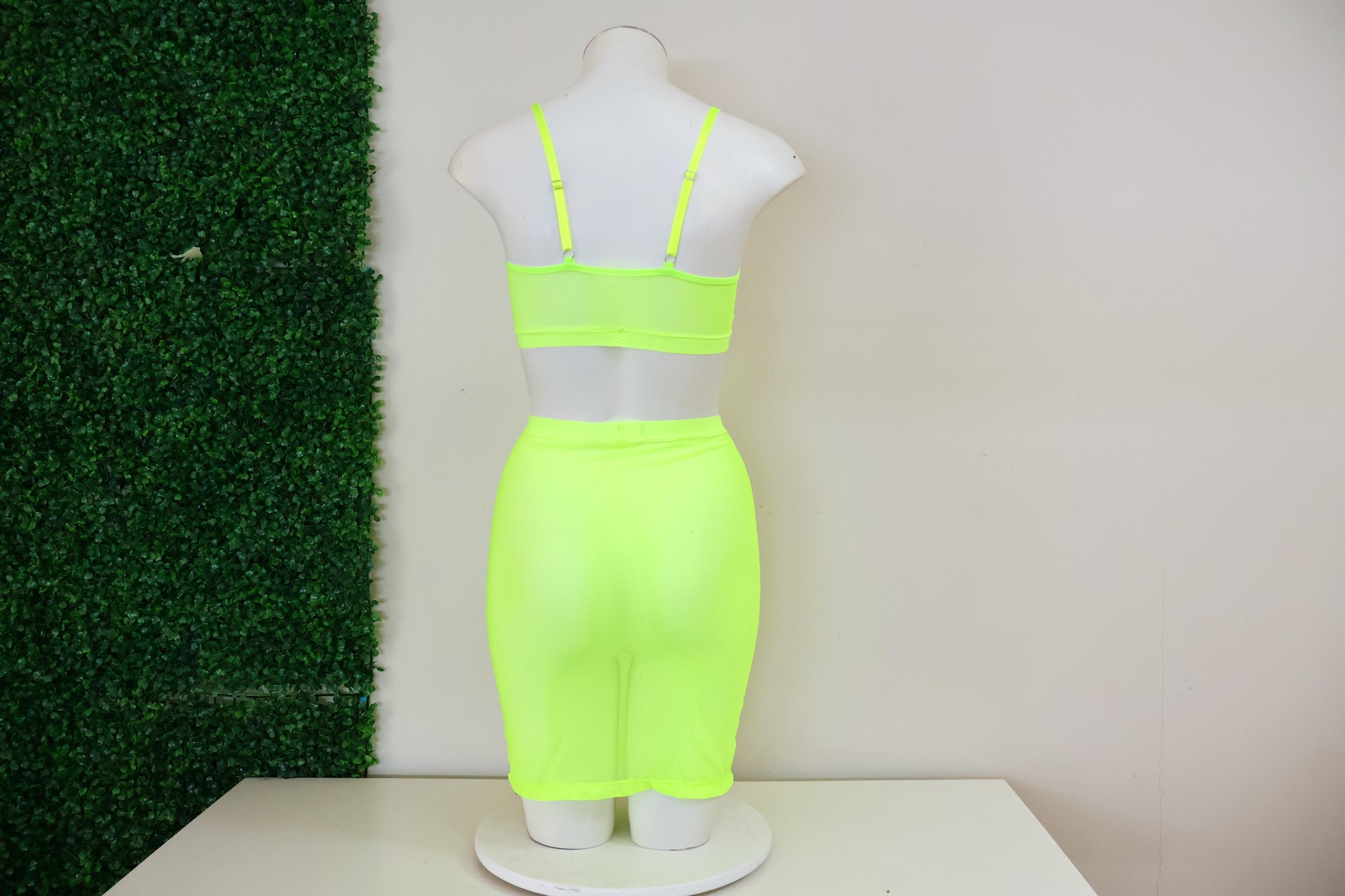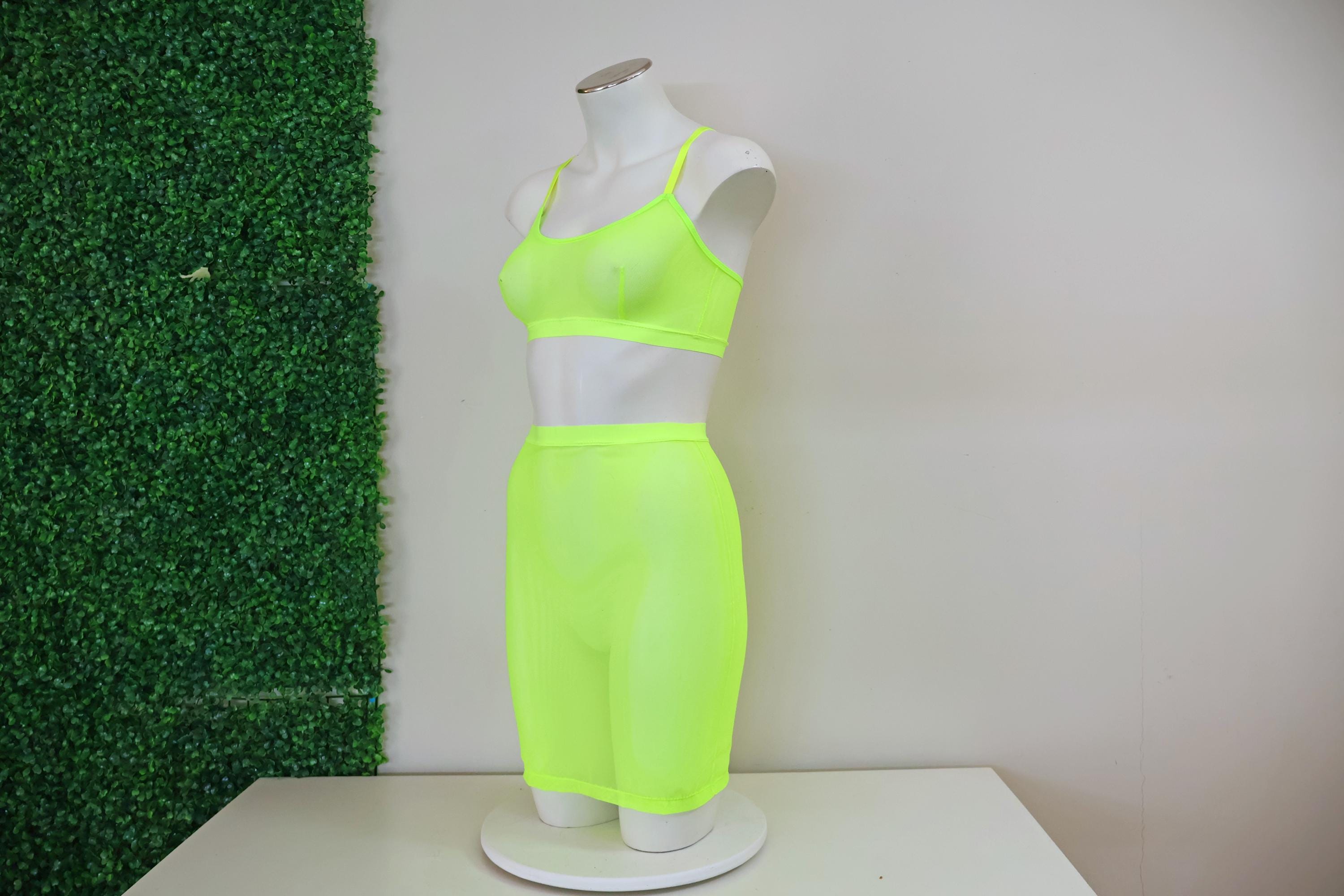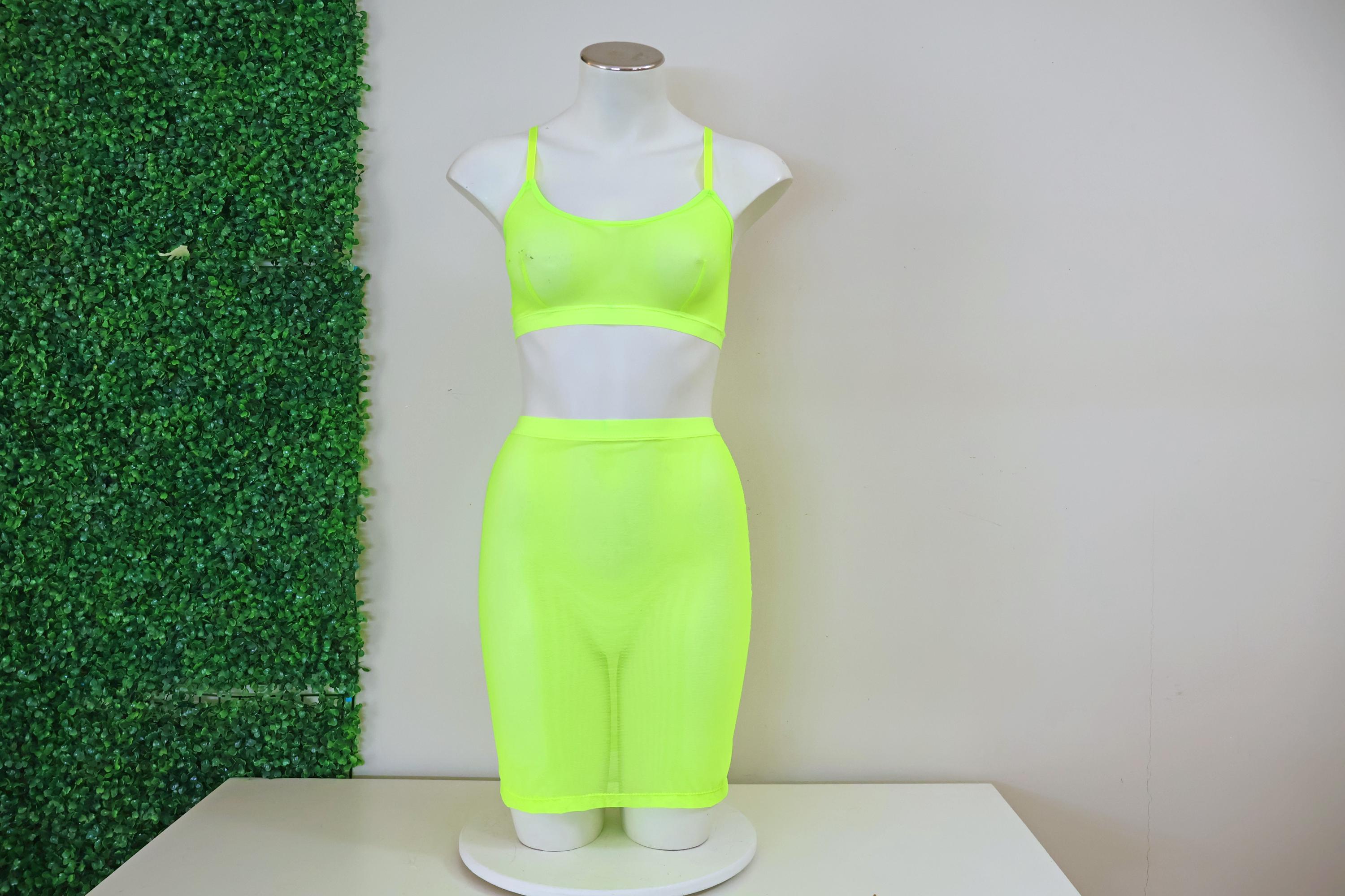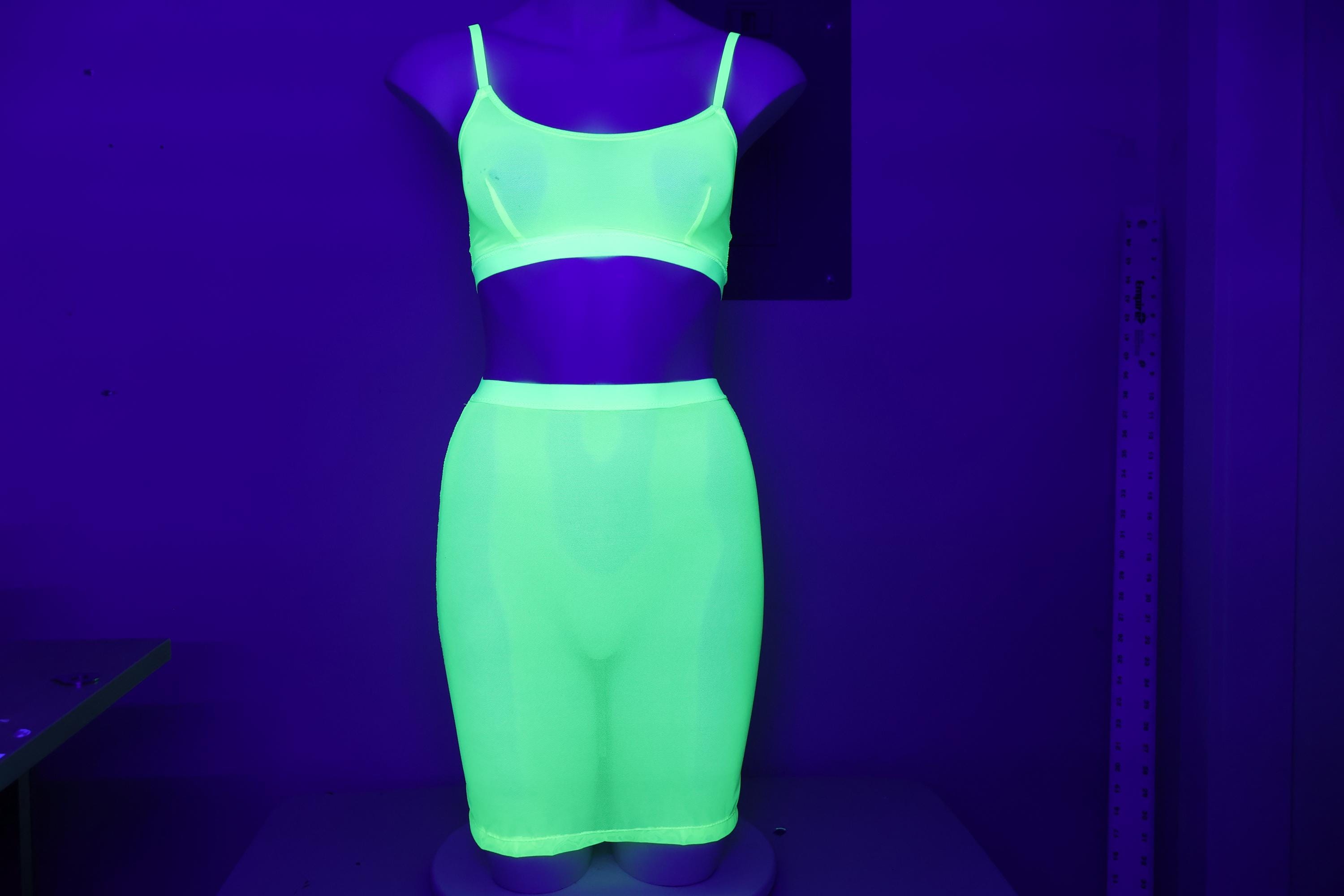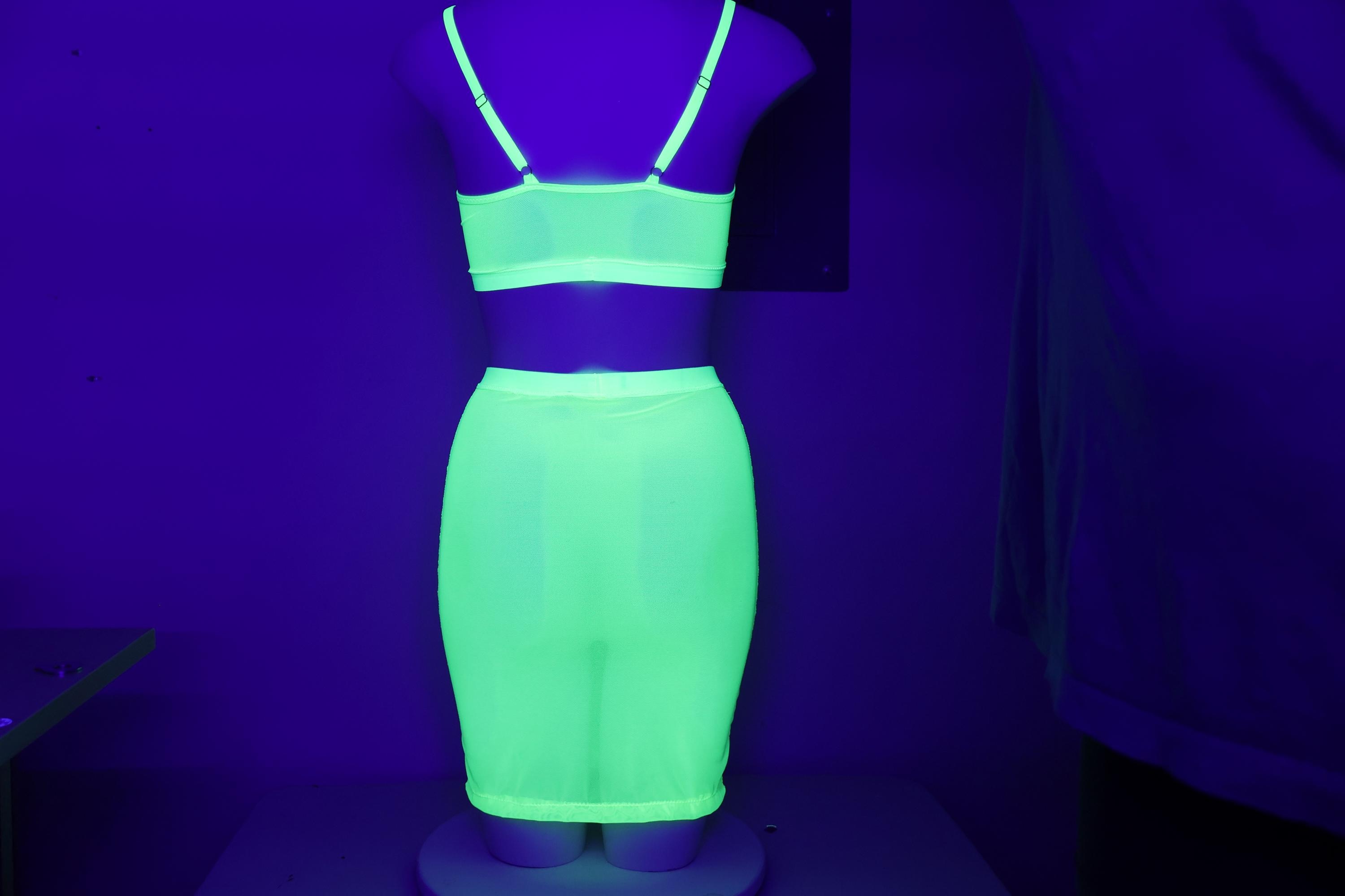 Sheer Mesh Festival Bralette and Pencil Skirt: Glow UV Blacklight Rave Floor Lingerie Outfit Set Exotic Dancewear Set