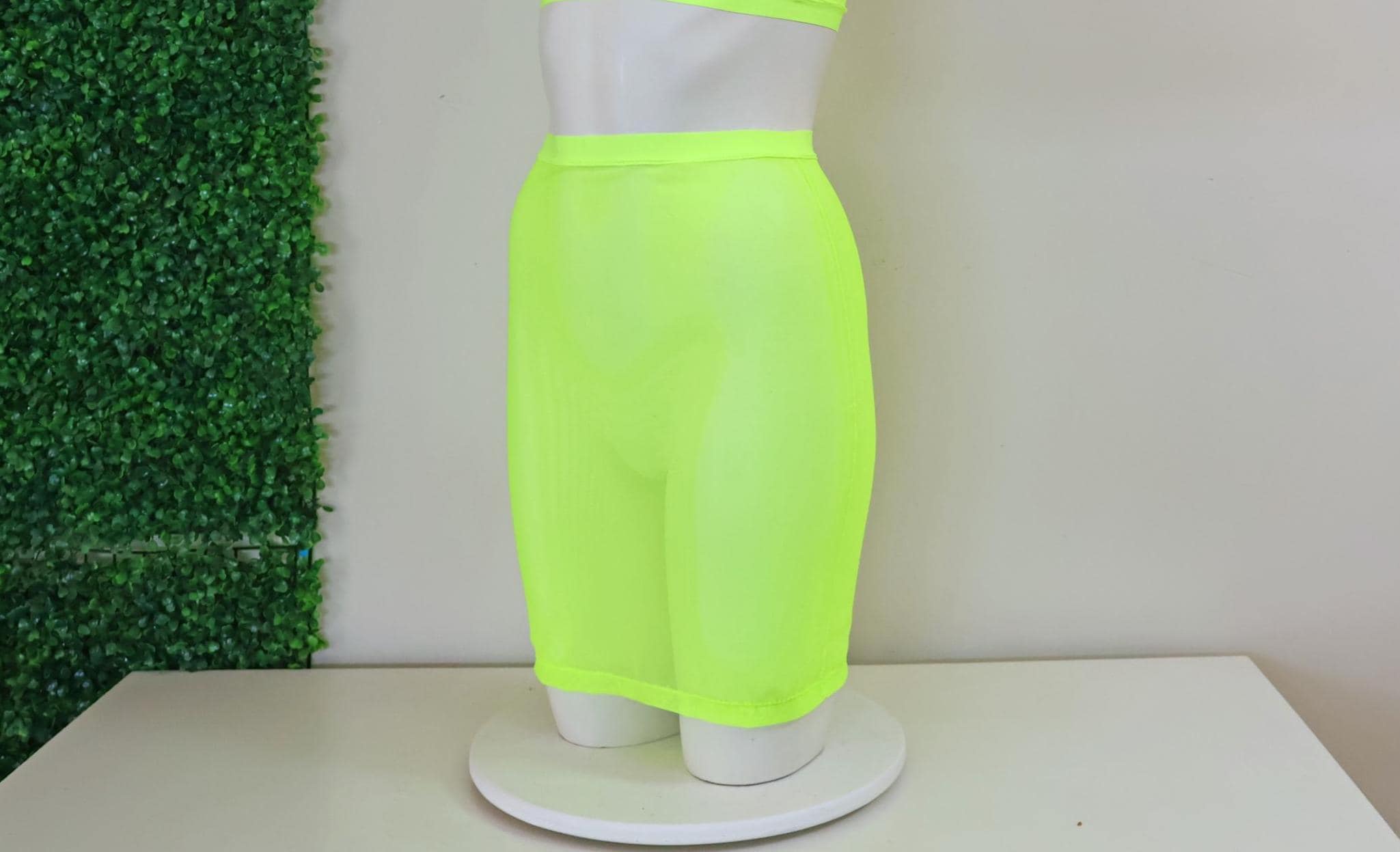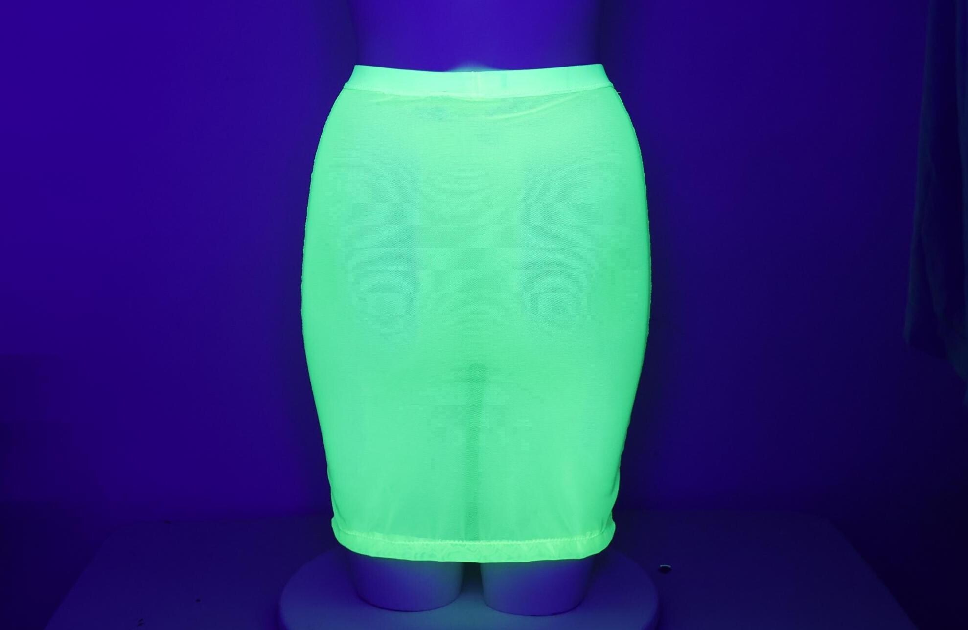Sheer Mesh Festival Bralette and Pencil Skirt: Glow UV Blacklight Rave Floor Lingerie Outfit Set Exotic Dancewear Set