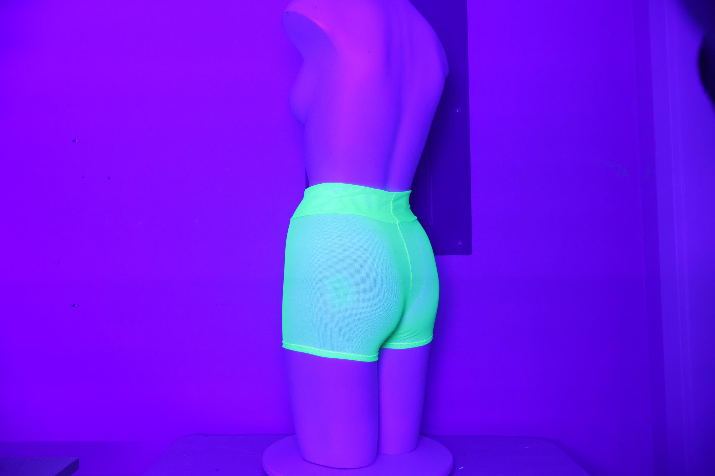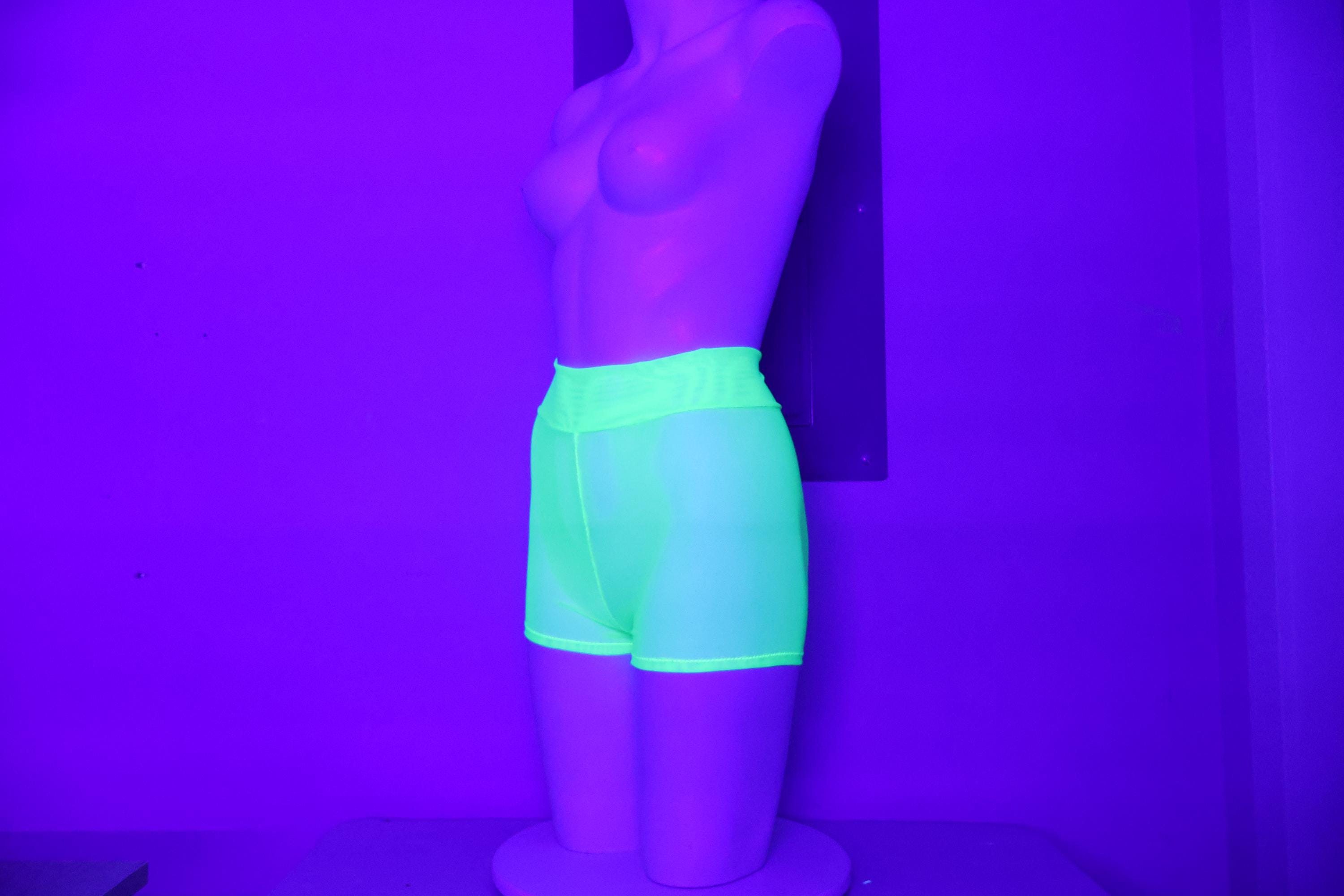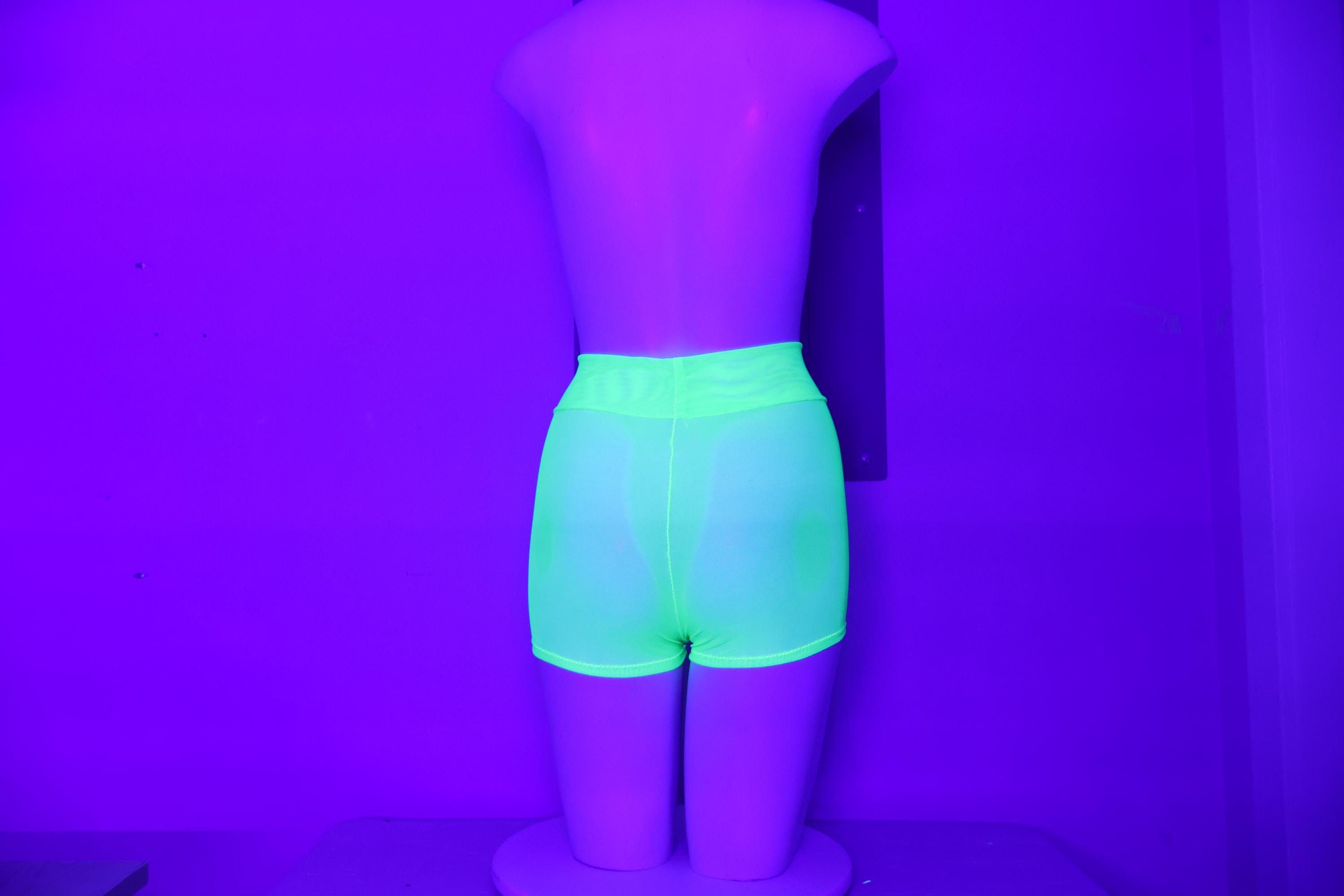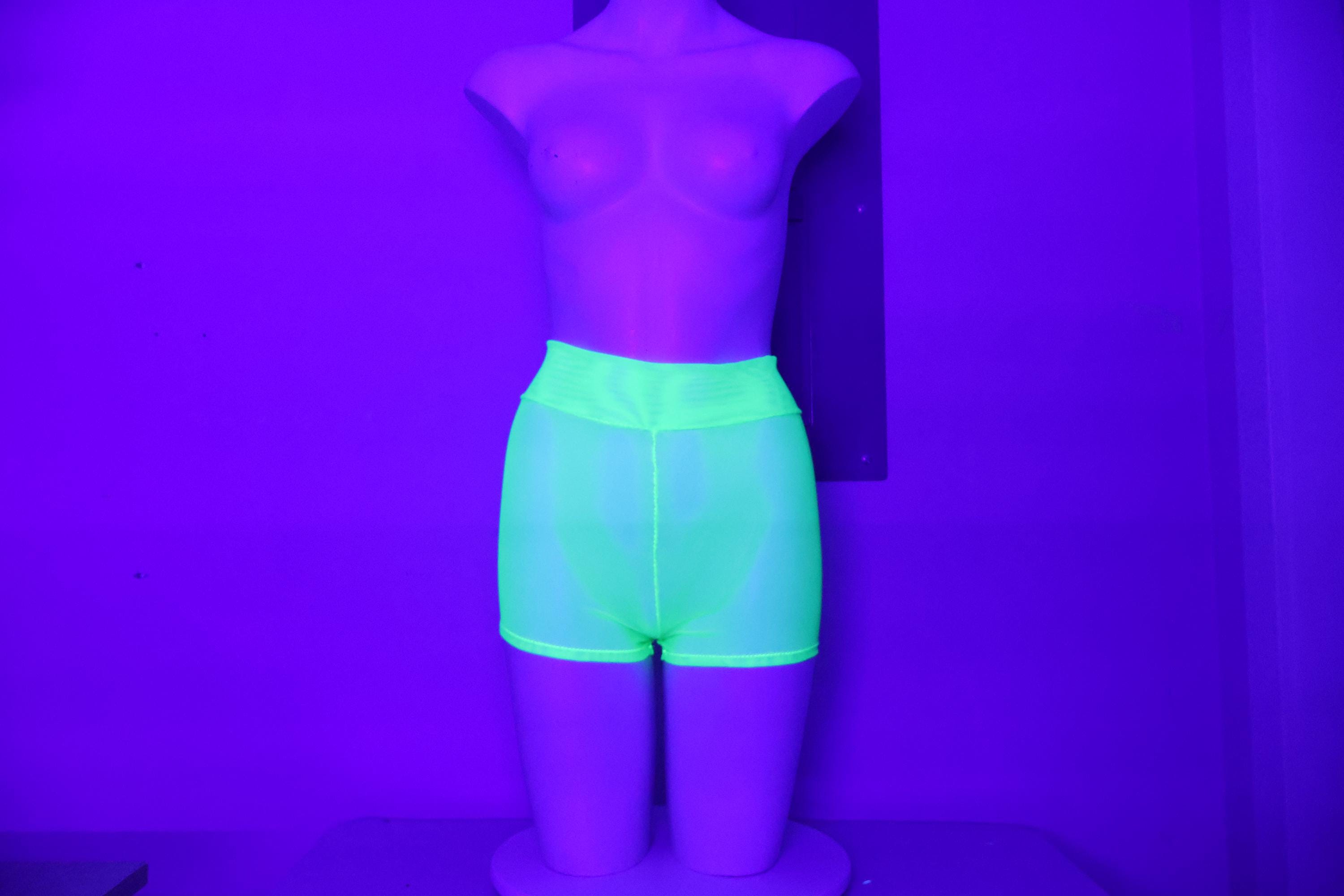 High Waist Sheer Mesh Glow Neon Green Booty Shorts: Festival Rave Fashion, Stripper Outfit, Rave Shorts, Mesh Short Shorts, Dancewear, Exotic Clothing