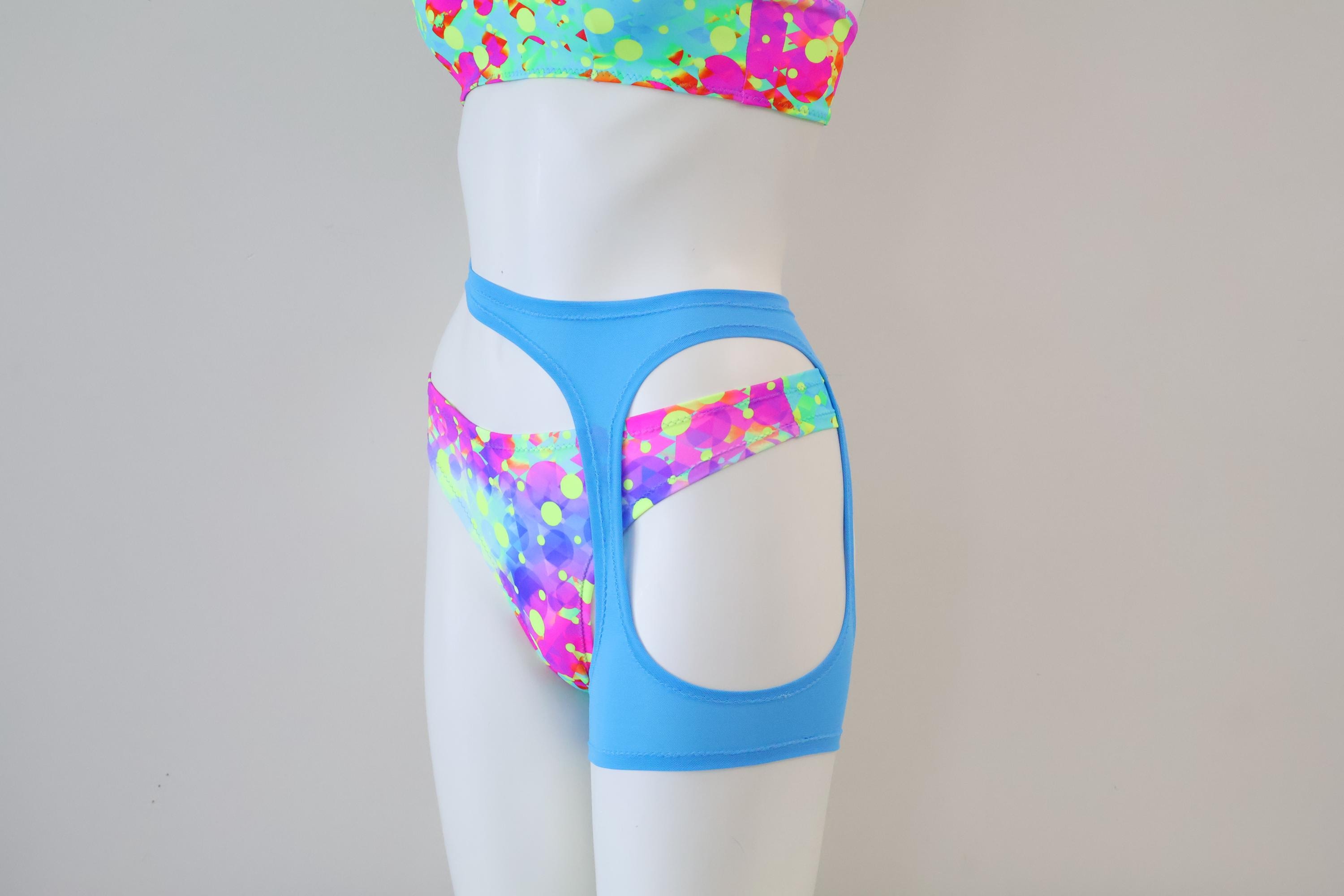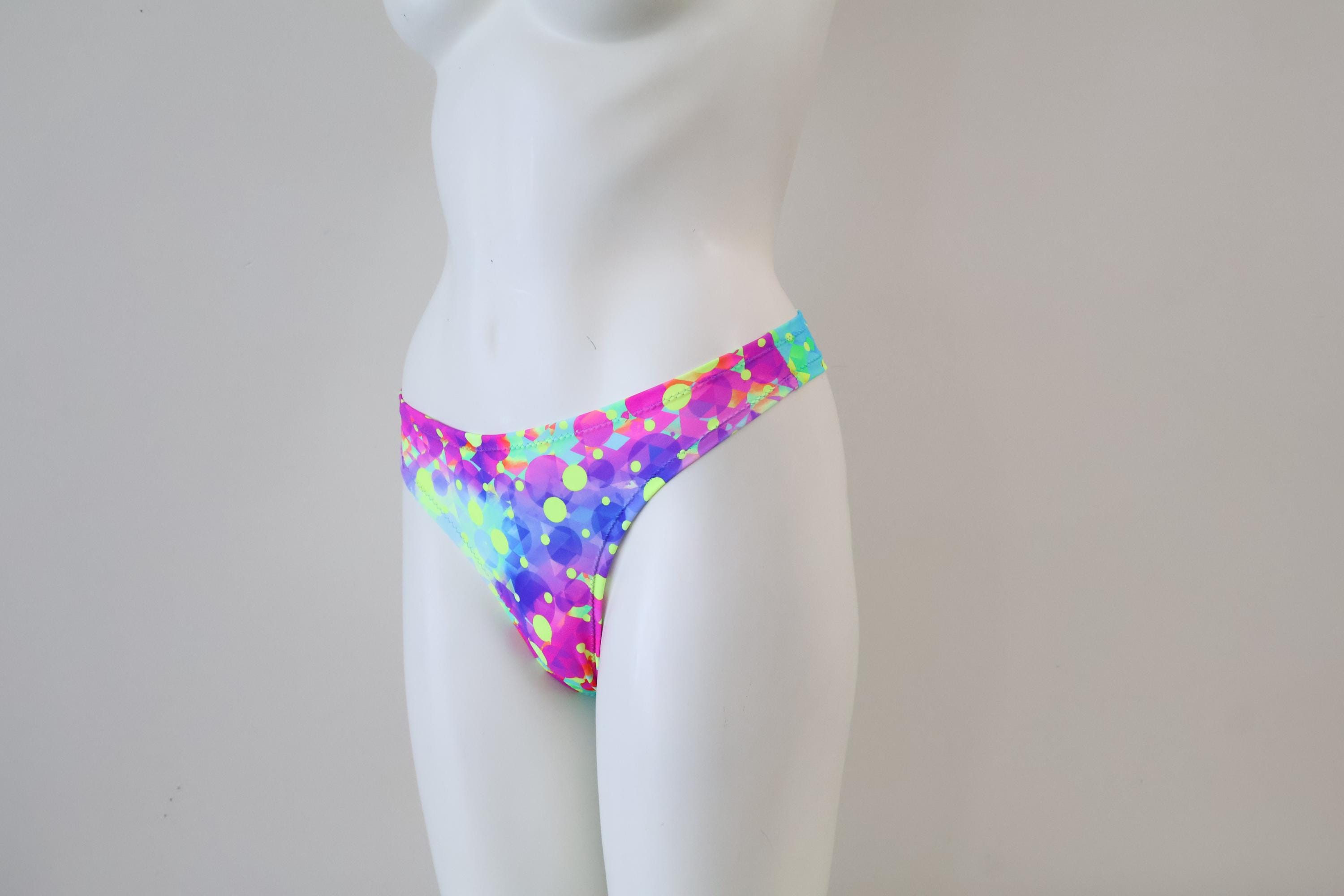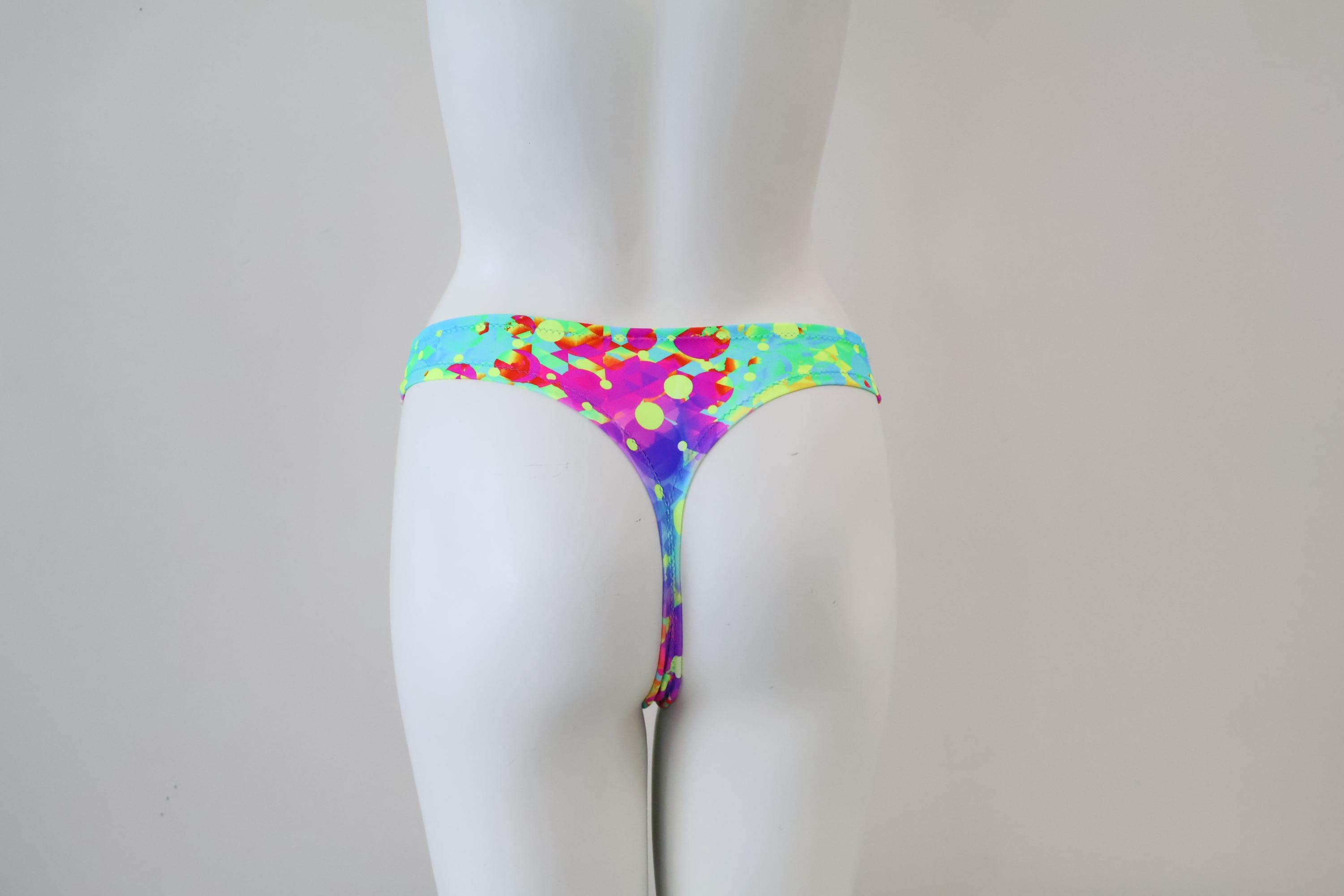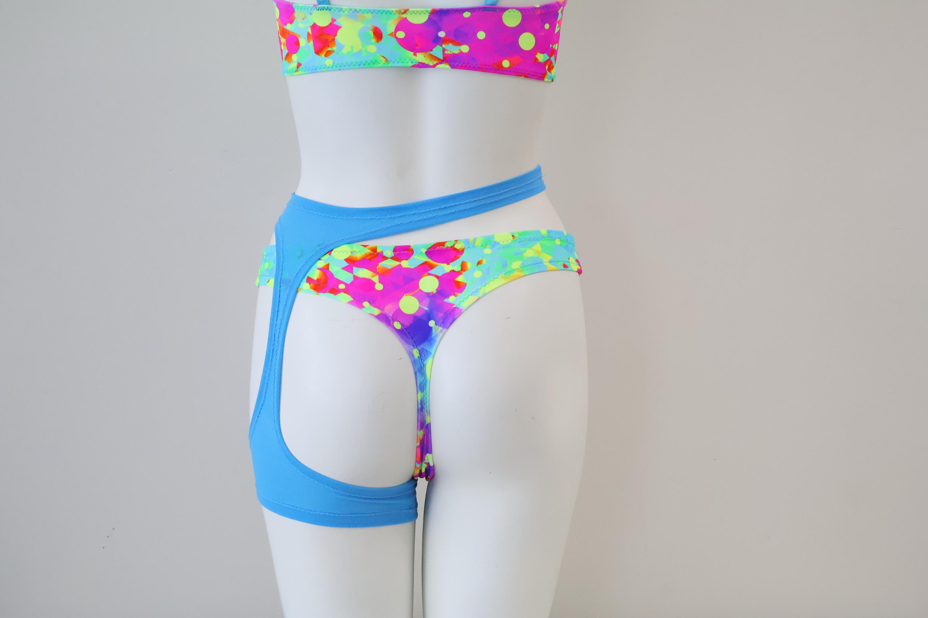You will receive: 1 Leg Garter in color and size selected with 1 thong panty (2 piece set) in the Psychedelic Rainbow (UV) print, unless larger quantity ordered.