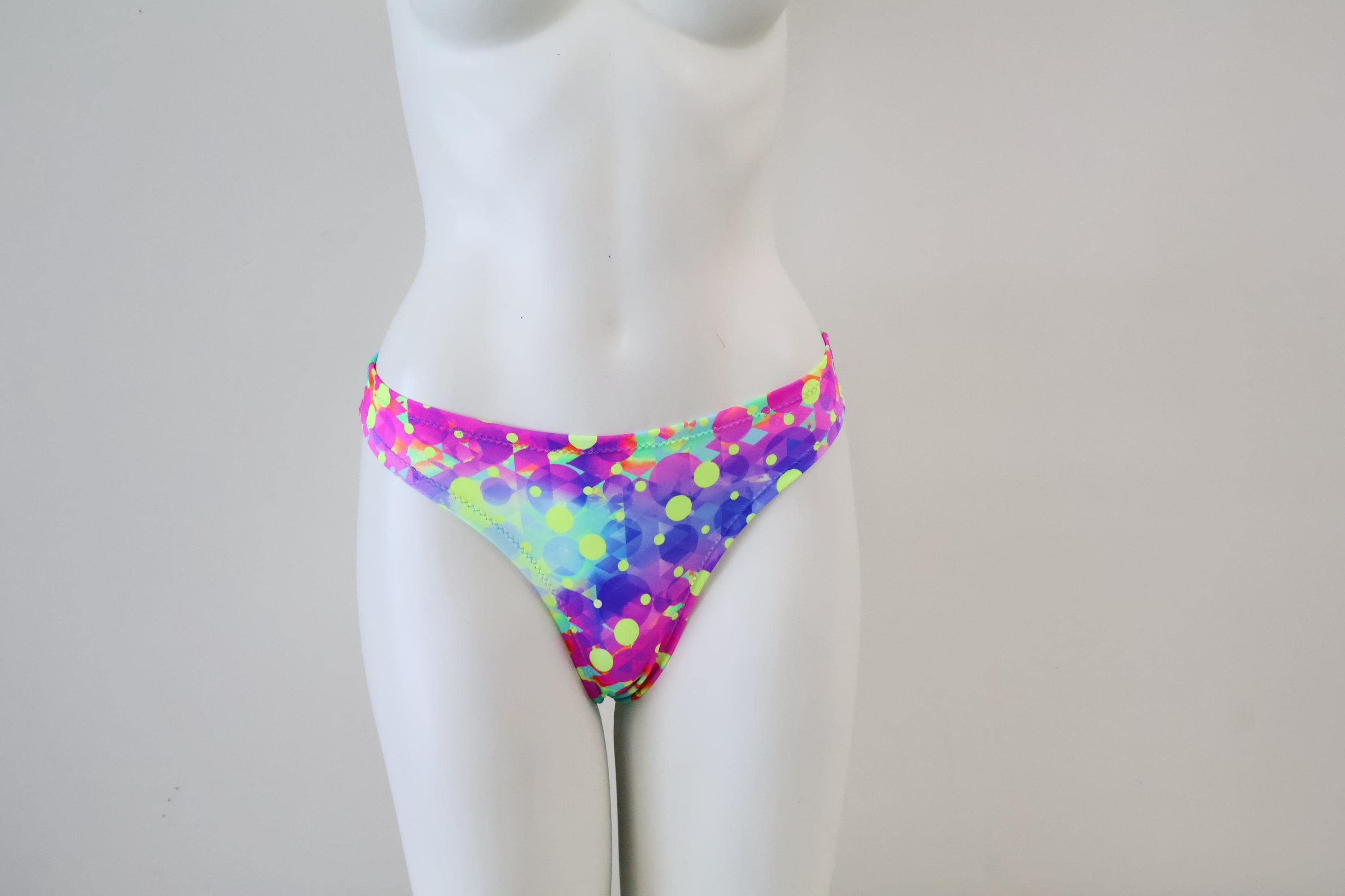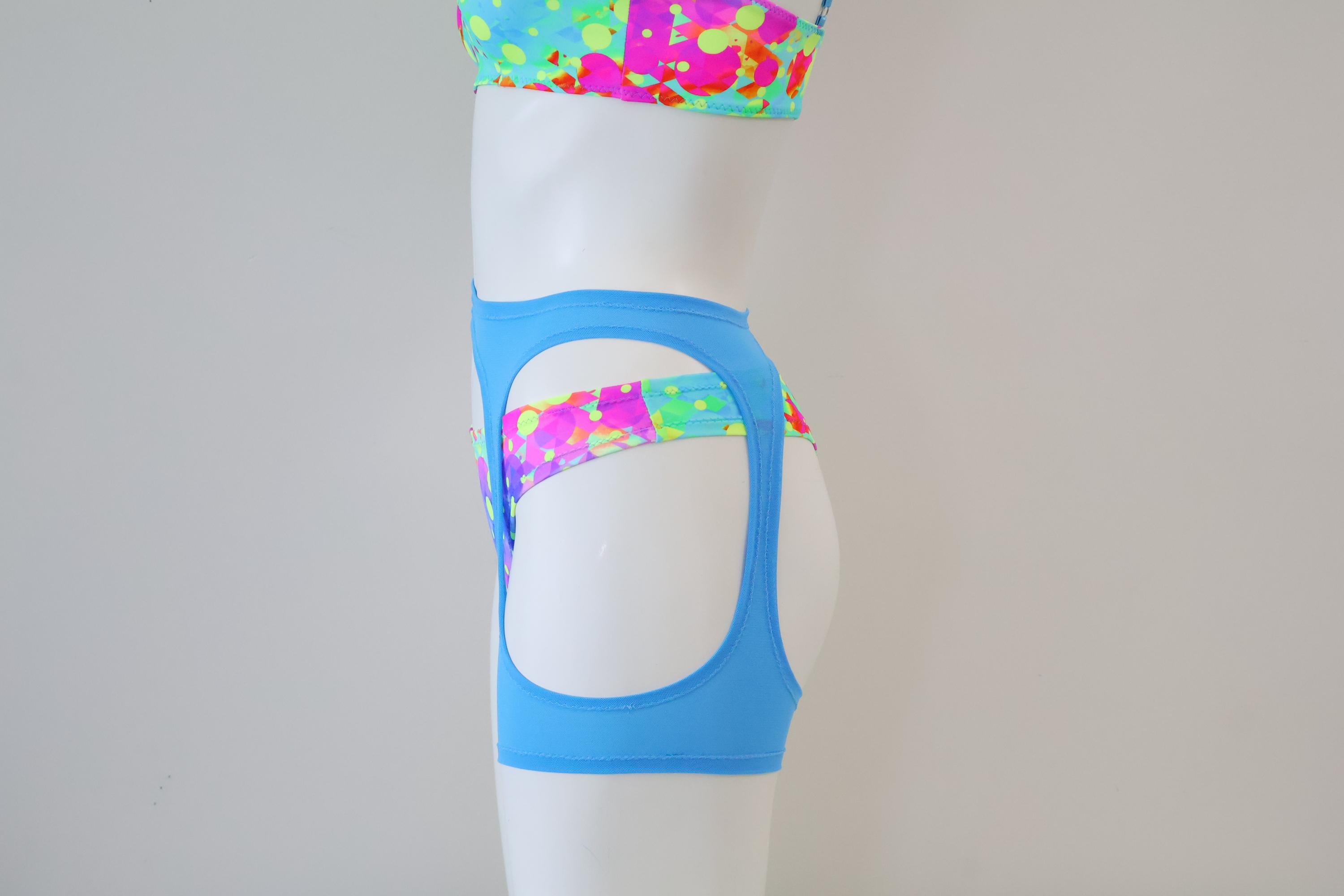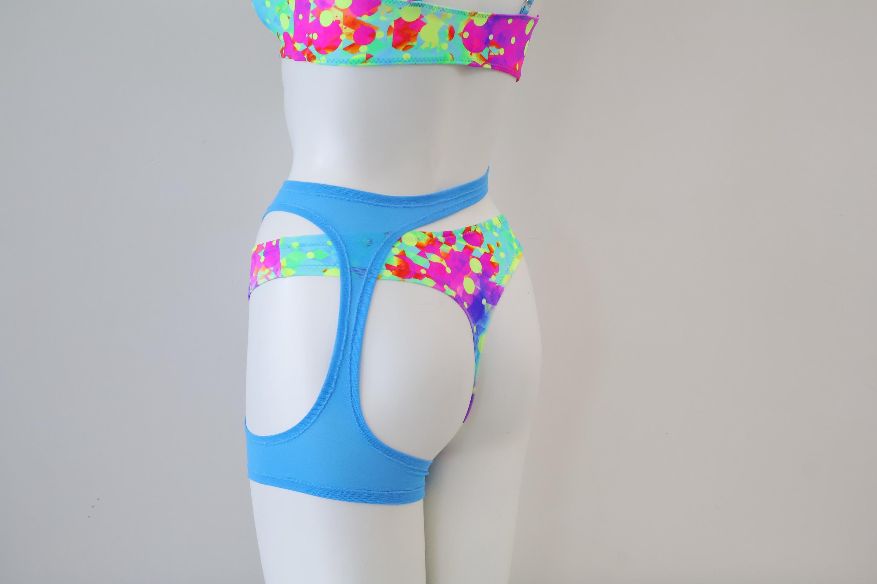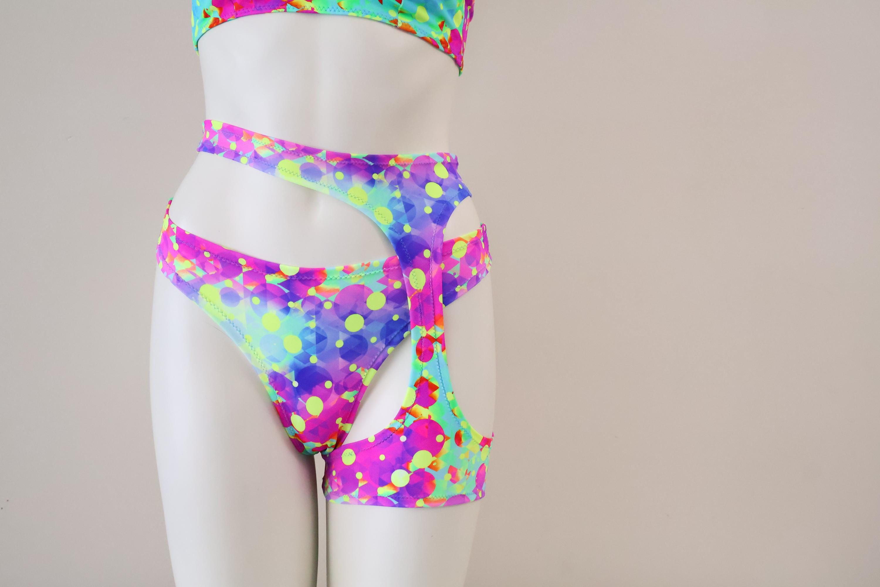You will receive: 1 Leg Garter in color and size selected with 1 thong panty (2 piece set) in the Psychedelic Rainbow (UV) print, unless larger quantity ordered.