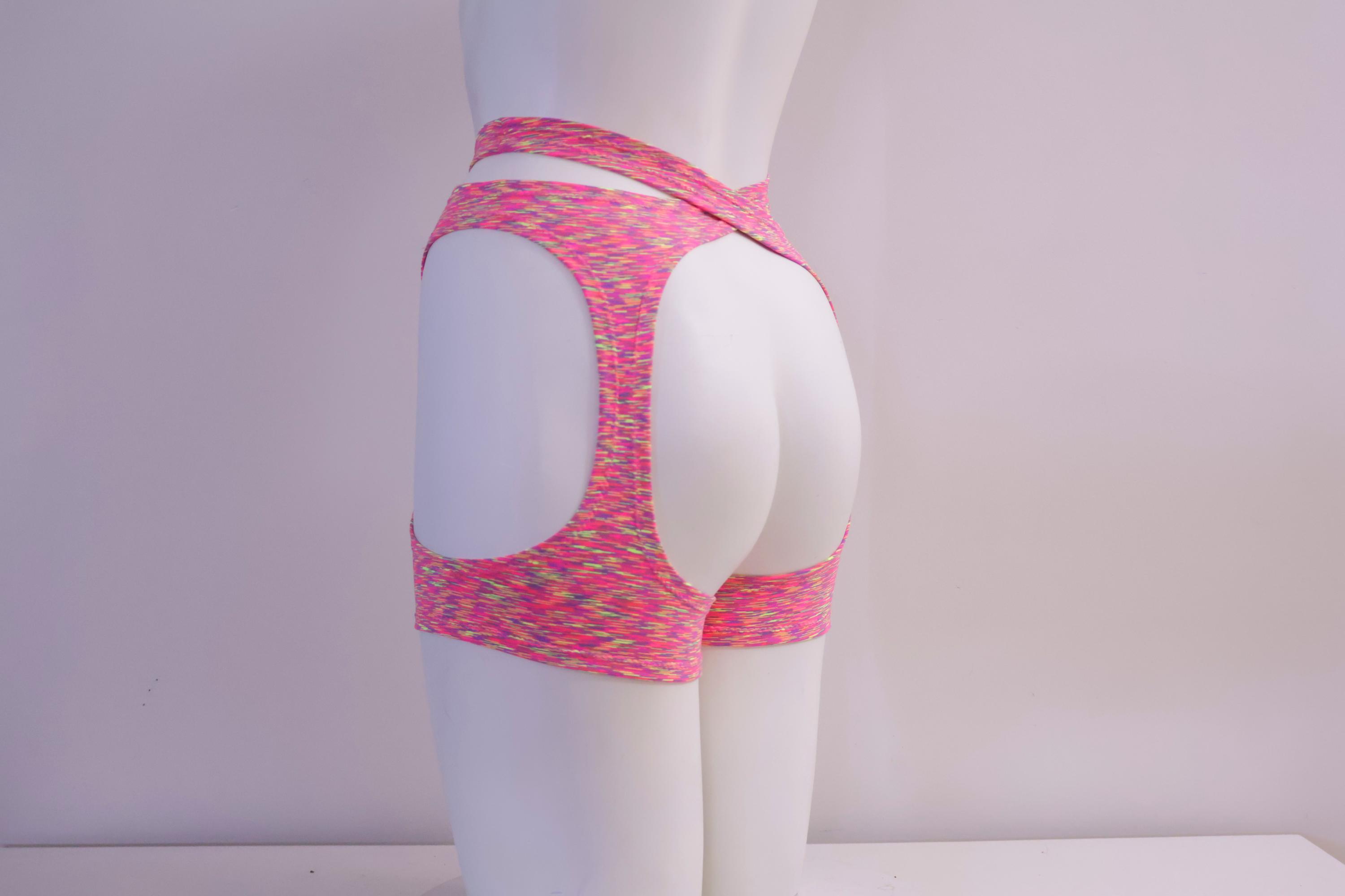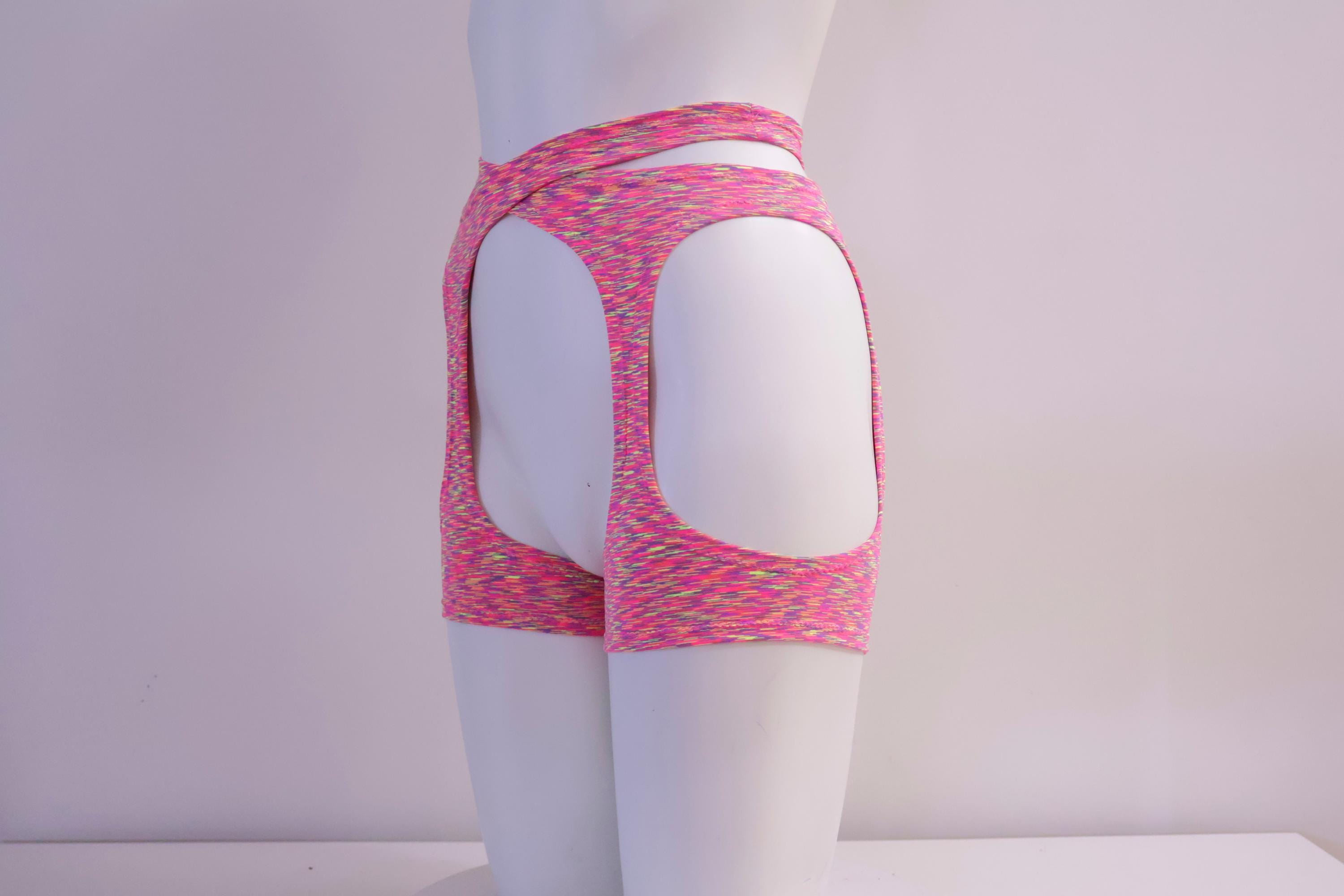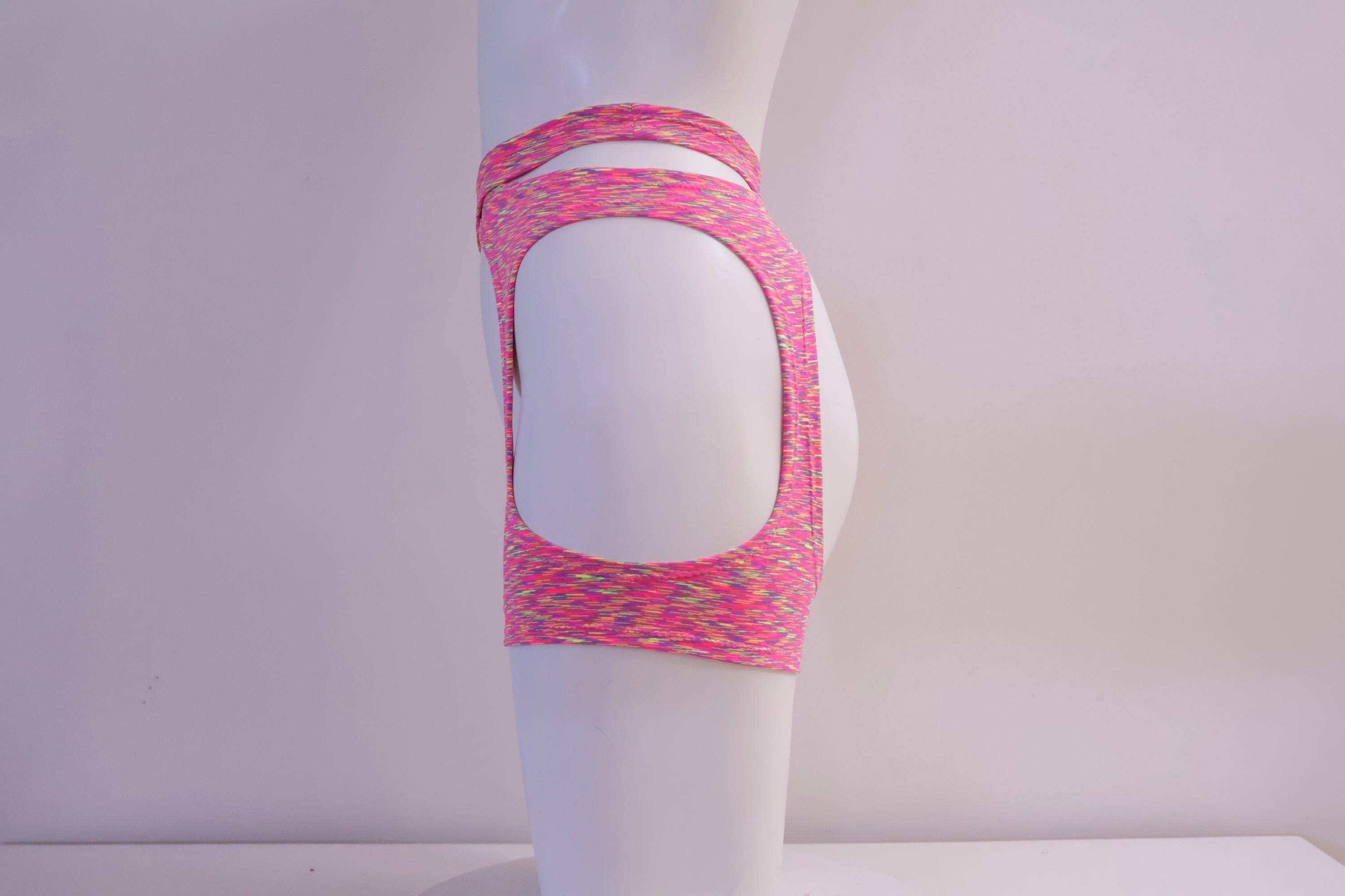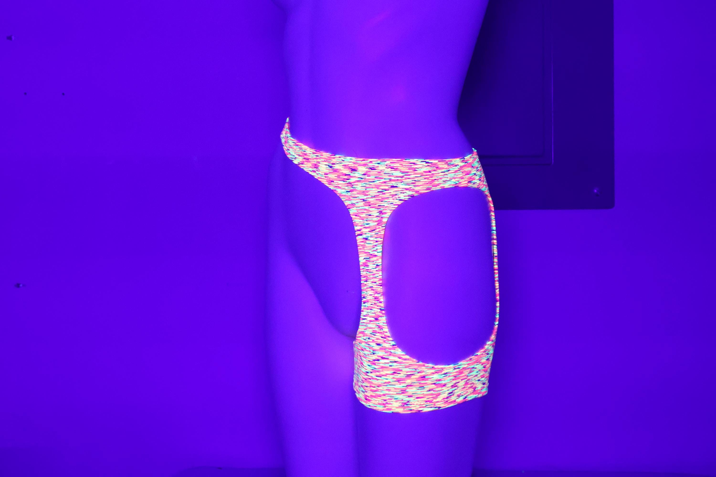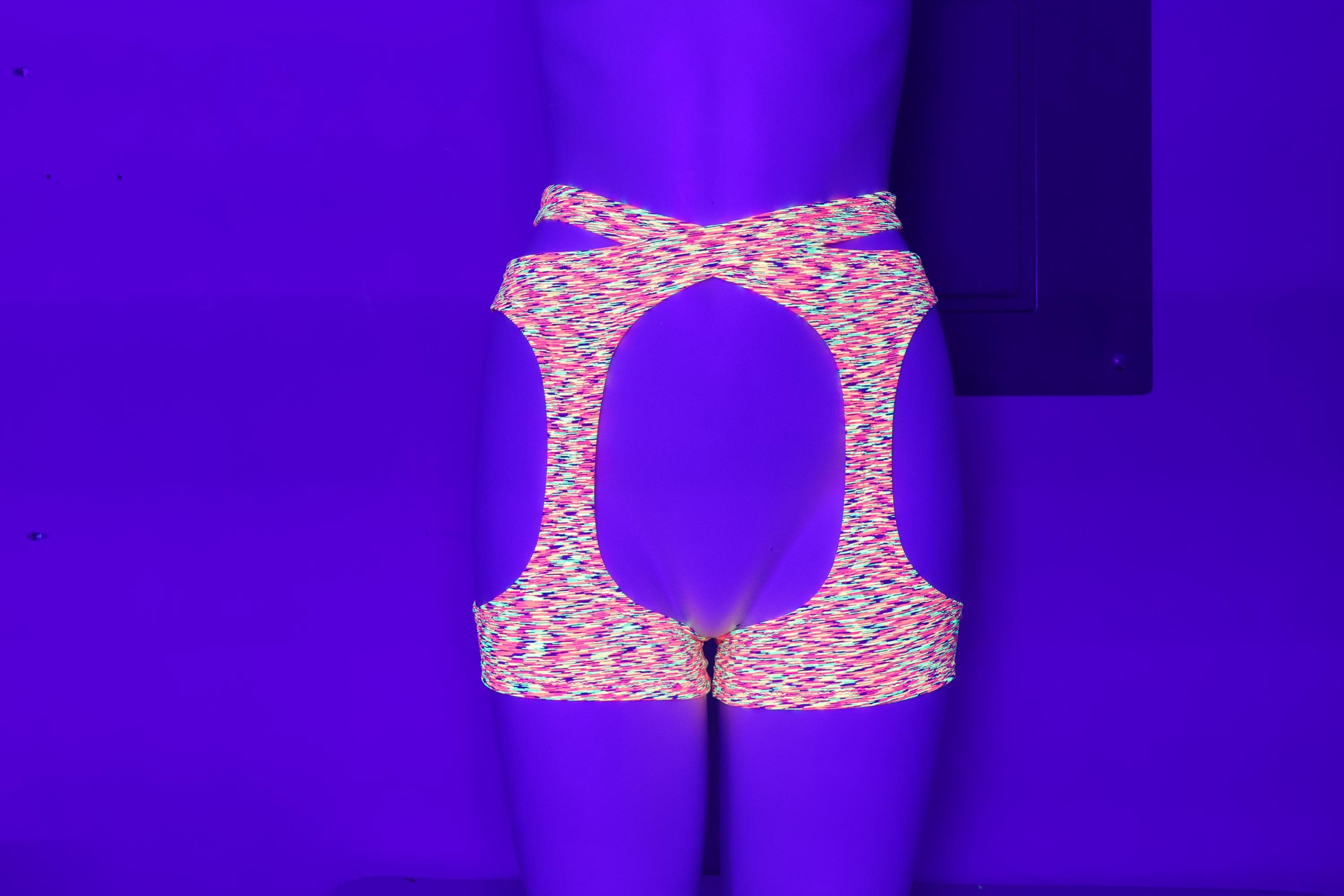 Psychedelic Print Rave Festival Shorts: High Waist Garter, Dancewear Clothing, Stripper Outfit, Cut Out