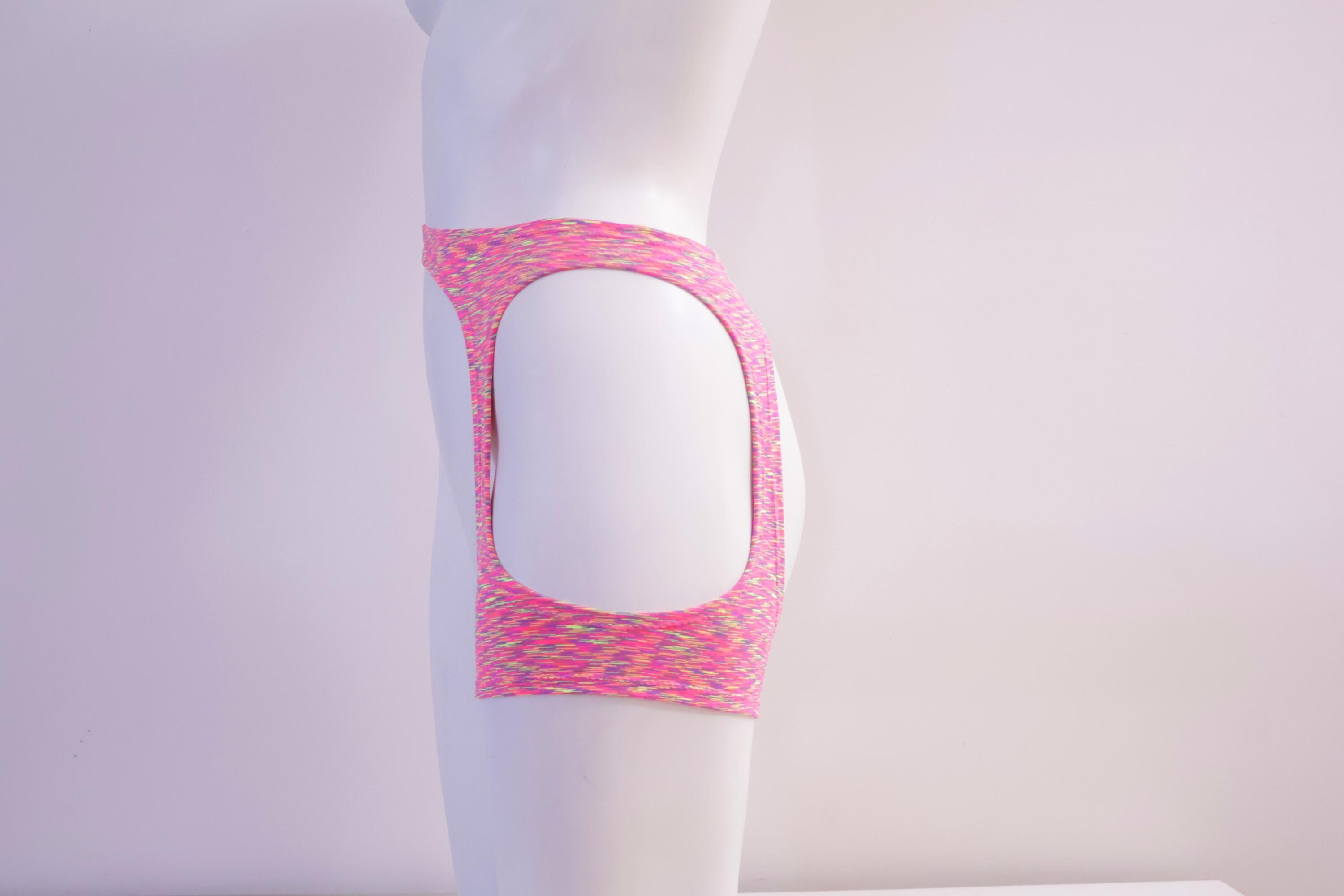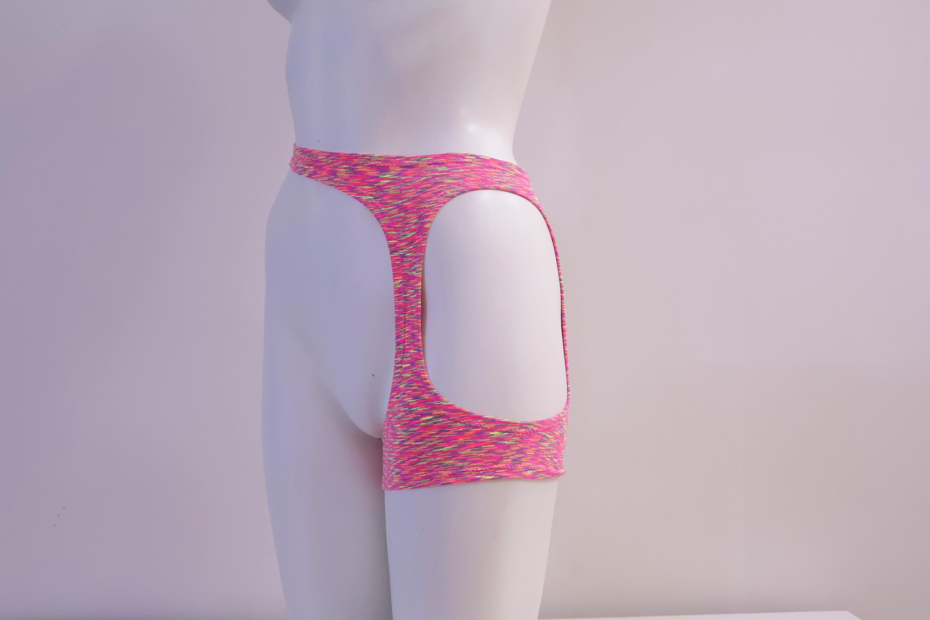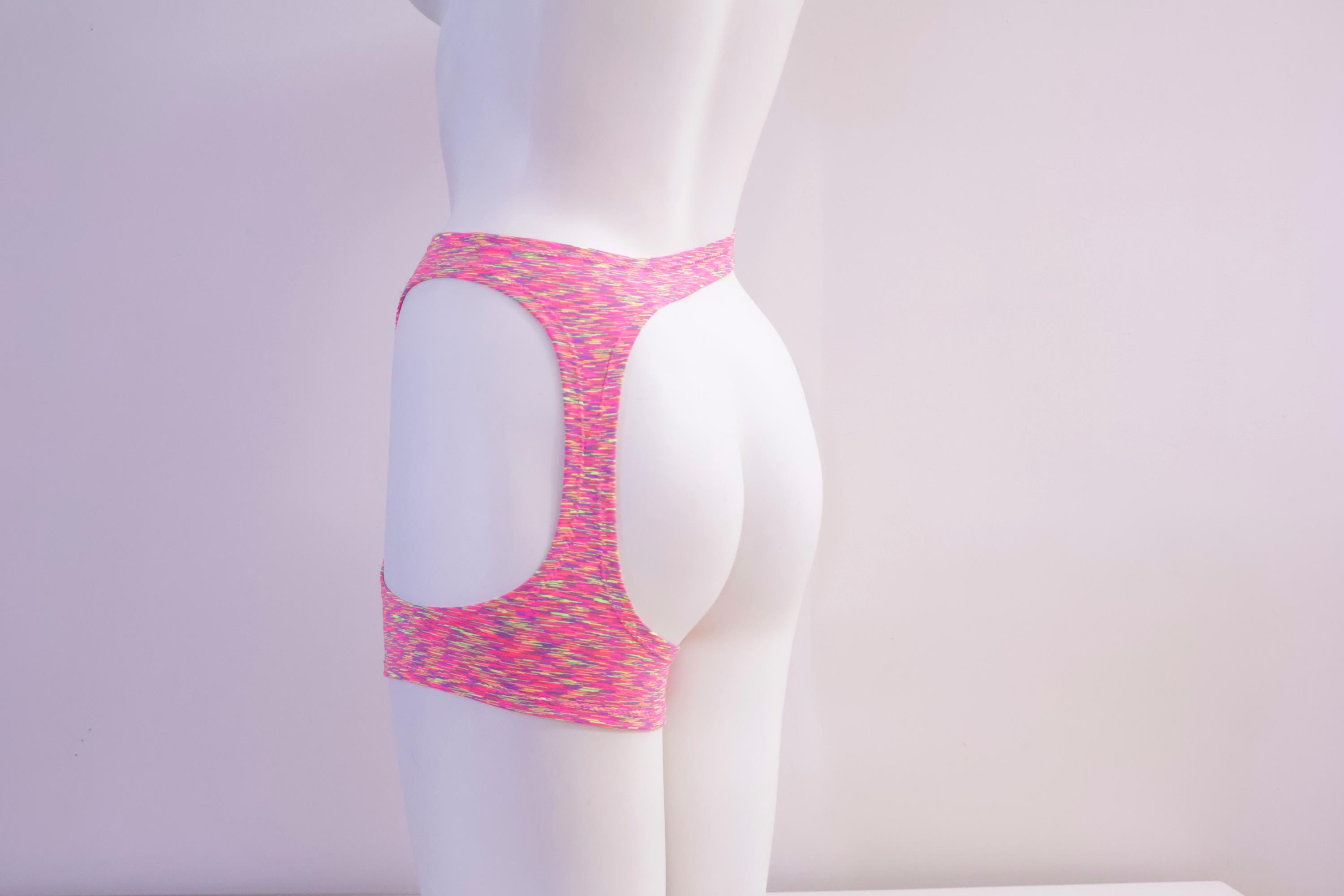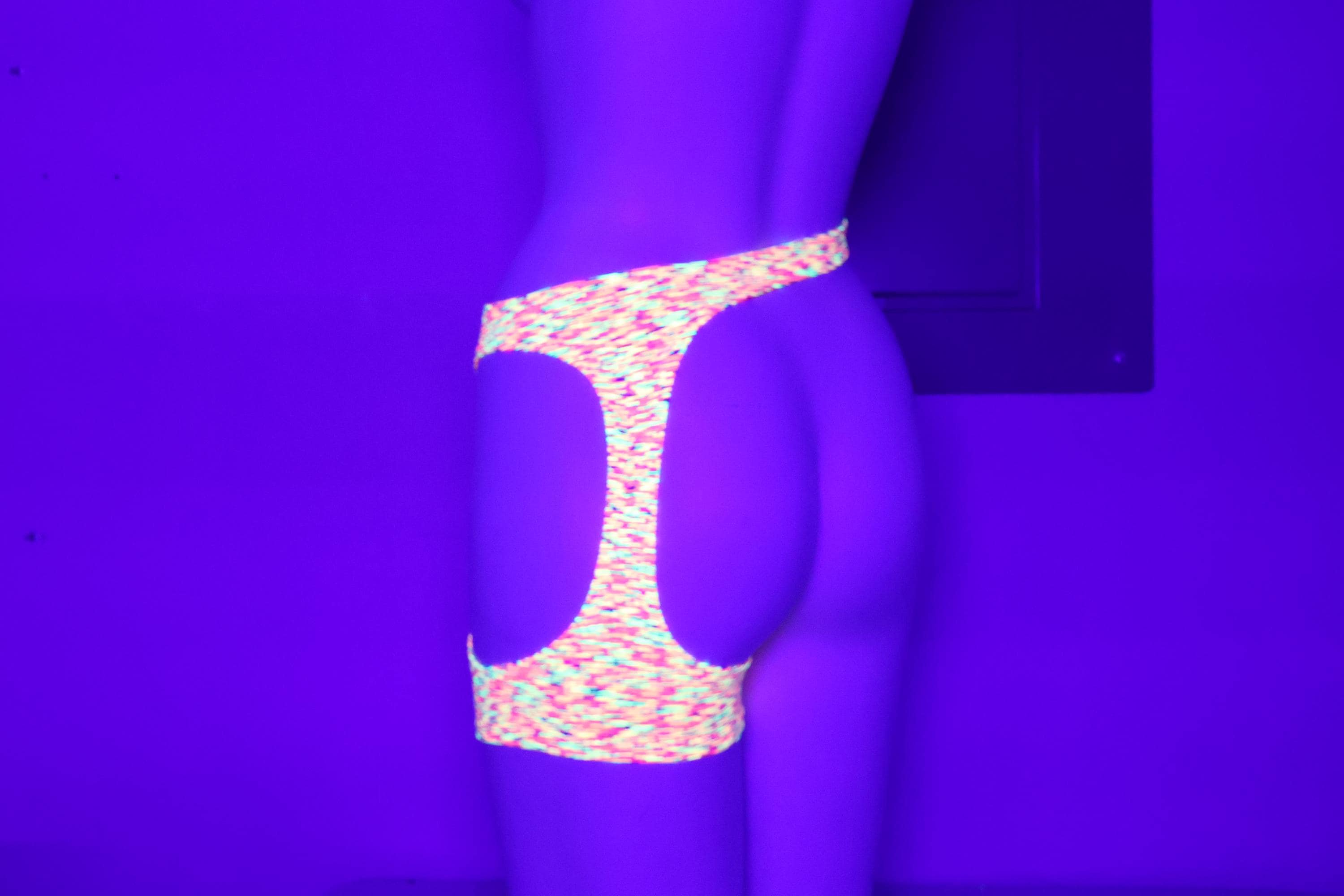 Psychedelic Print Rave Festival Shorts: High Waist Garter, Dancewear Clothing, Stripper Outfit, Cut Out