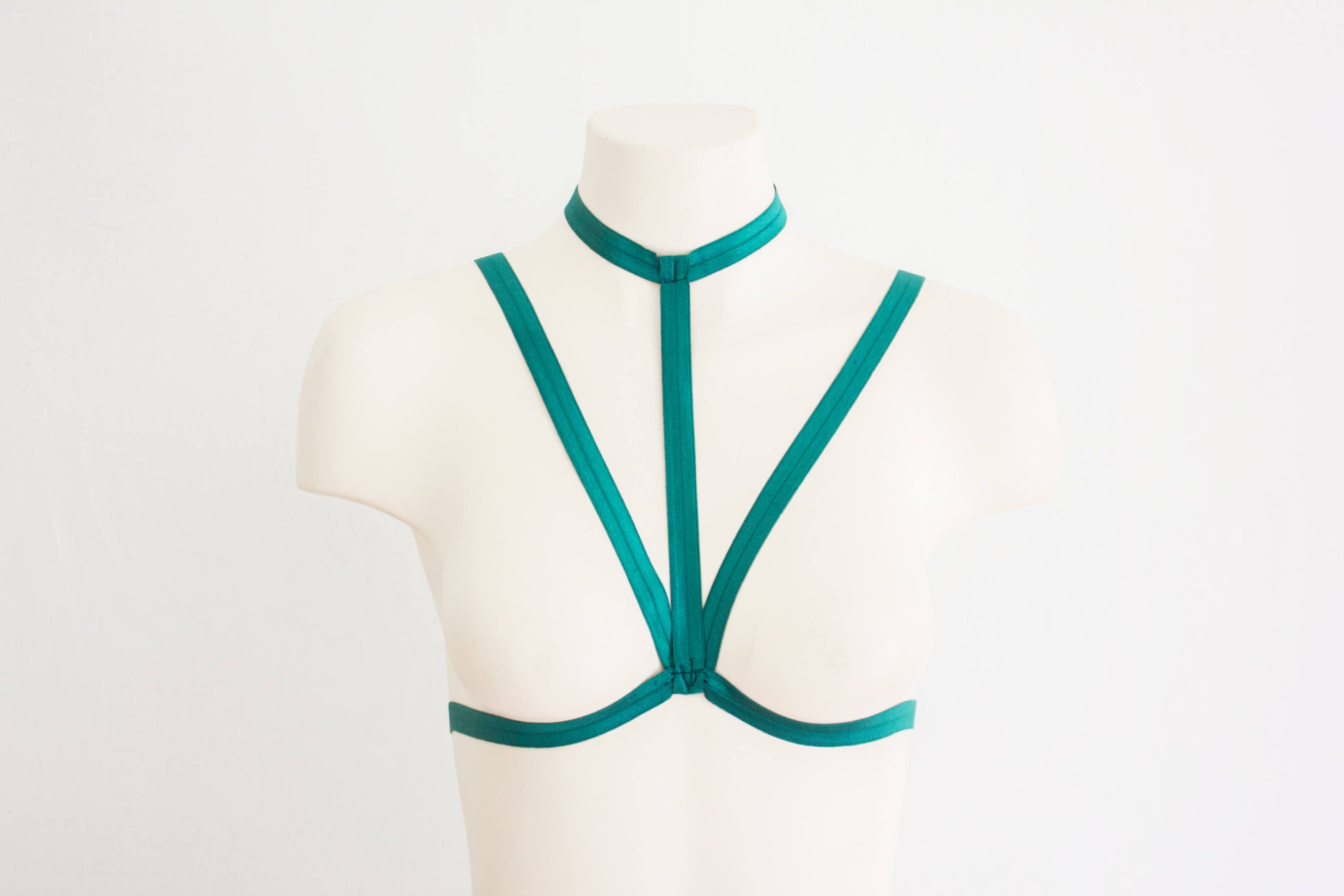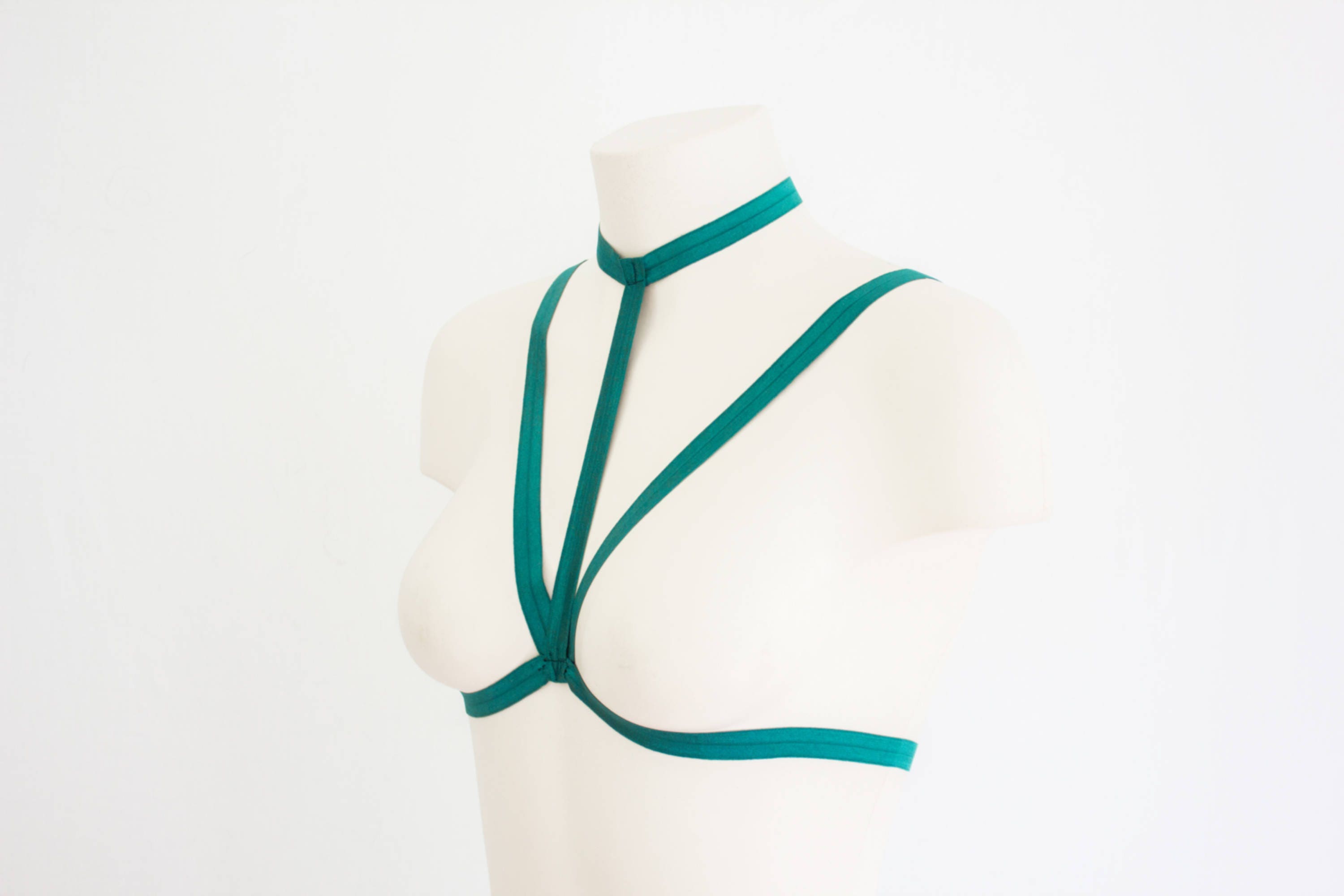 Geometric Body Harness Cage Bra. This Body Cage is great for under tops featuring a choker style neck section. Super fun and great for accessorizing any and festival outfits! Pair it with a quick release bra for a cute surprise at the end of your burlesque performance, or simply wear it all for yourself and whom ever you give the pleasure too, to enjoy it as well.