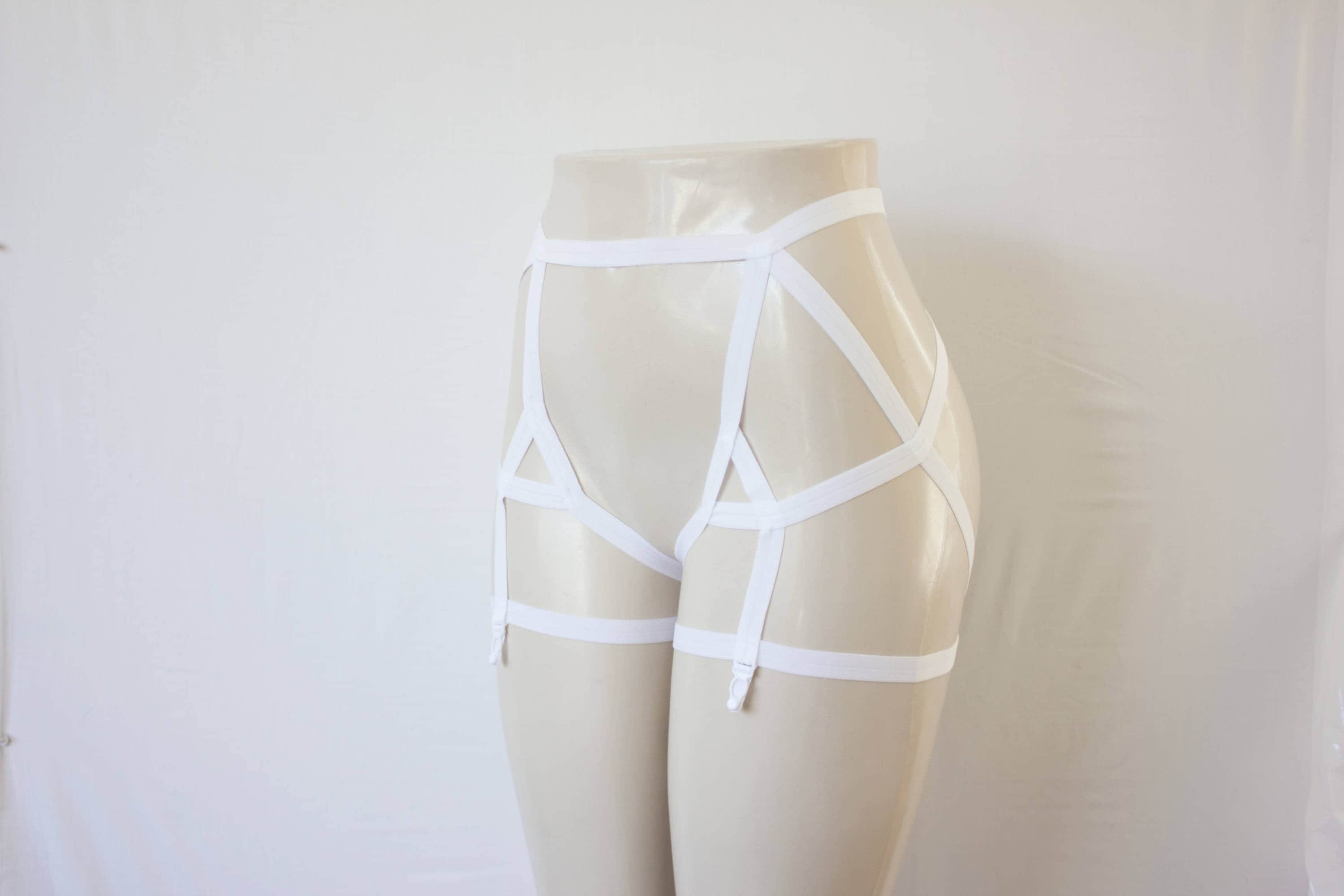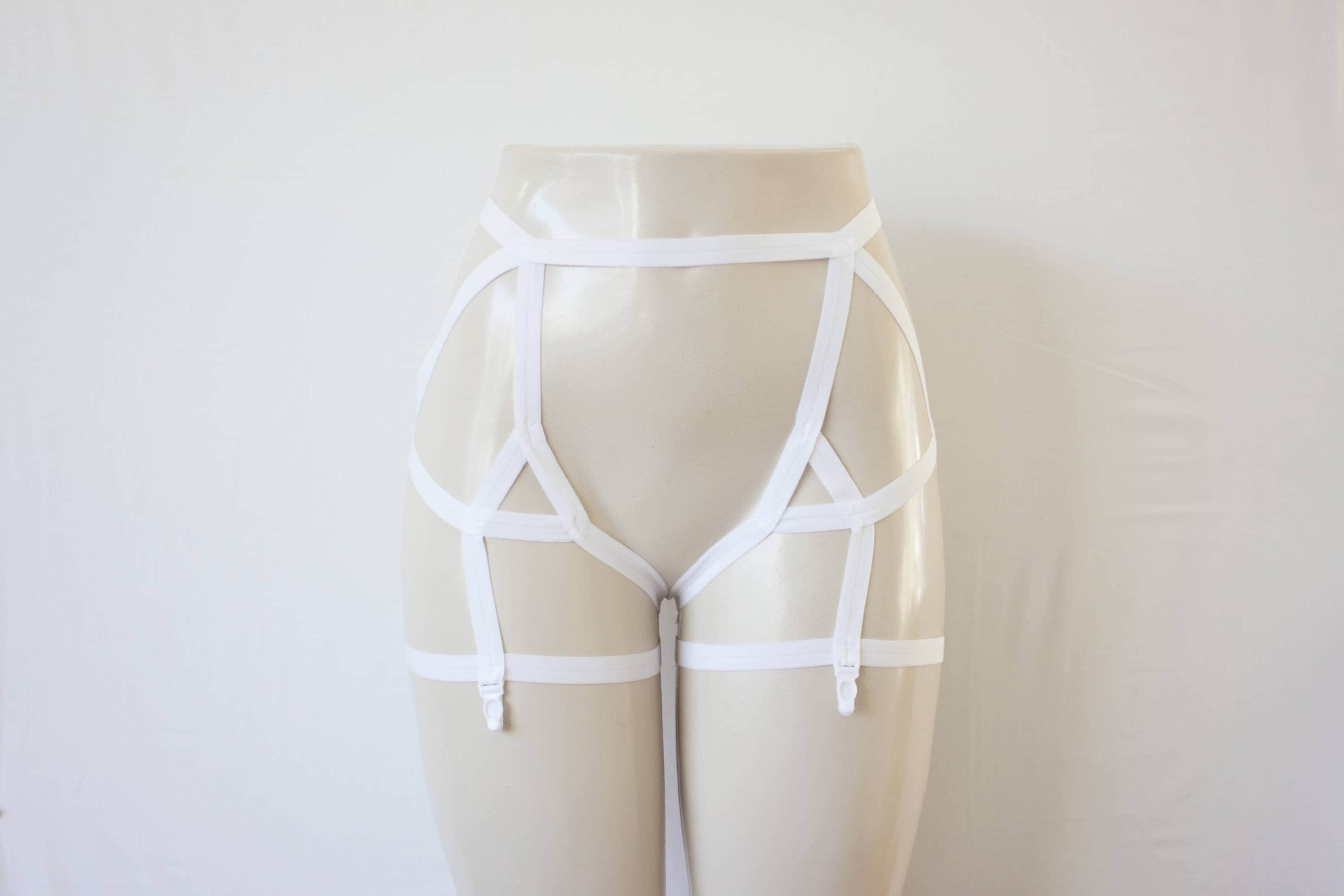 White Garter Belt: Wedding Lingerie, White Body Harness, White Body Cage, White Lingerie, Strappy Lingerie, Cage Garters, Bridal Lingerie