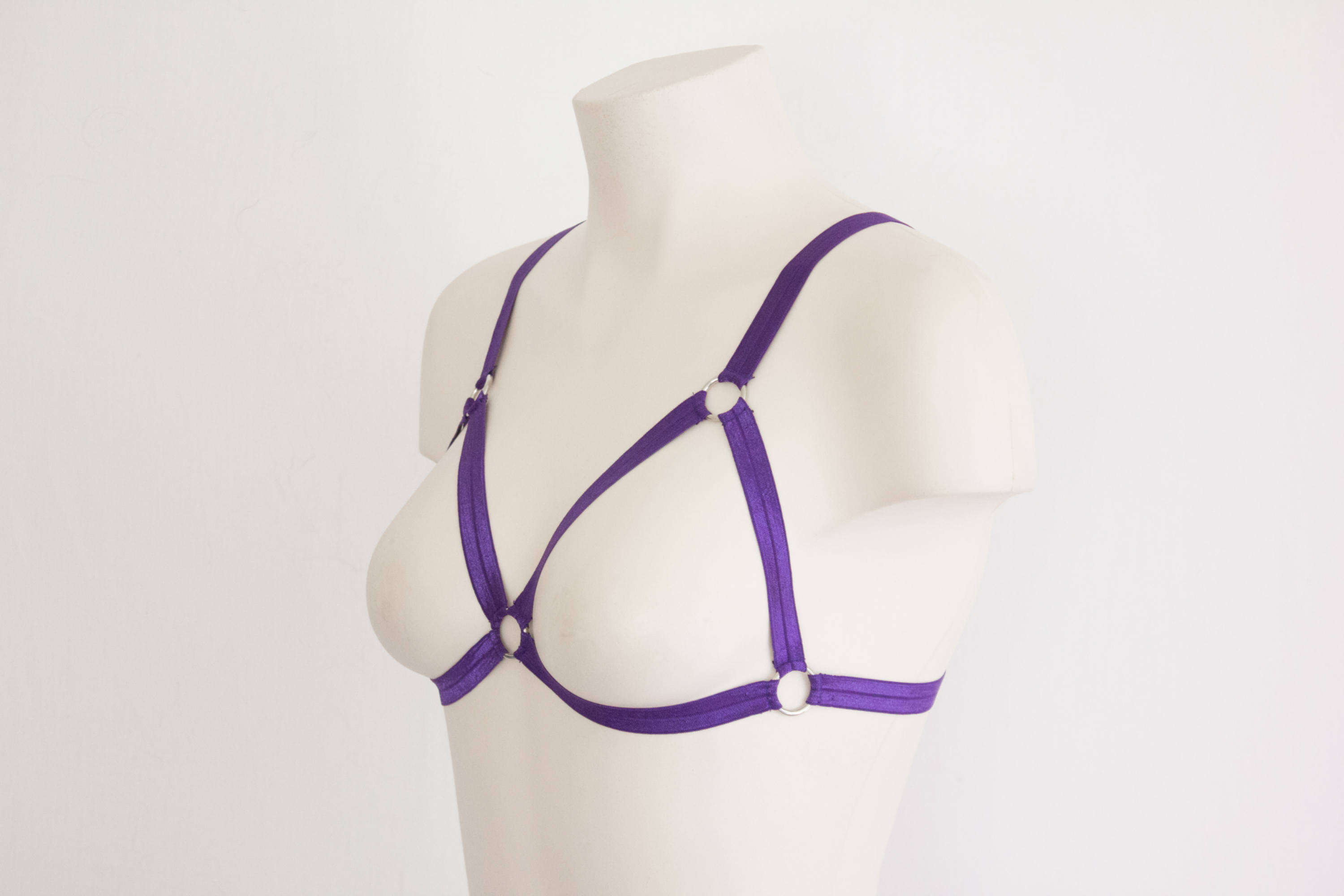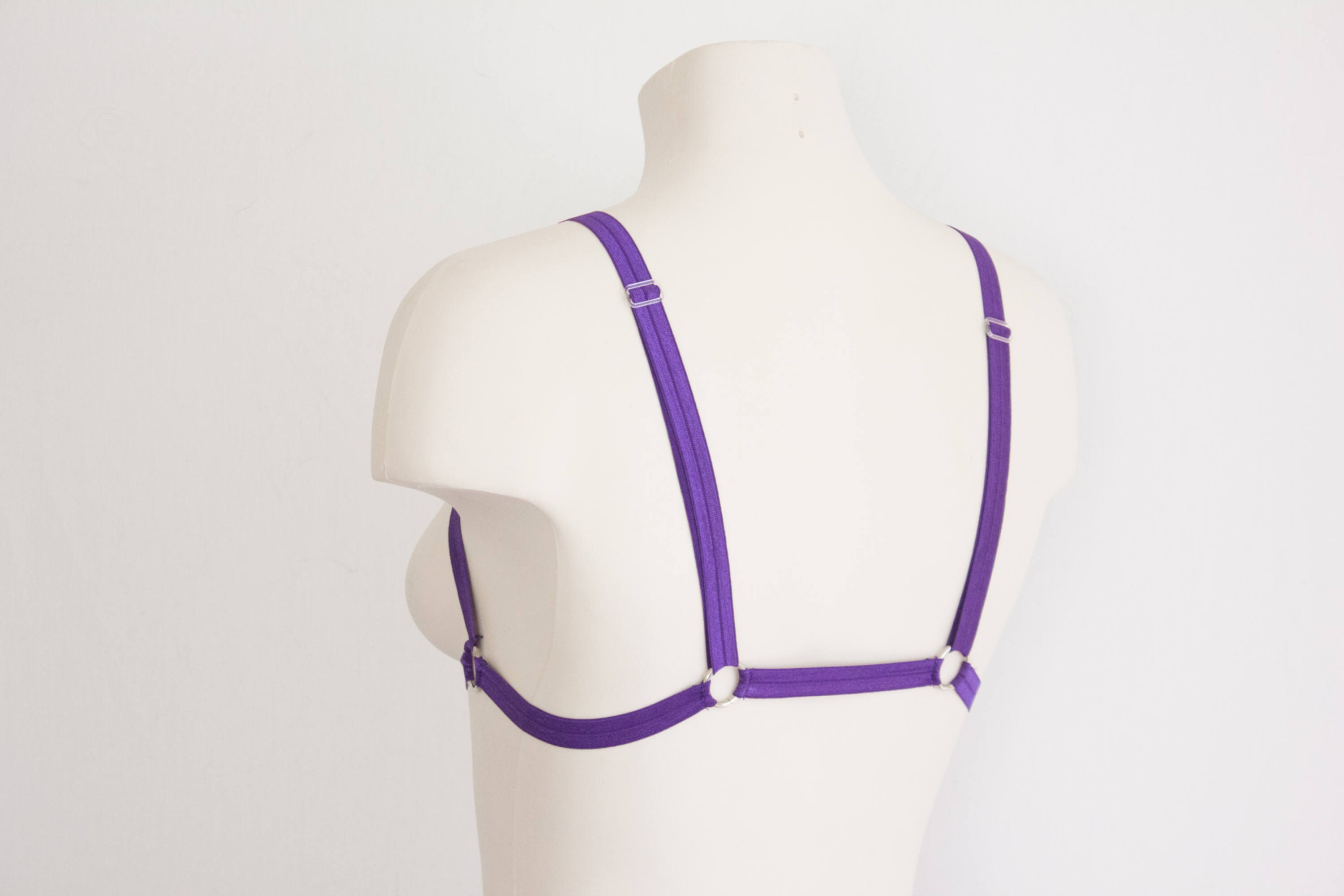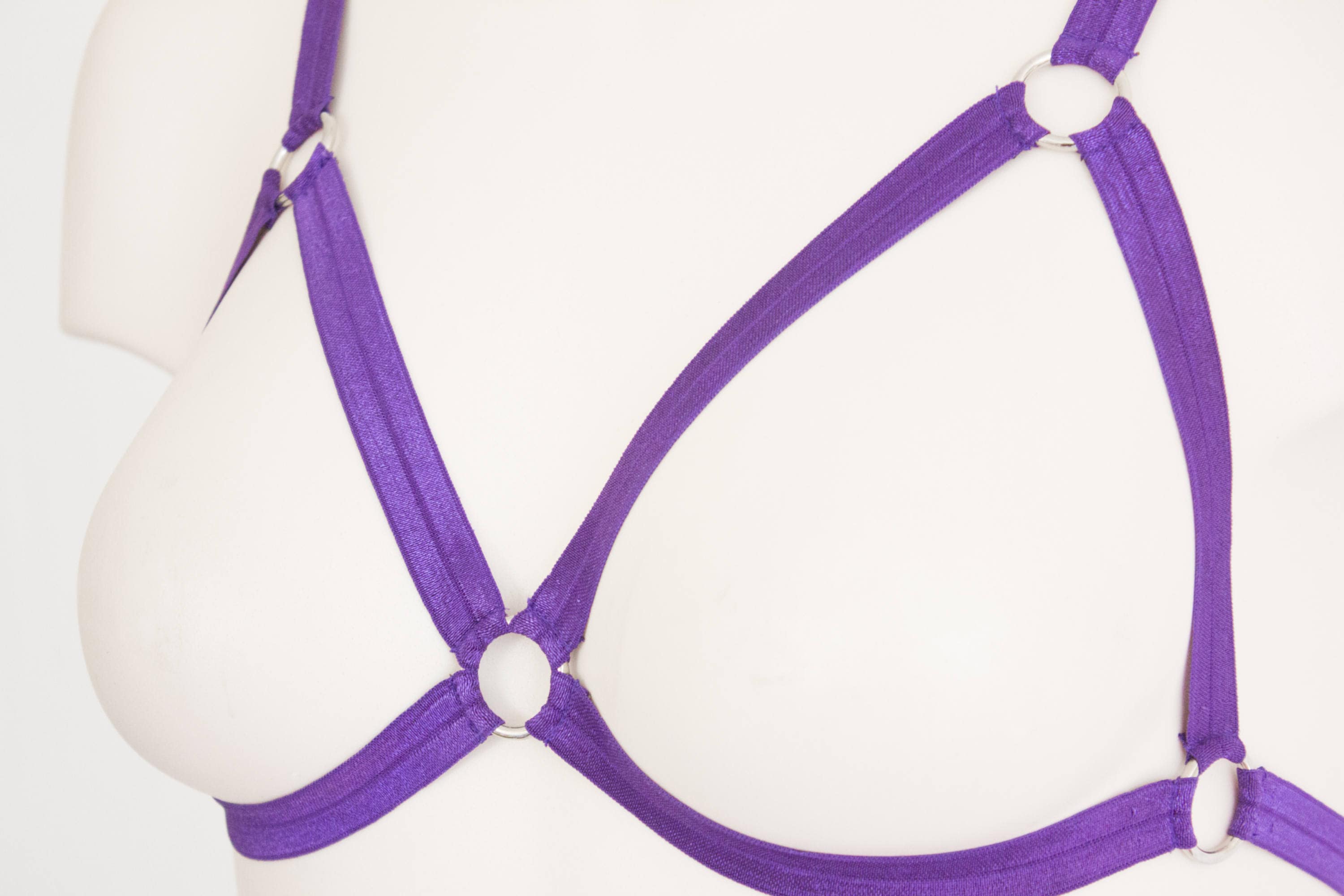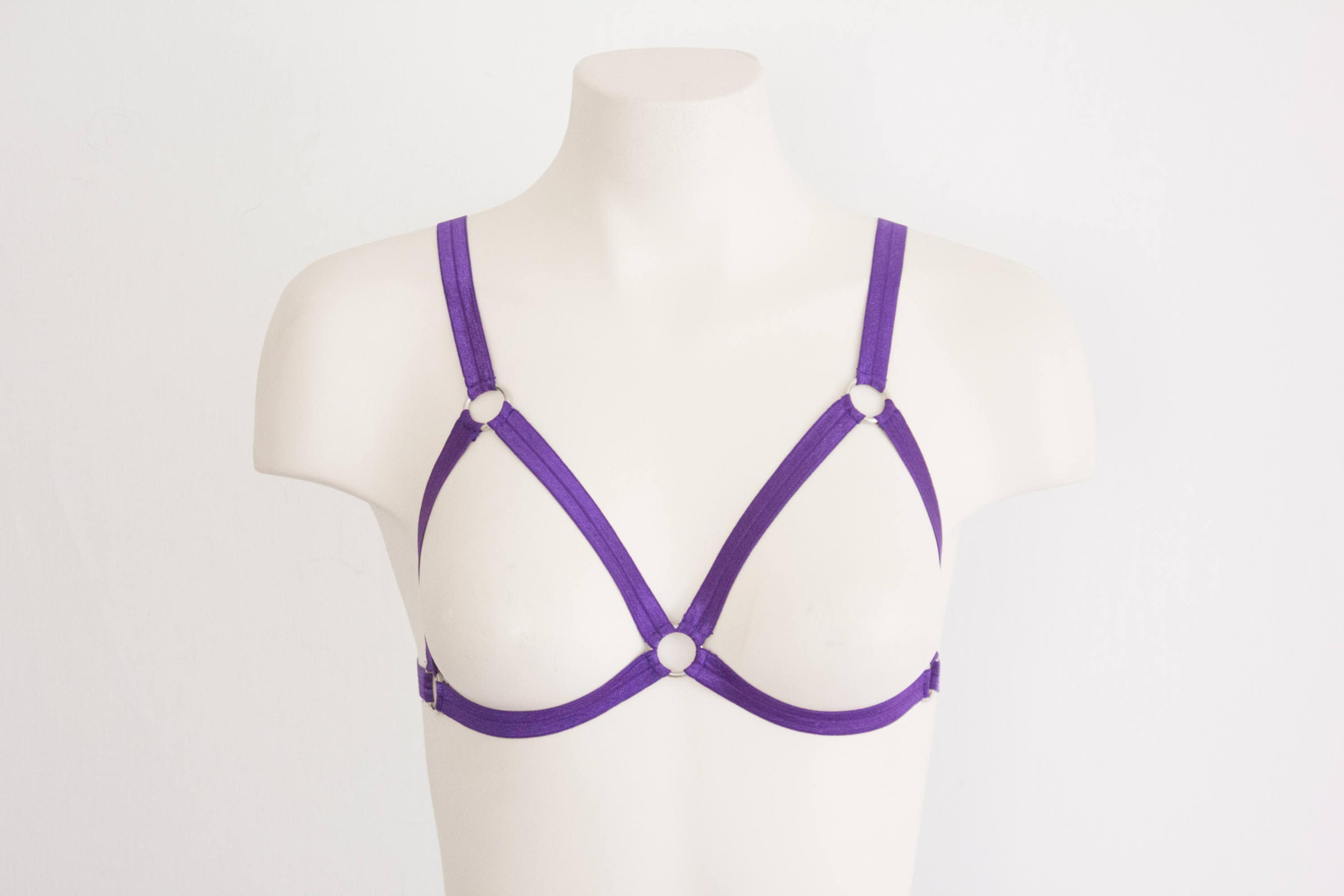 Purple Bralette, Purple Body Harness Lingerie, Festival Outfit, Exotic Dancewear, Triangle Bra, Purple Clothing, Strappy Lingerie, Cut Out