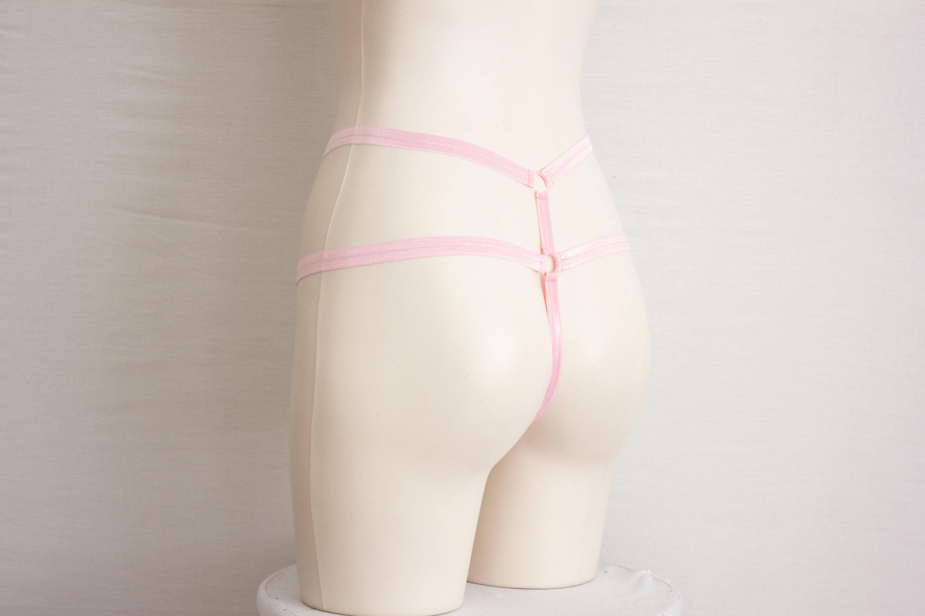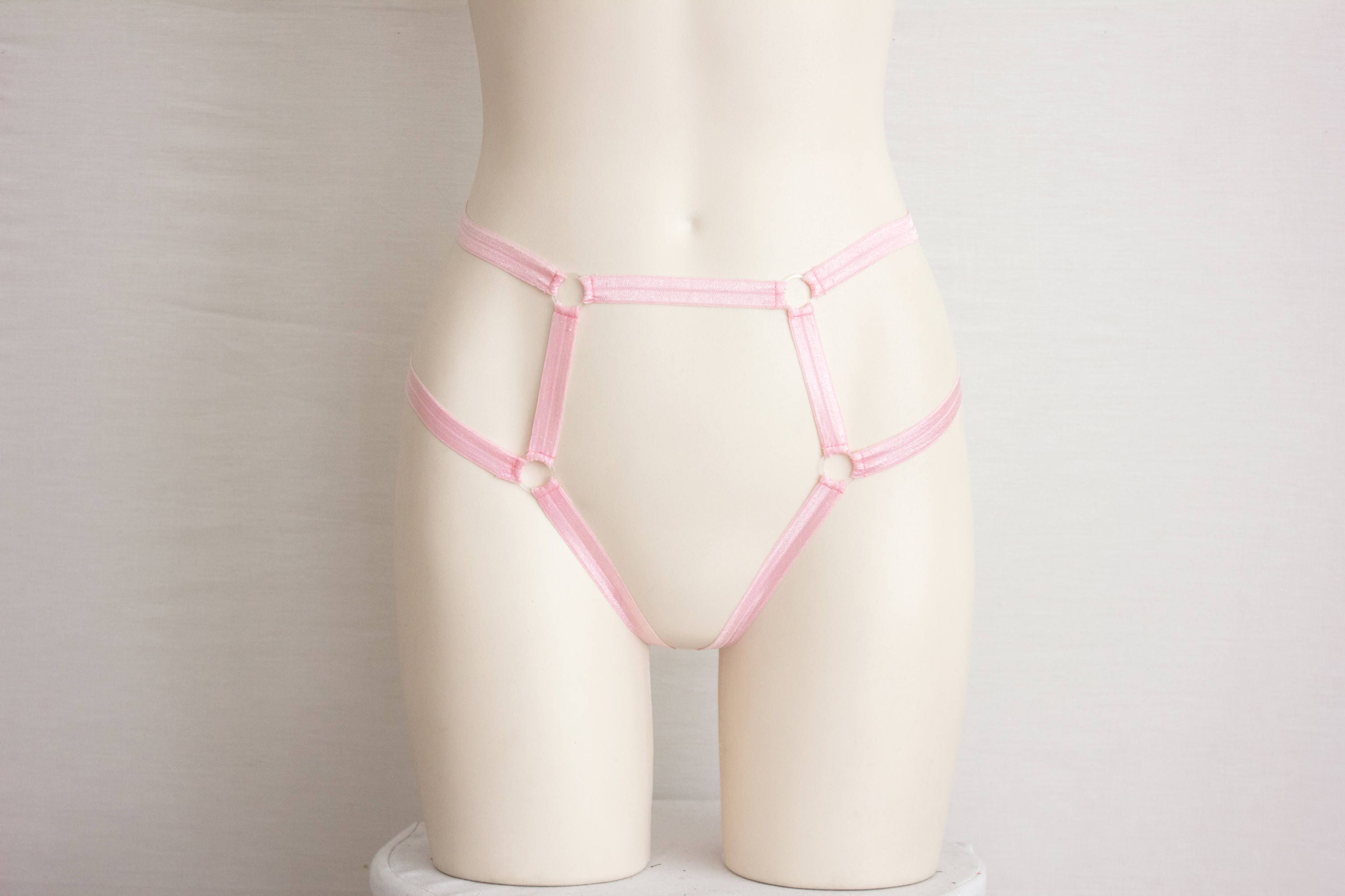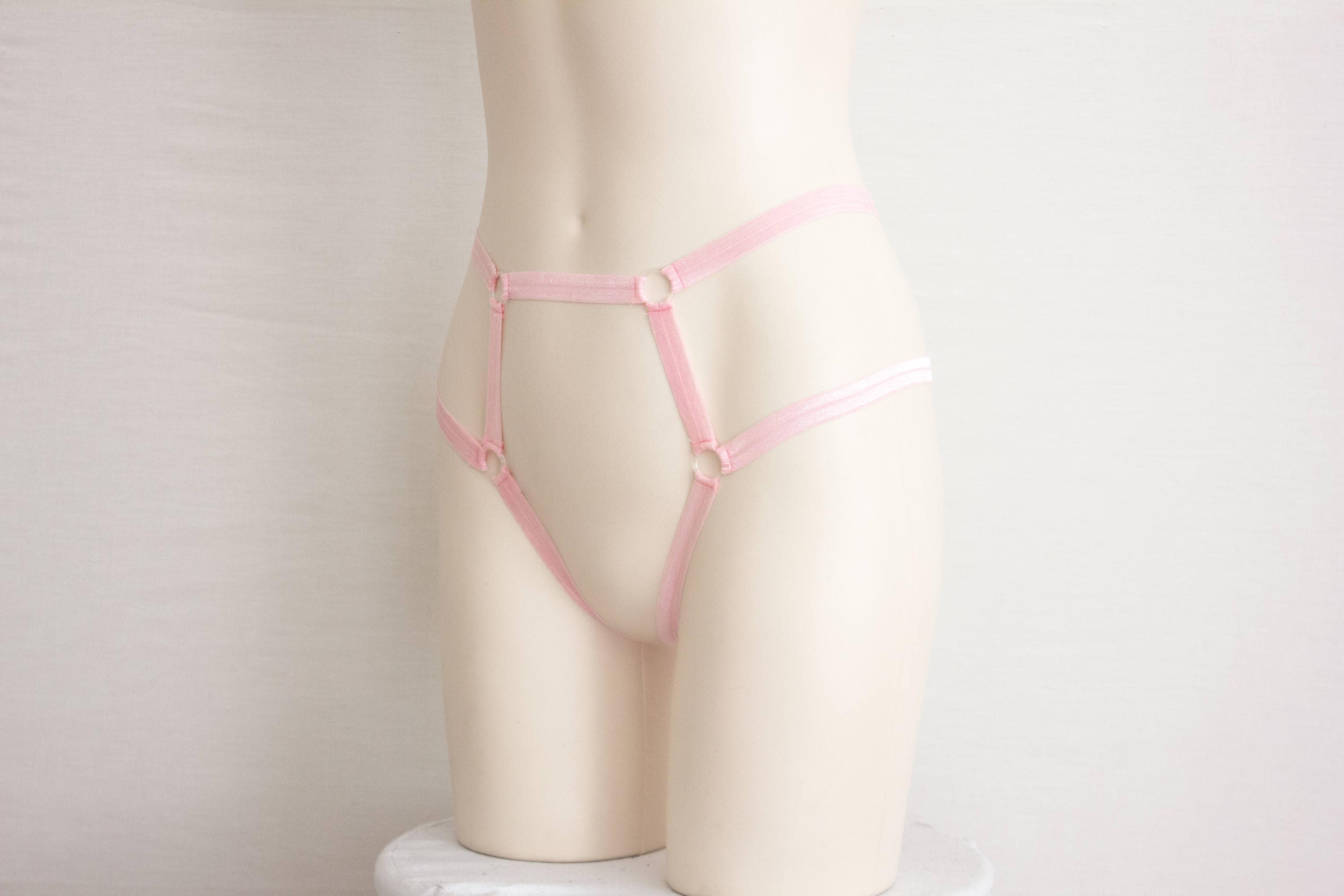 DDLG Clothing, Pink Lingerie, High Waist Panties, Thong Underwear, Boudoir, Burlesque, Exotic Dancewear, Harness Panties, Pastel Goth, Pastel Pink