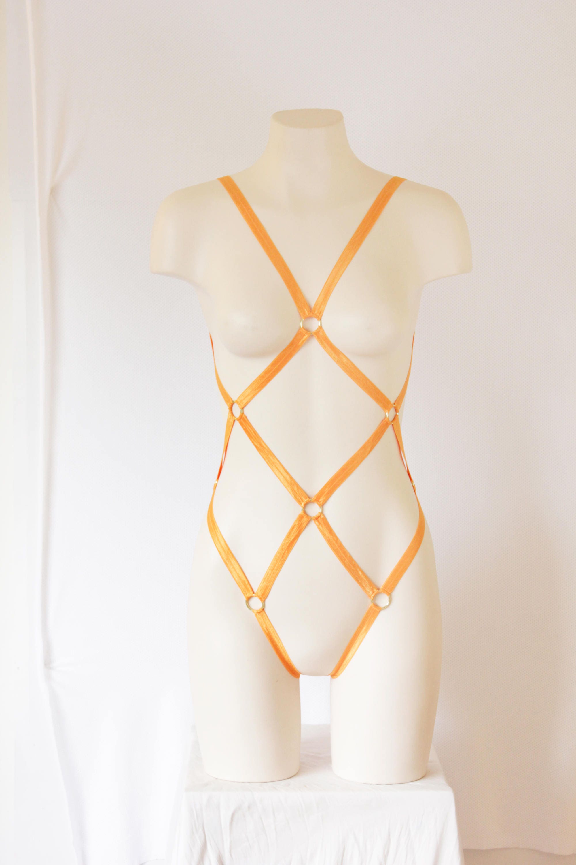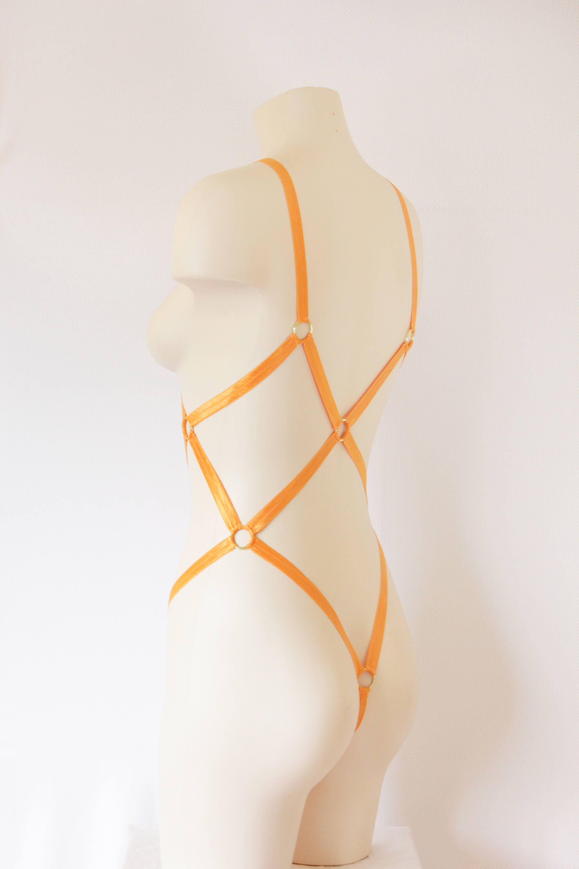 Della Bodysuit Body Harness displayed in ORANGE
