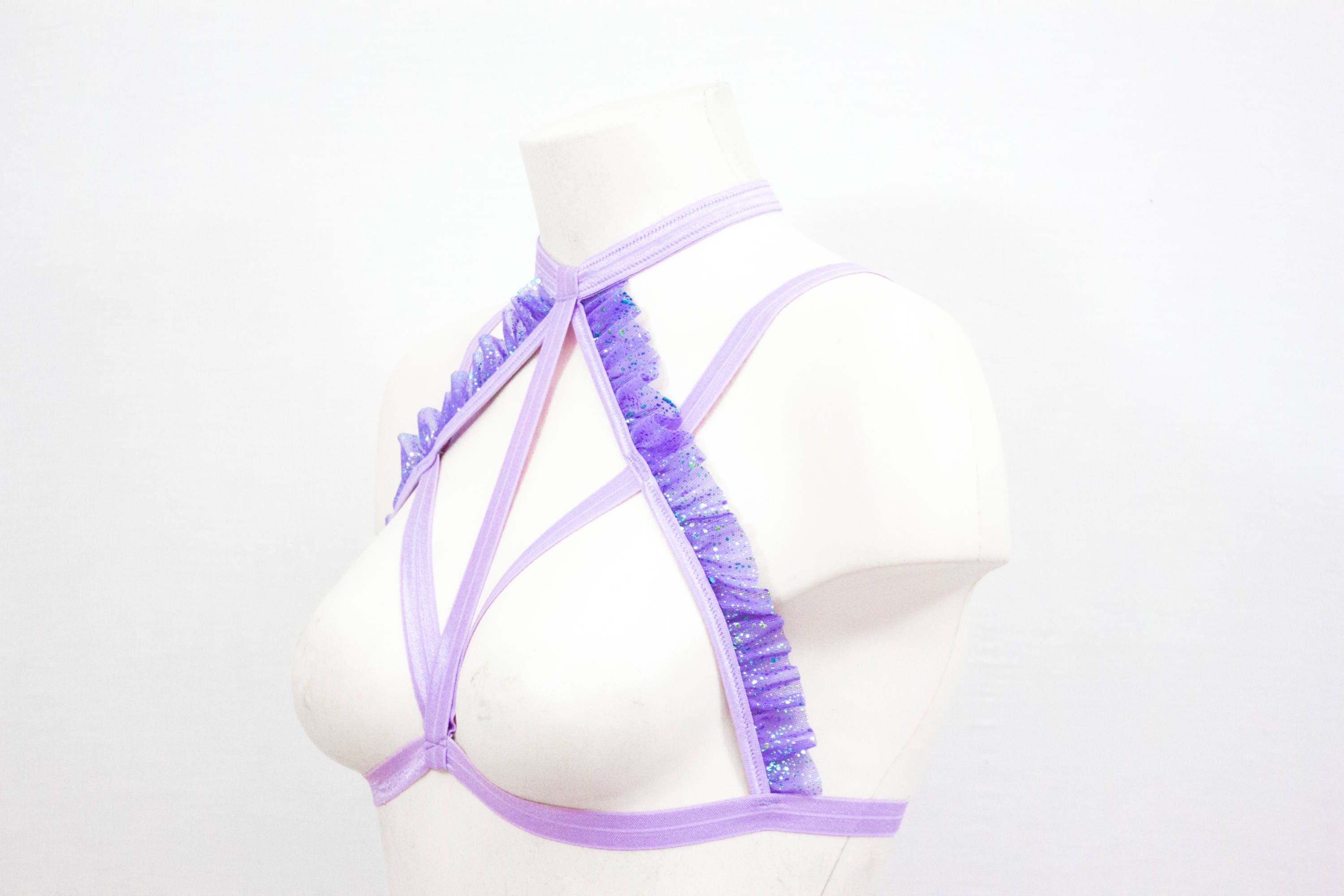 Purple Cage Bralette, Body Harness Lingerie, Burlesque Bra, Oil Slick, Festival Top, Lavender Crop Top, Strappy Lingerie, Exotic Dancewear, Purple Lingerie