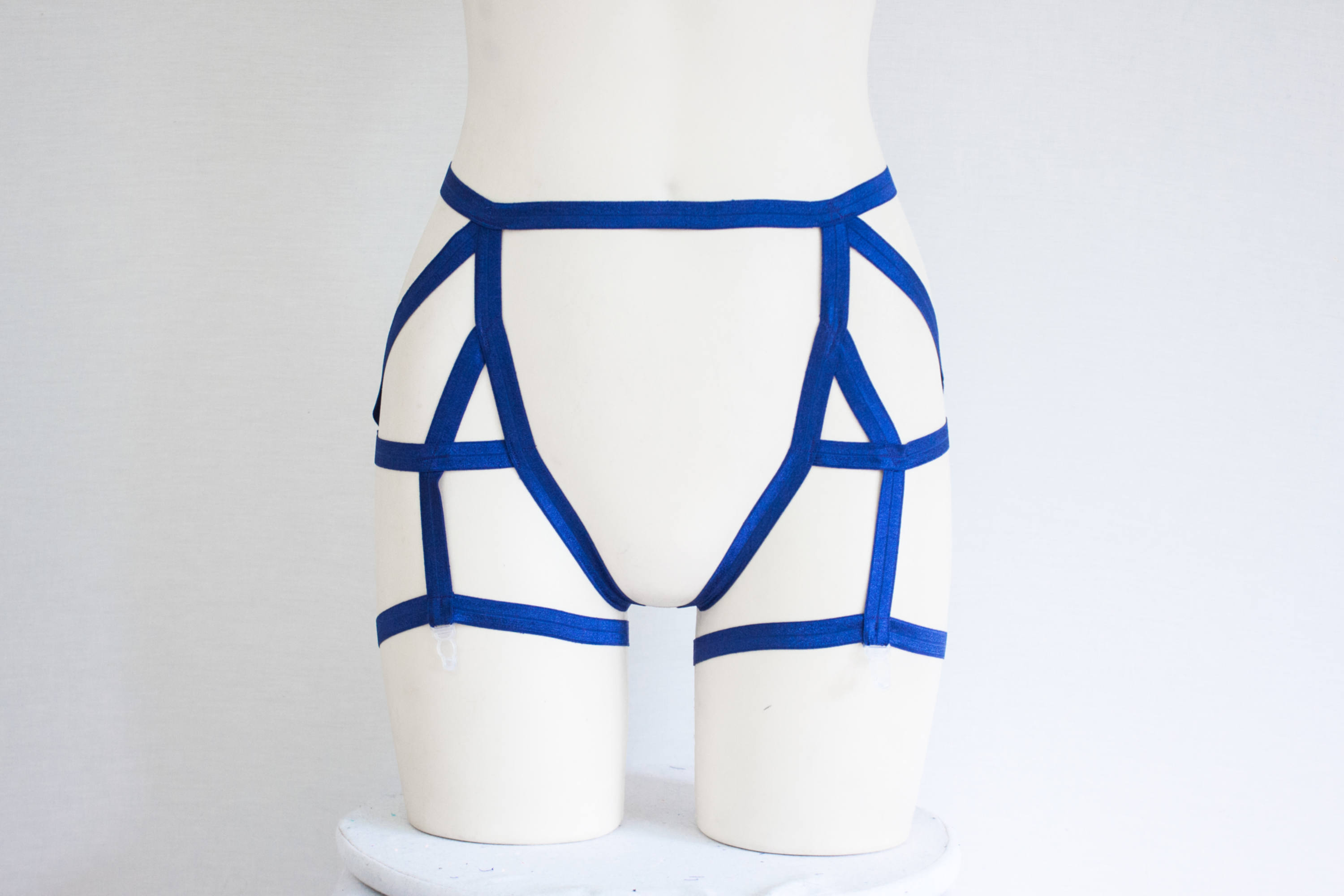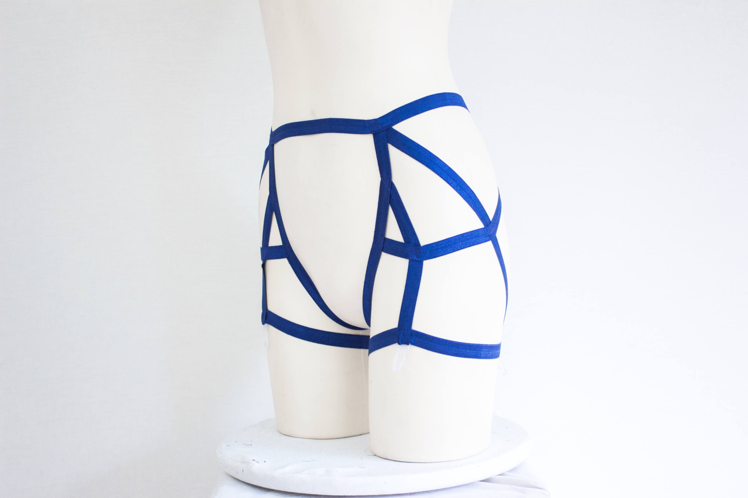 Navy Blue Garter Belt, Harness Lingerie, Cage Garter, Strappy Lingerie, High Waisted Underwear, Boudoir, Burlesque Garter, Blue Clothing