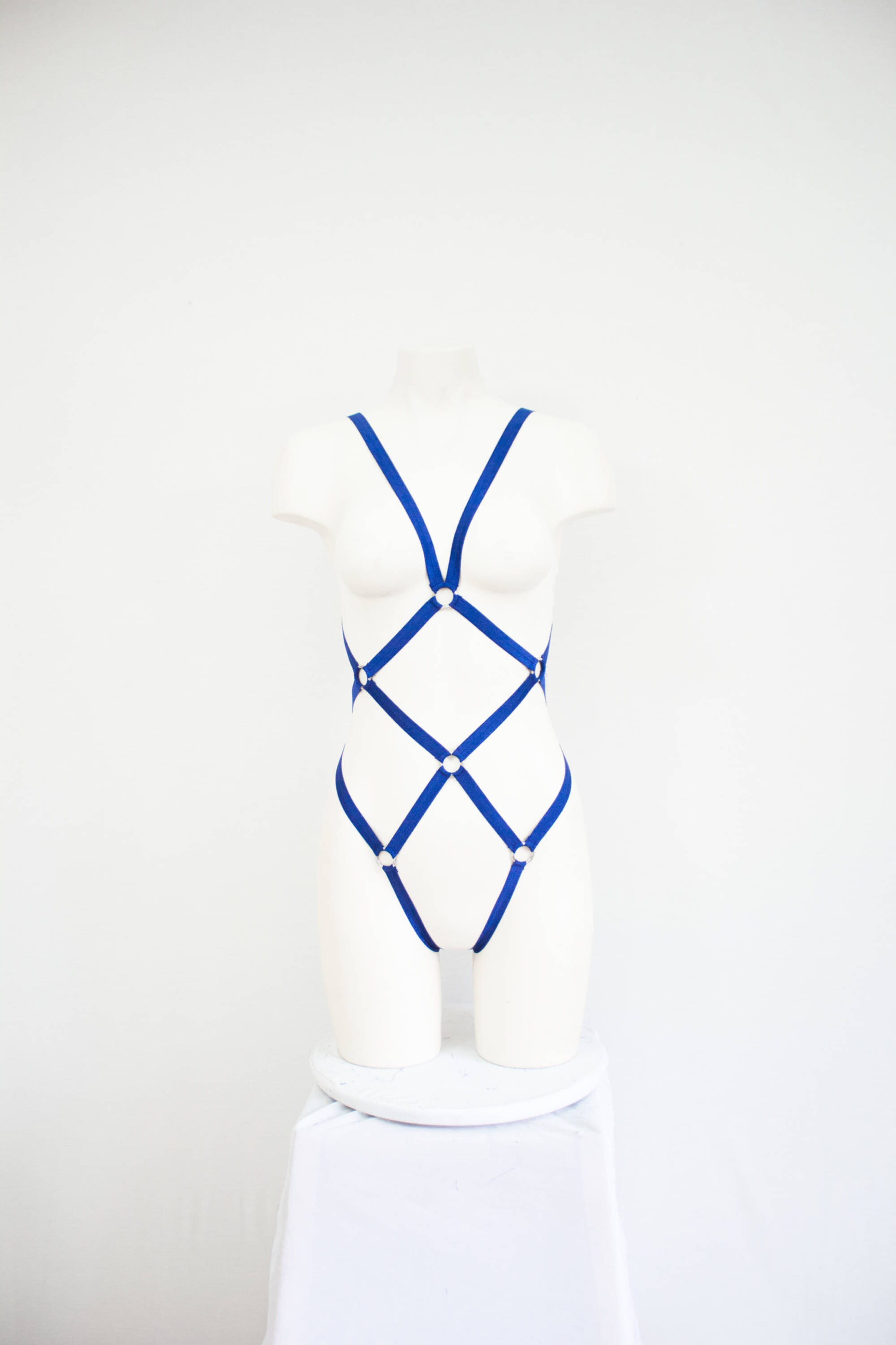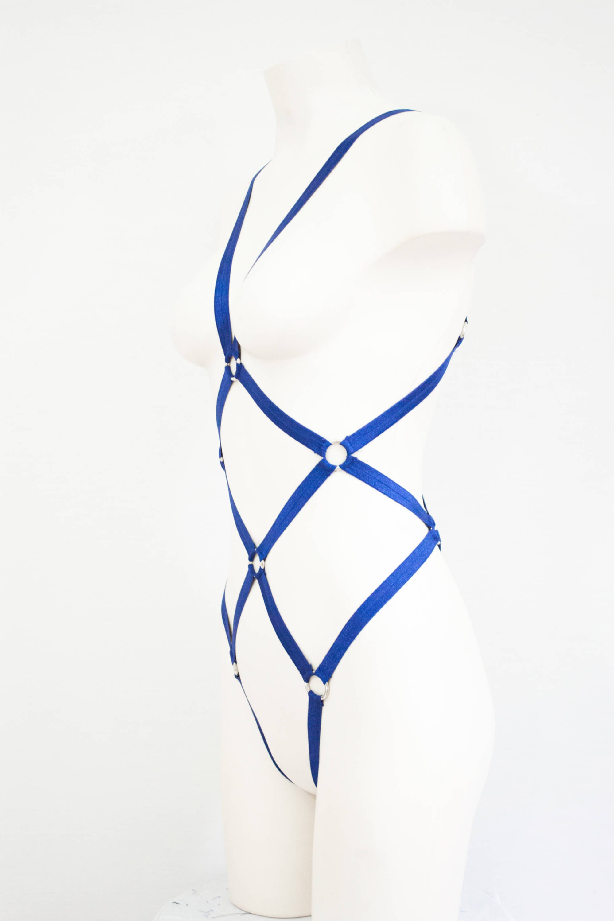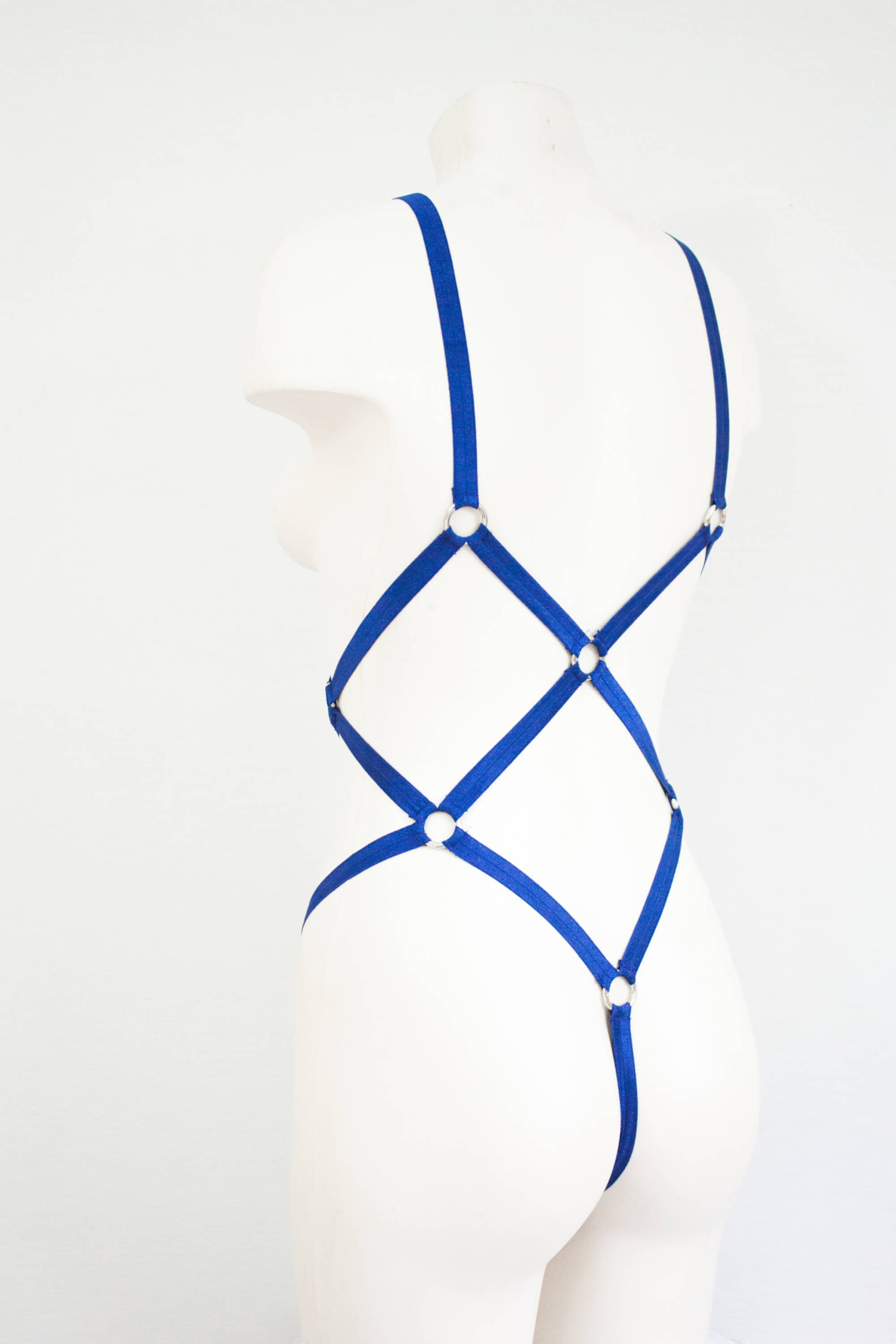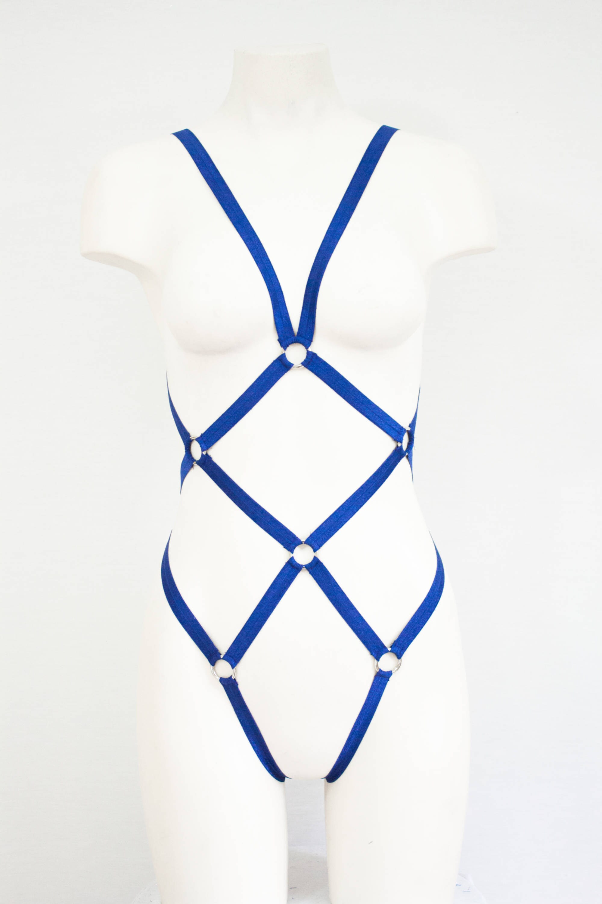 Blue Bodysuit Body Harness: Navy Blue Lingerie, FishNet, Festival Bodysuit, Bondage Lingerie, Open Crotch, Thong Bodysuit, Burlesque Outfit