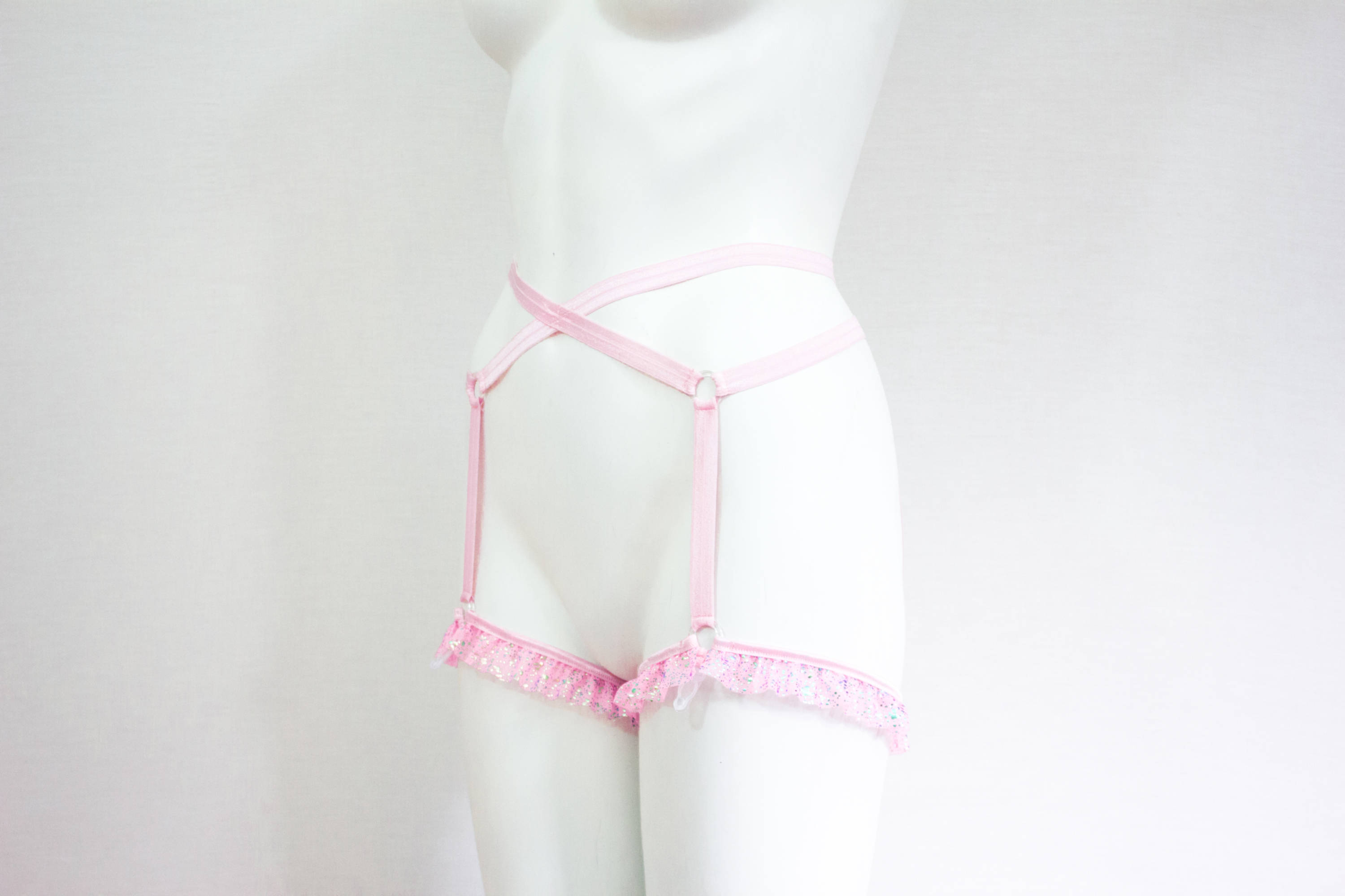 Pink Garter Belt, Pastel Lingerie, Body Harness, Harness Lingerie, Pin Up Clothing, Pastel Punk Goth, DDLG, Roleplay, Festival Fashion, Exotic Dancewear, EDM, Rave Wear