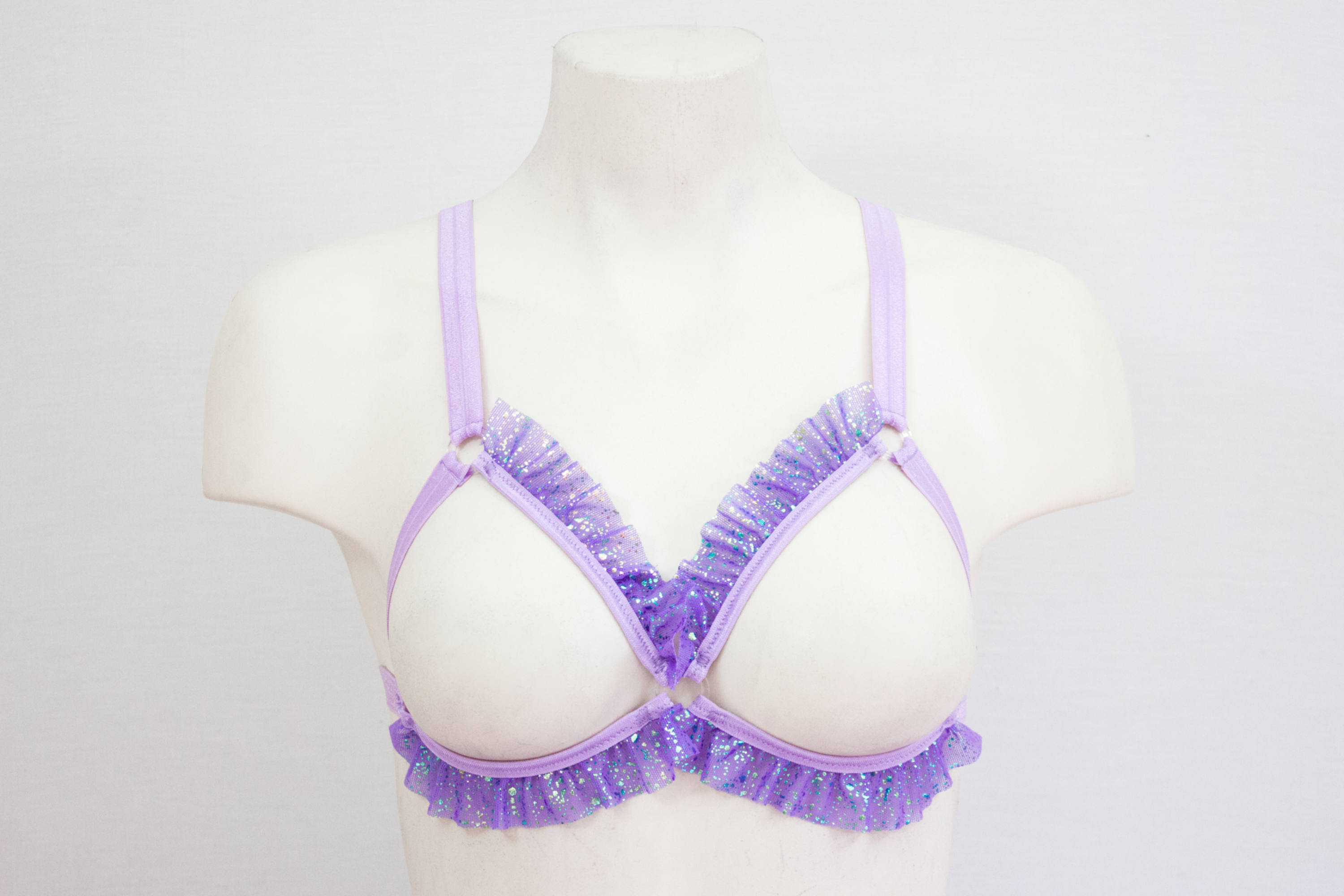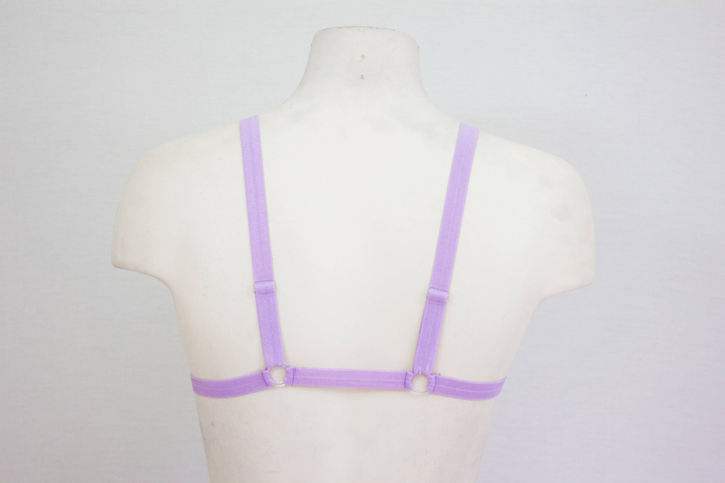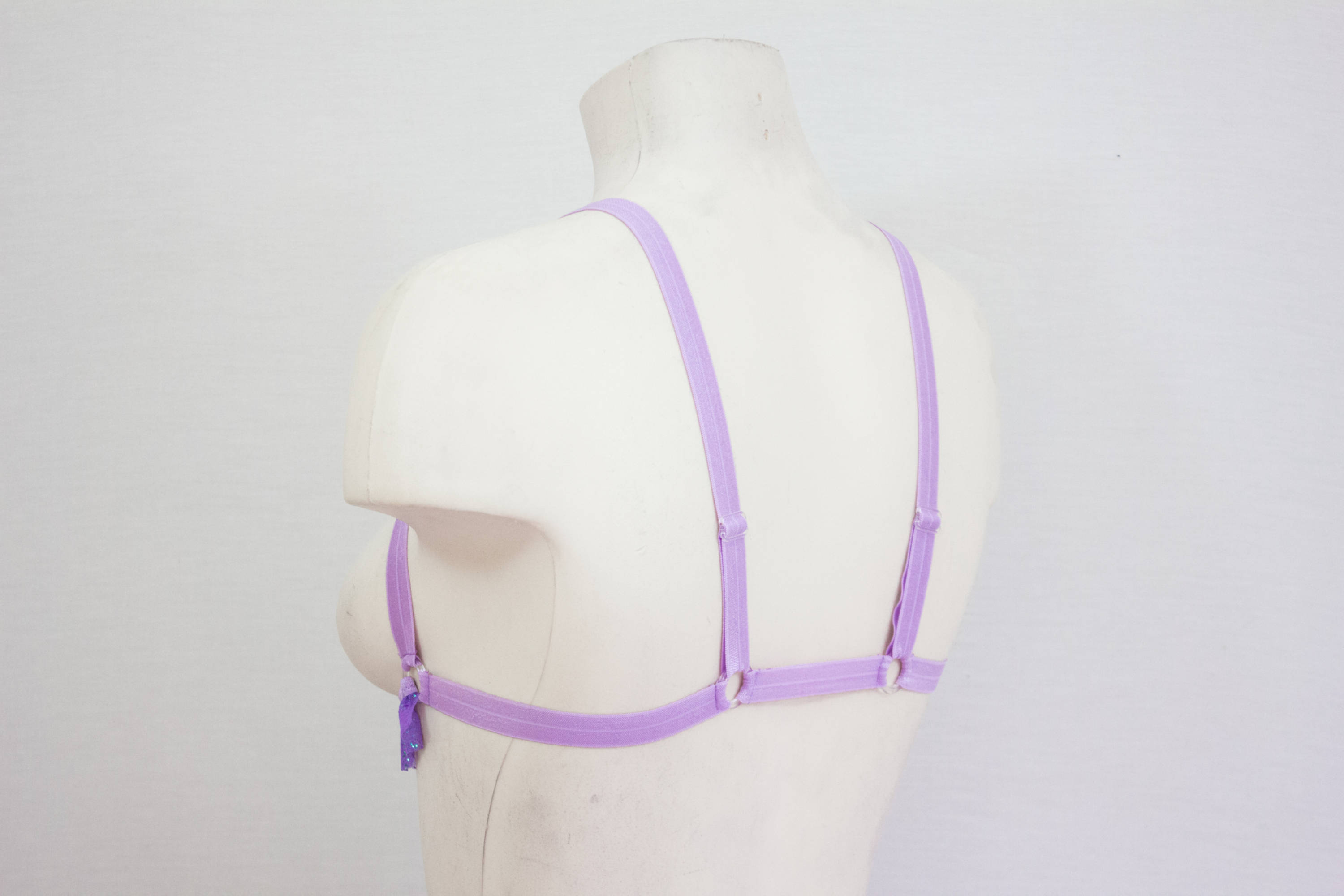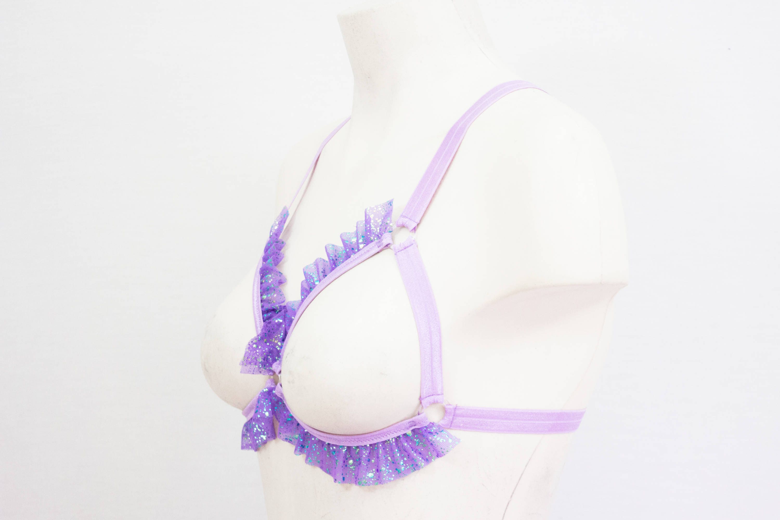 Candy Confetti Oil Slick Mesh strap Cage Bralette Harness Lingerie Lavender Purple