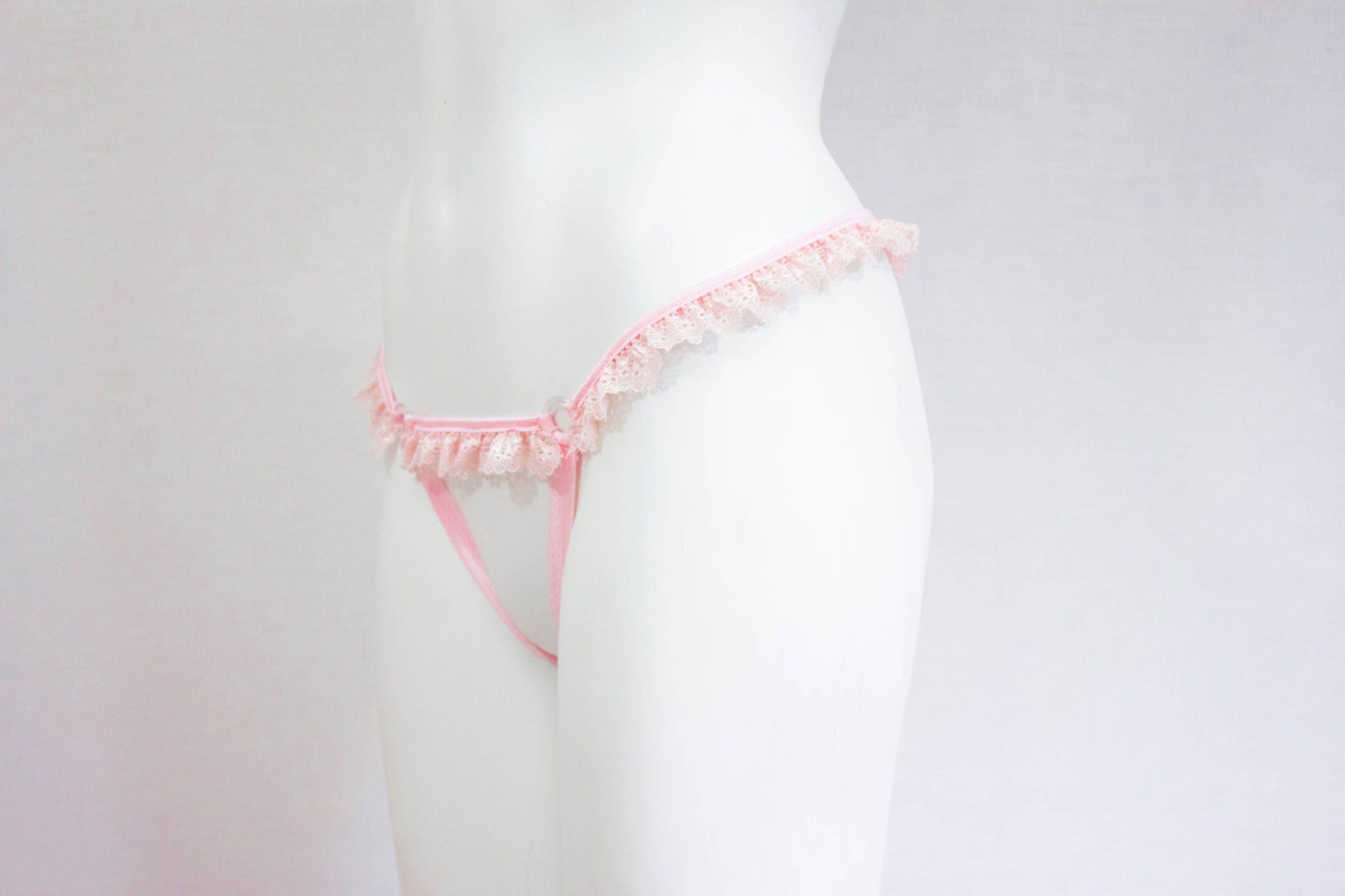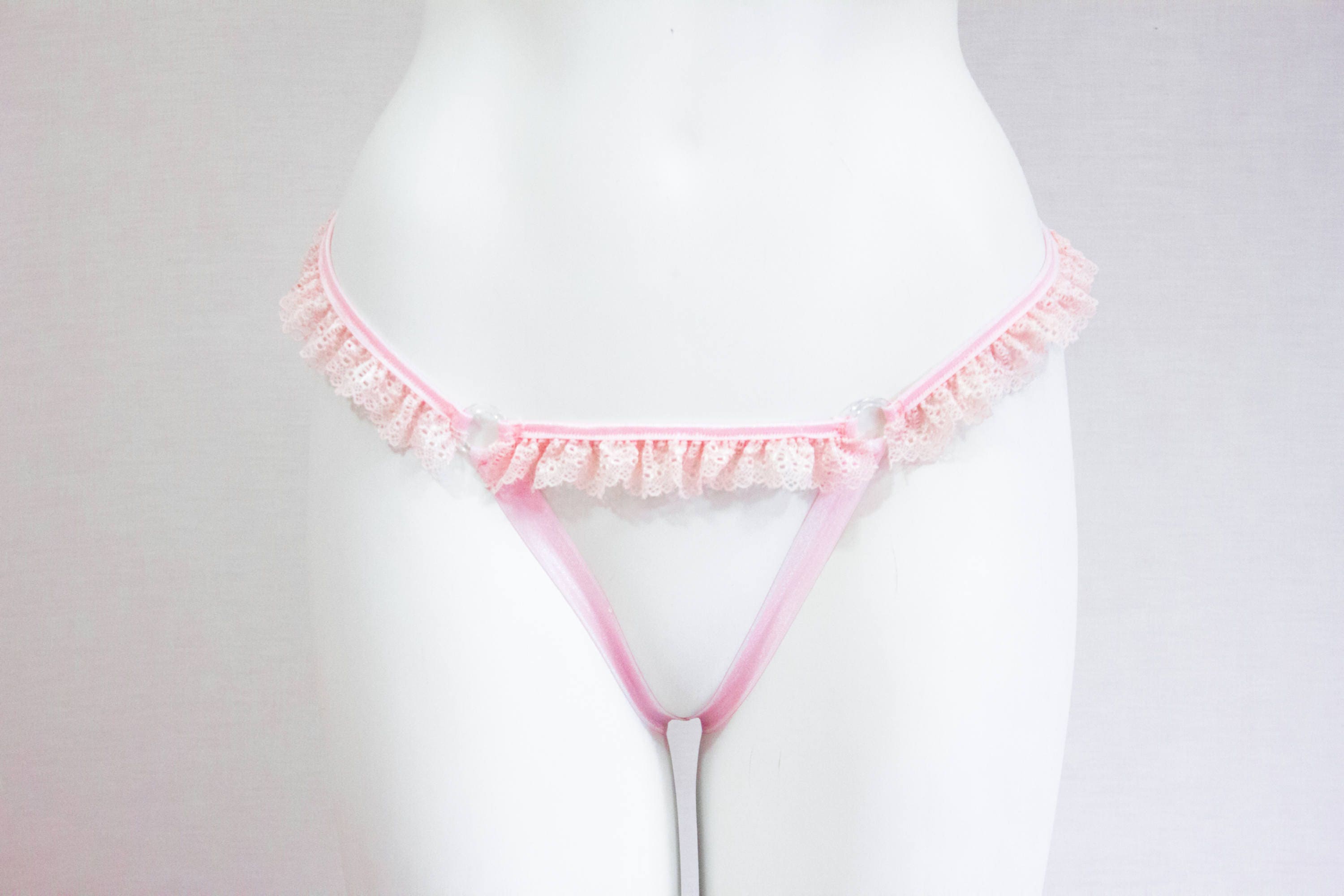 Pink Lace Lingerie: Lace Panties, DDLG, Open Crotch, Pastel Goth, Thong Underwear, Adult Roleplay, Exotic Dancewear, Boudior, Ruffle Bikini Bottoms