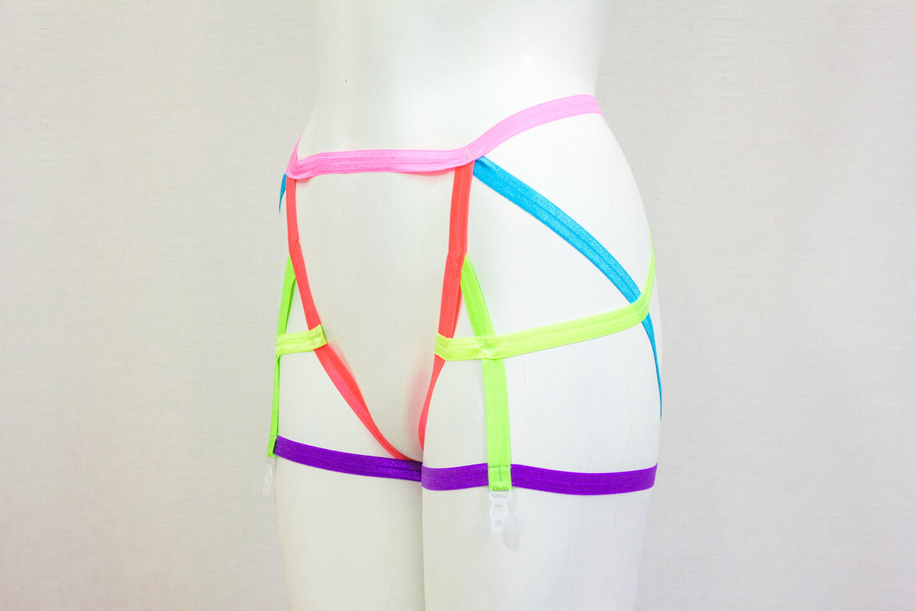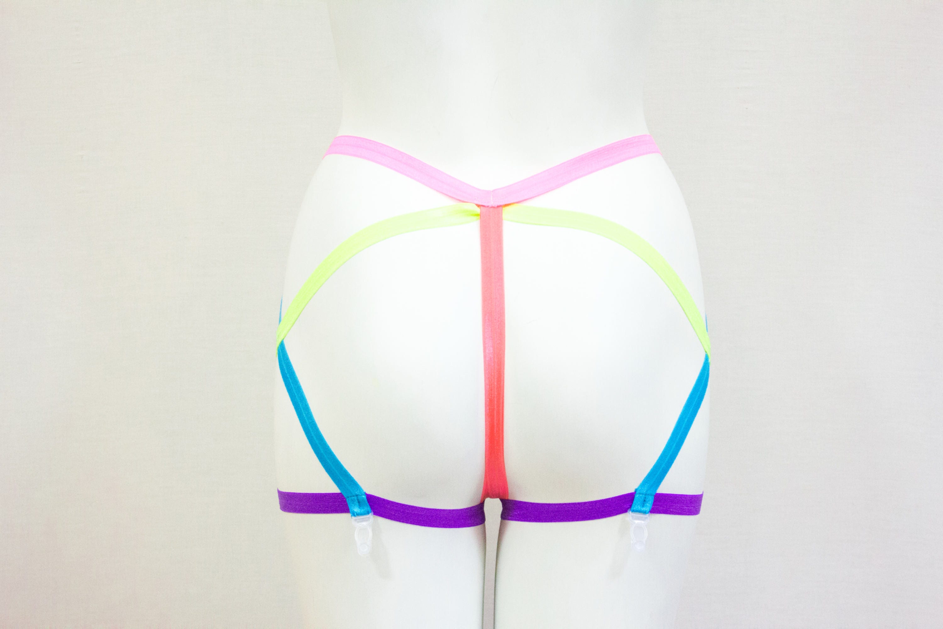 Rainbow Clothing,Pride Outfit, Festival Fashion, Neon Lingerie, Exotic Dancewear, Neon Clothing, Lesbian Fashion, Garter Belt, Body Harness