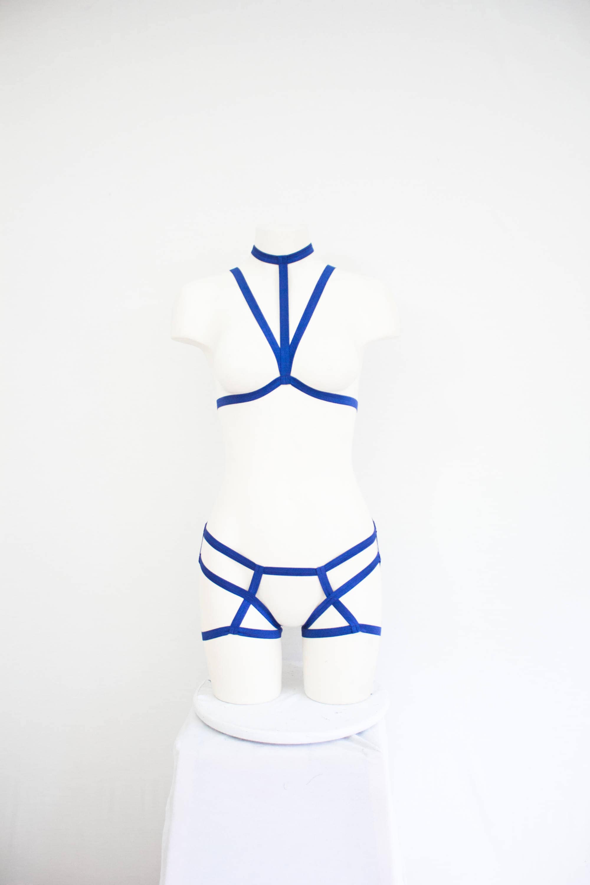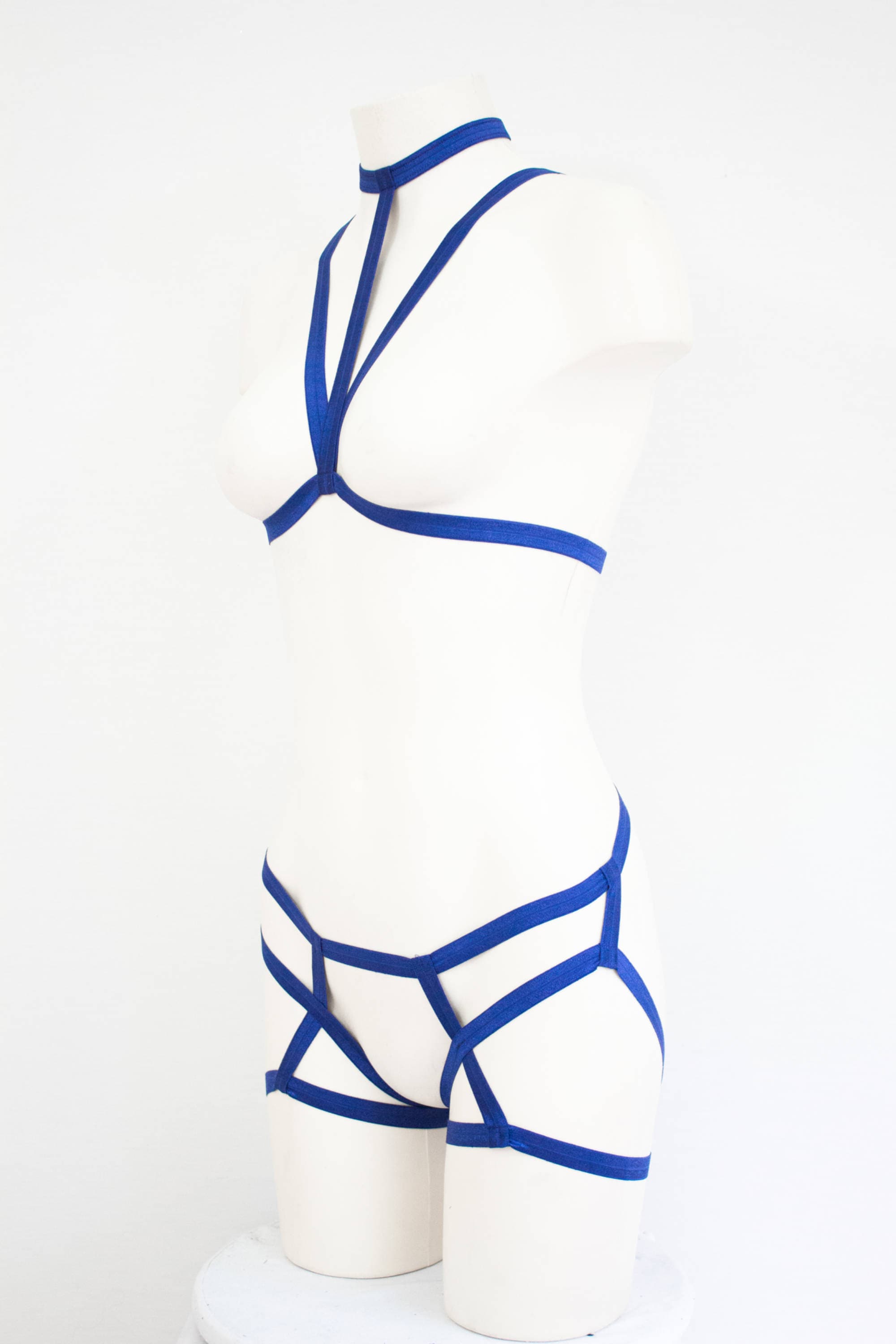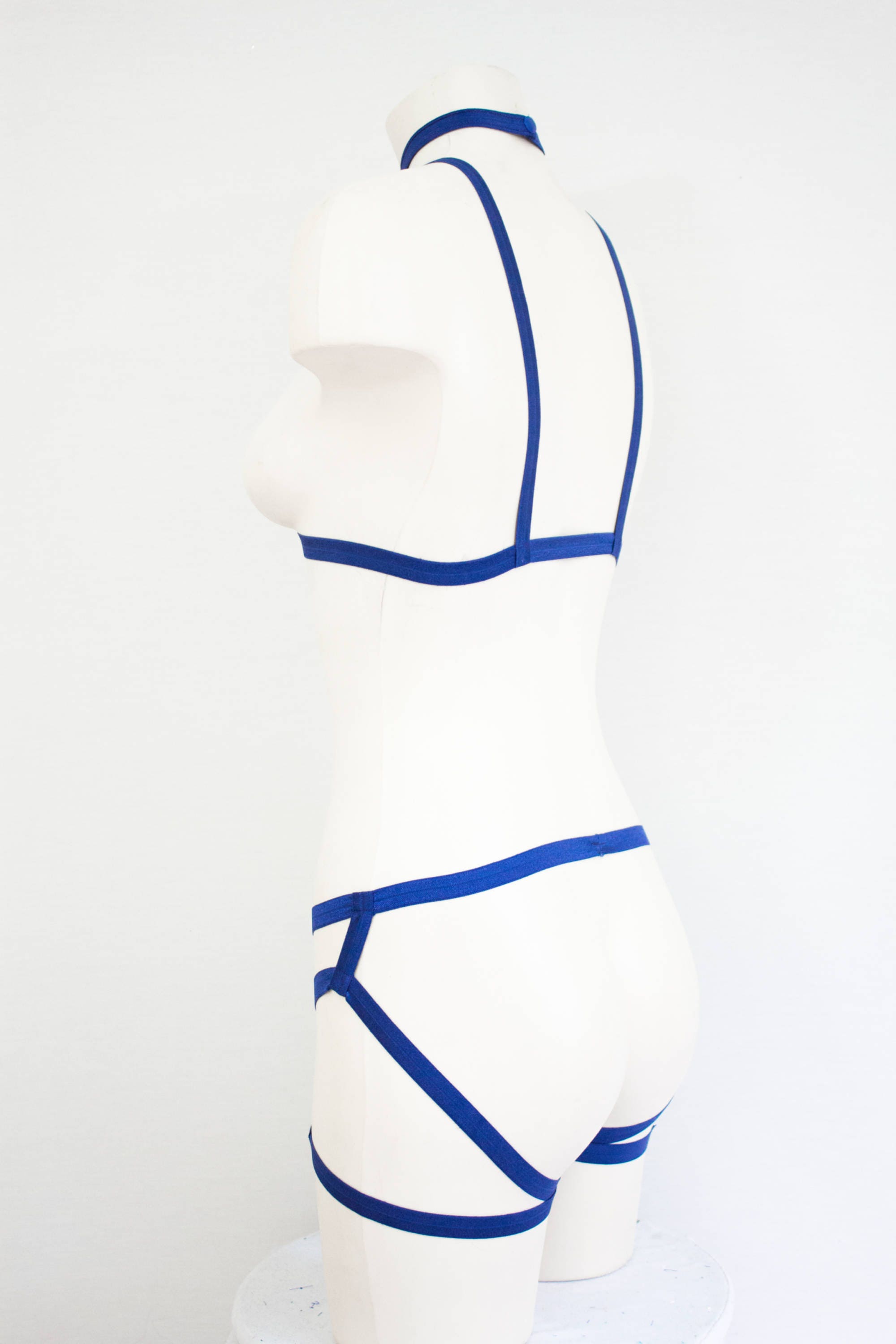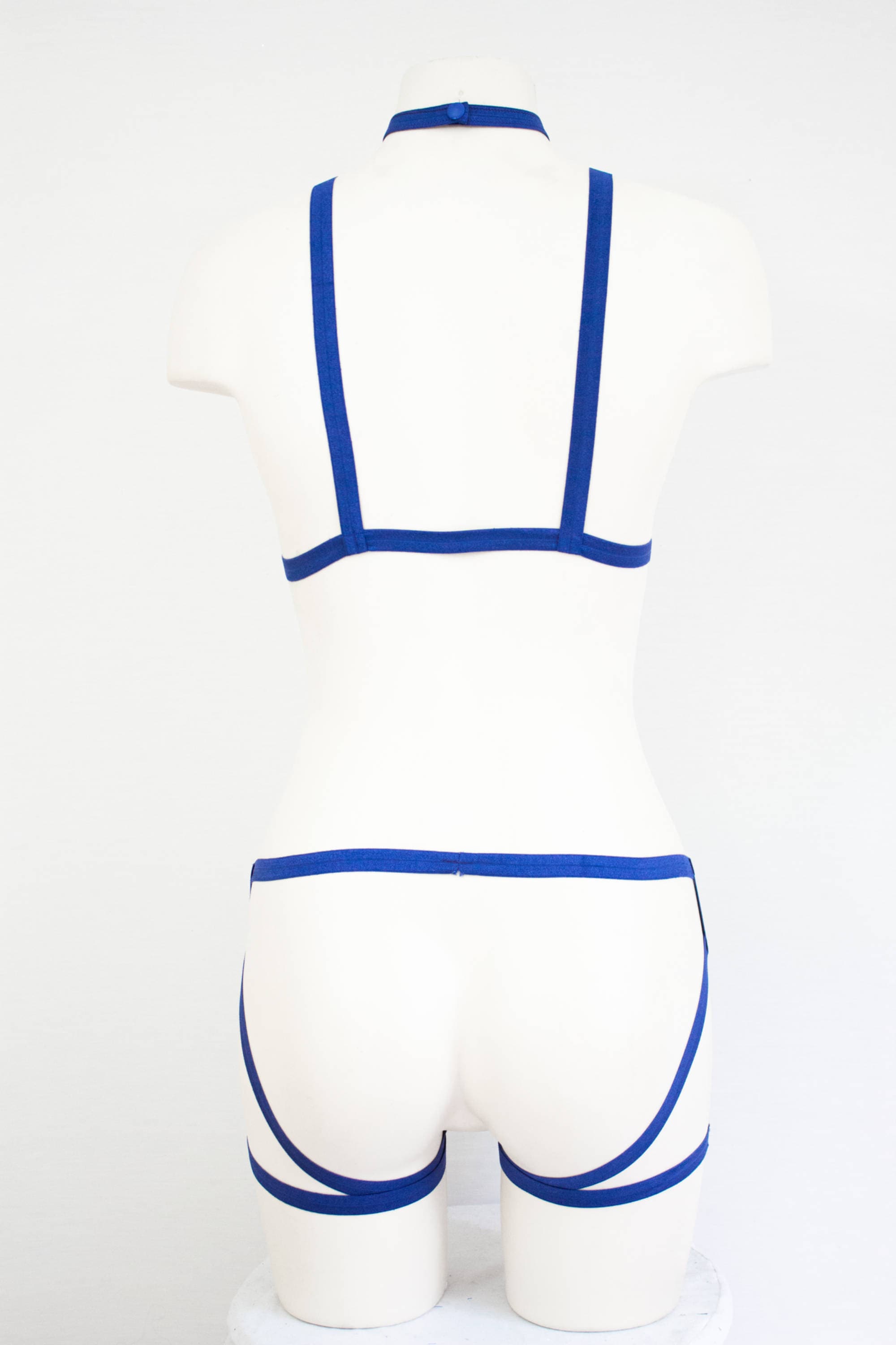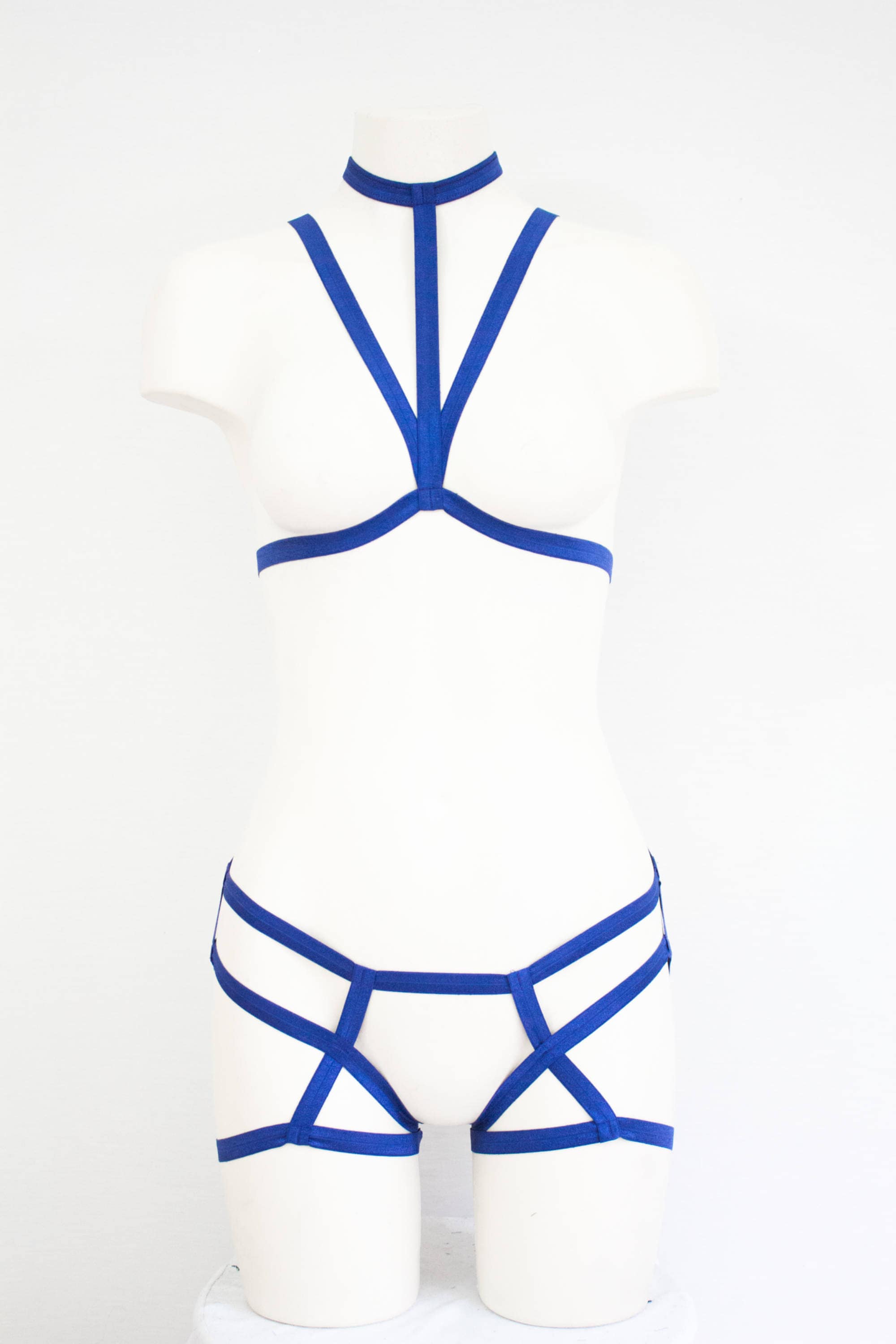 Blue Cage Bra Harness Underwear Lingerie Set: Festival Fashion, Body Harness, Blue Lingerie, Open Crotch, Exotic Dancewear, Booty Shorts