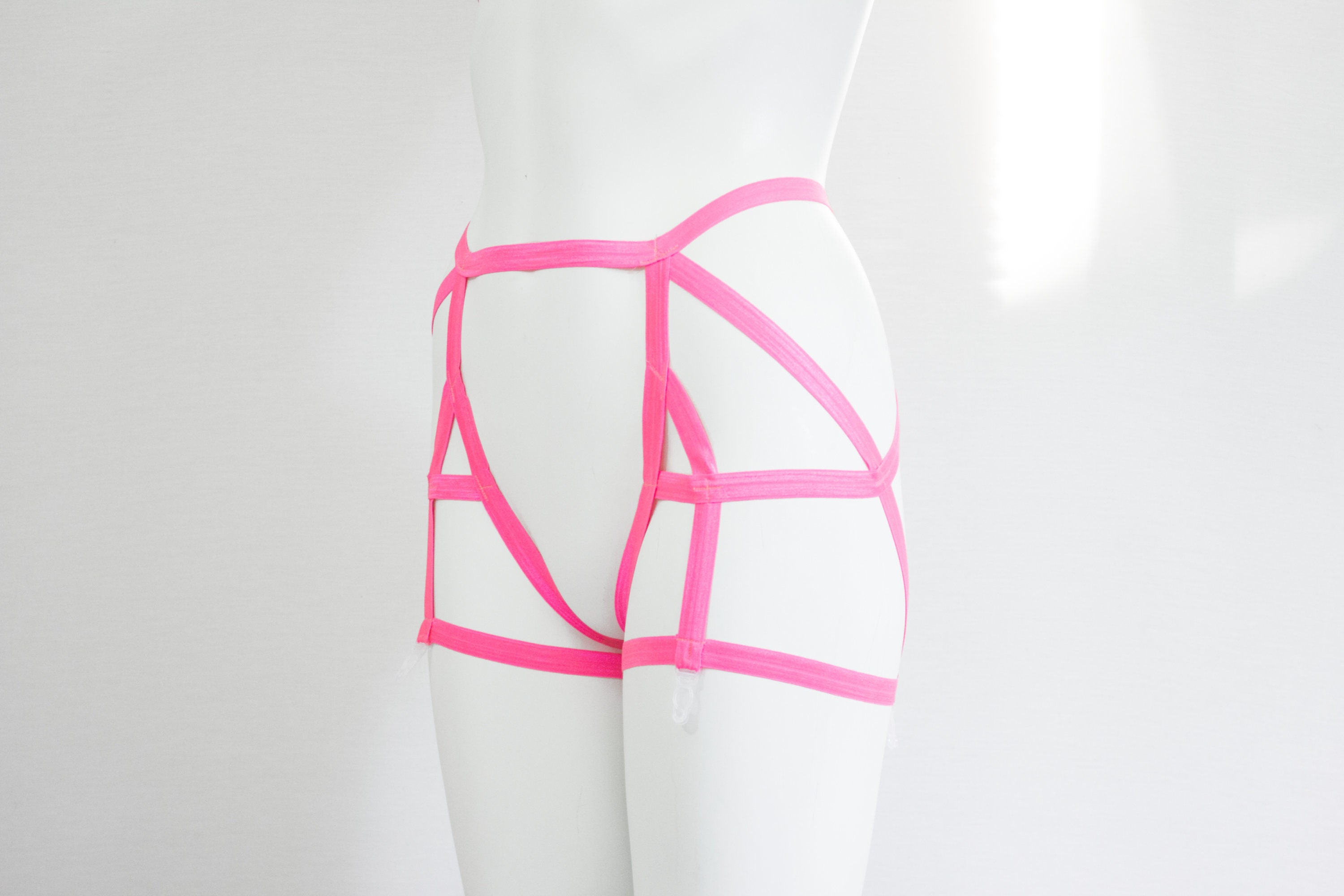 Neon Pink Lingerie, Festival Pants, Rave Outfit, Glow Clothing, Pink Garter Belt, Pin Up Boudoir, Glow Lingerie, Exotic Dancewear, Strappy Lingerie