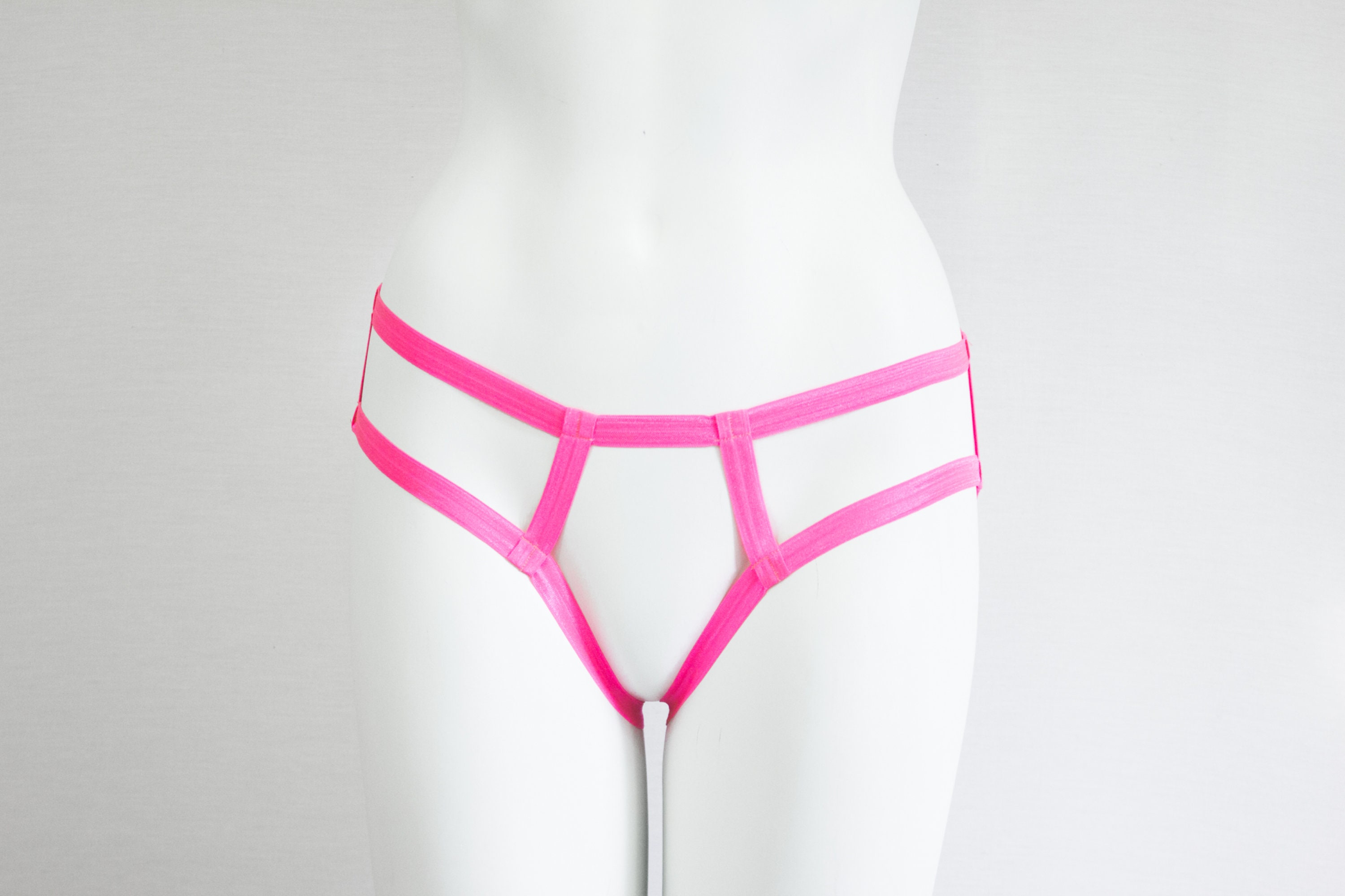 DDLG Panties, Pink Briefs, Open Crotch, Festival Shorts, Exotic Dancewear, Glow Clothing, Sissy Panties, Strappy Underwear, Neon Lingerie