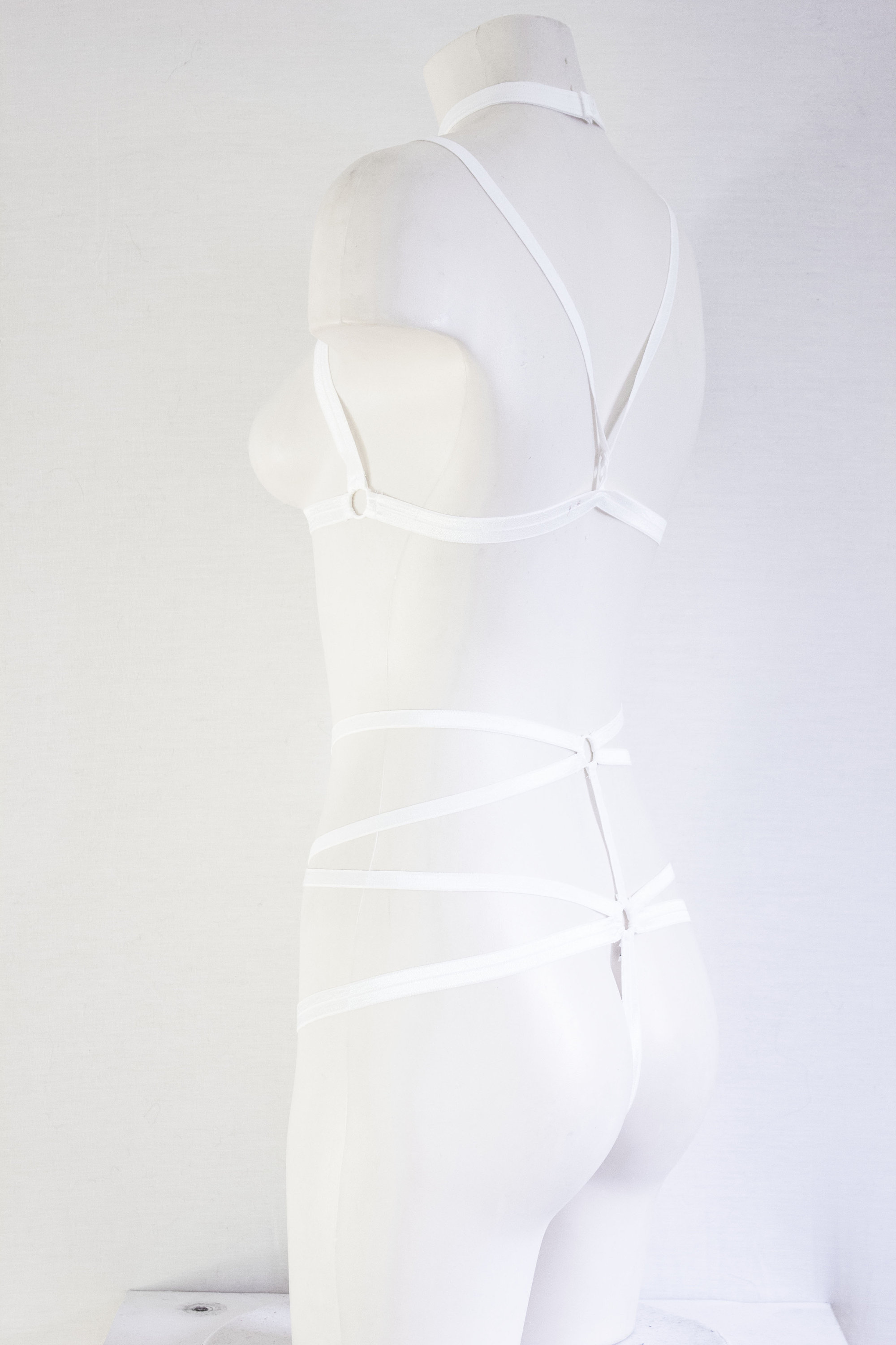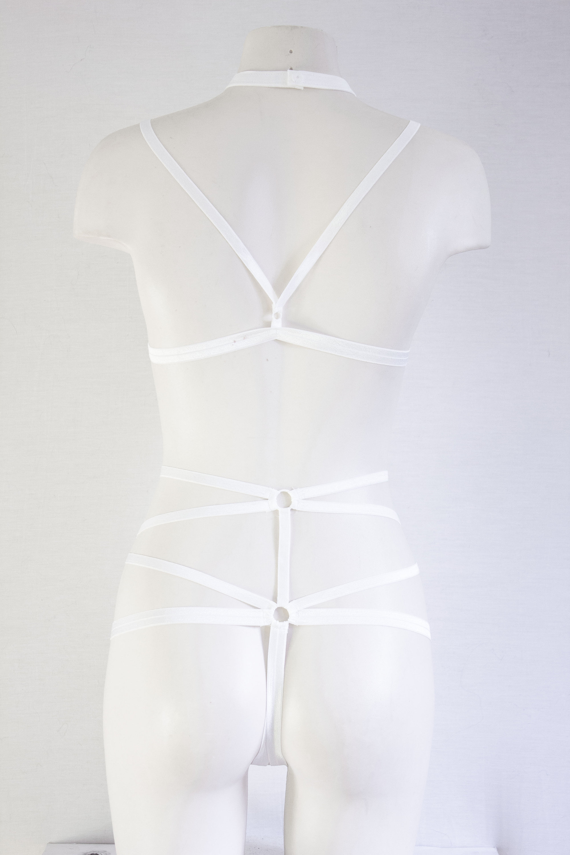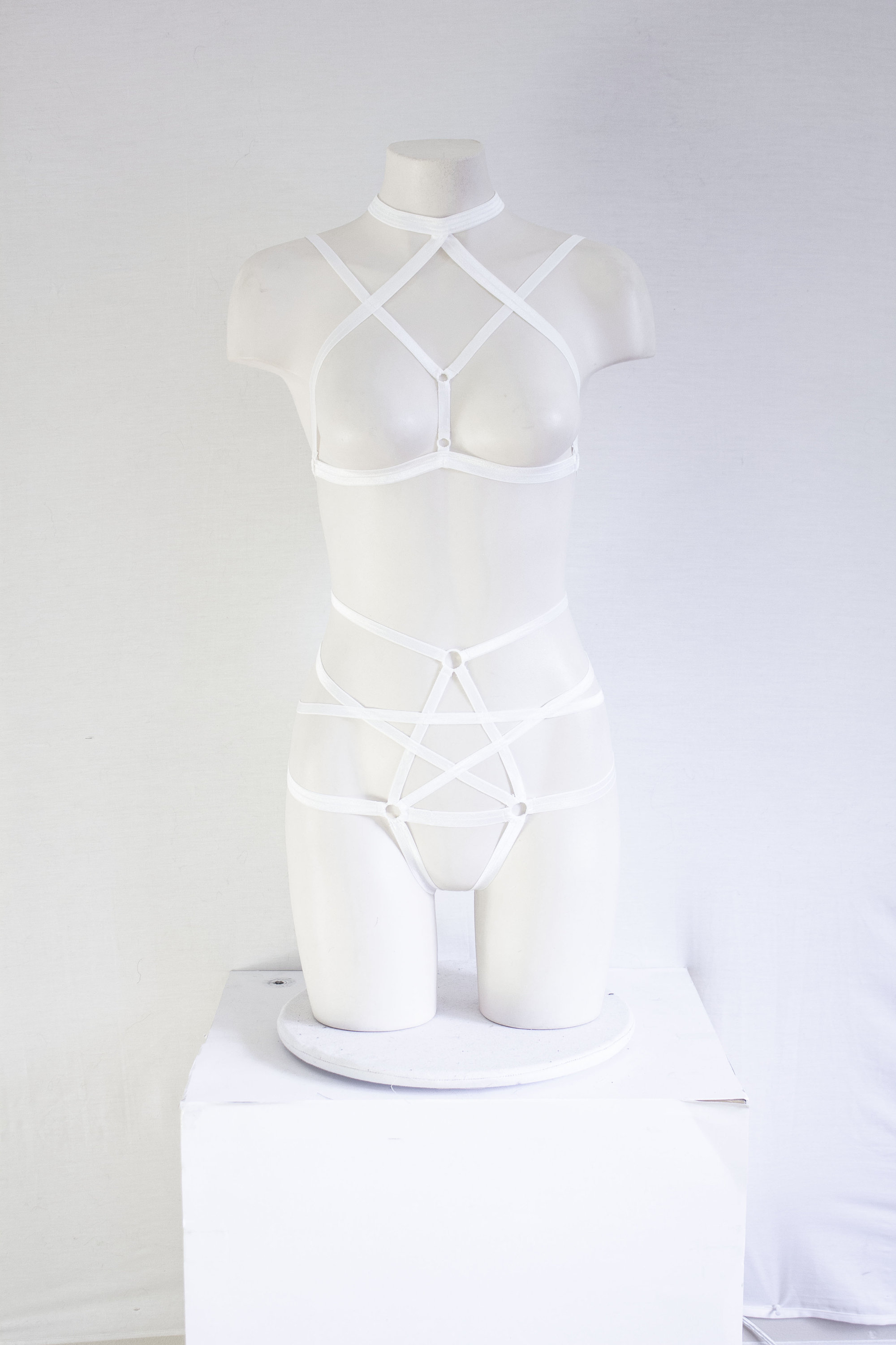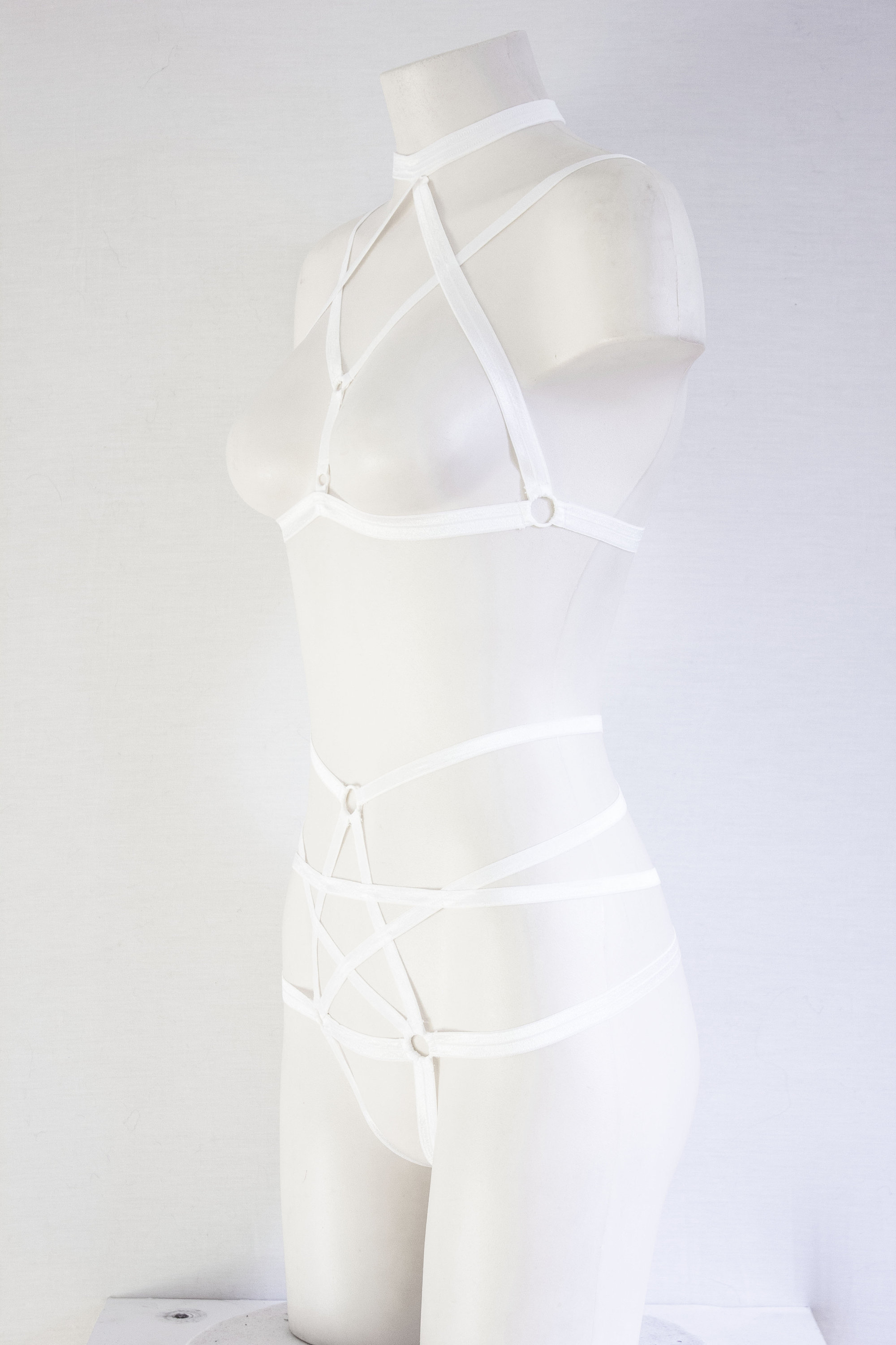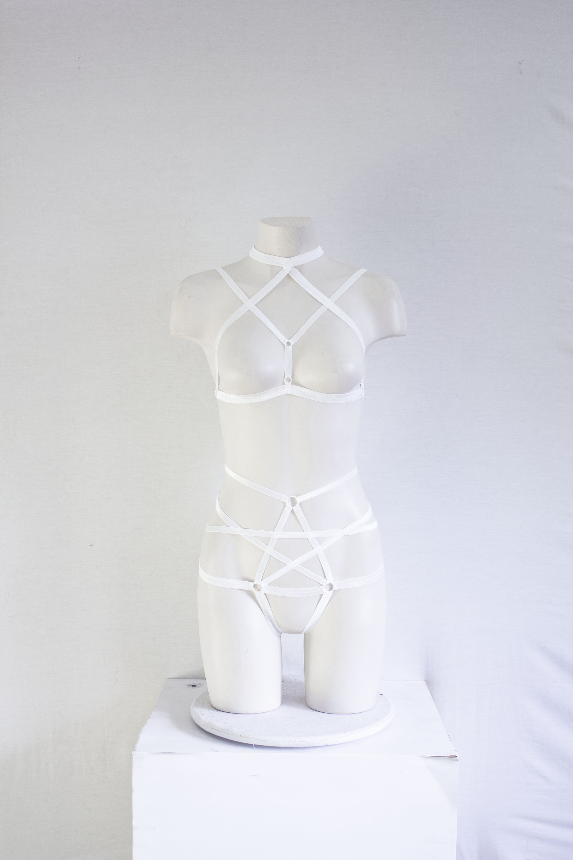 White Lingerie: White Body Harness, Pentagram Panties, Goth Clothing, Exotic Dancewear, Boudoir, Body Harness Set, Strappy Outfit, Festival