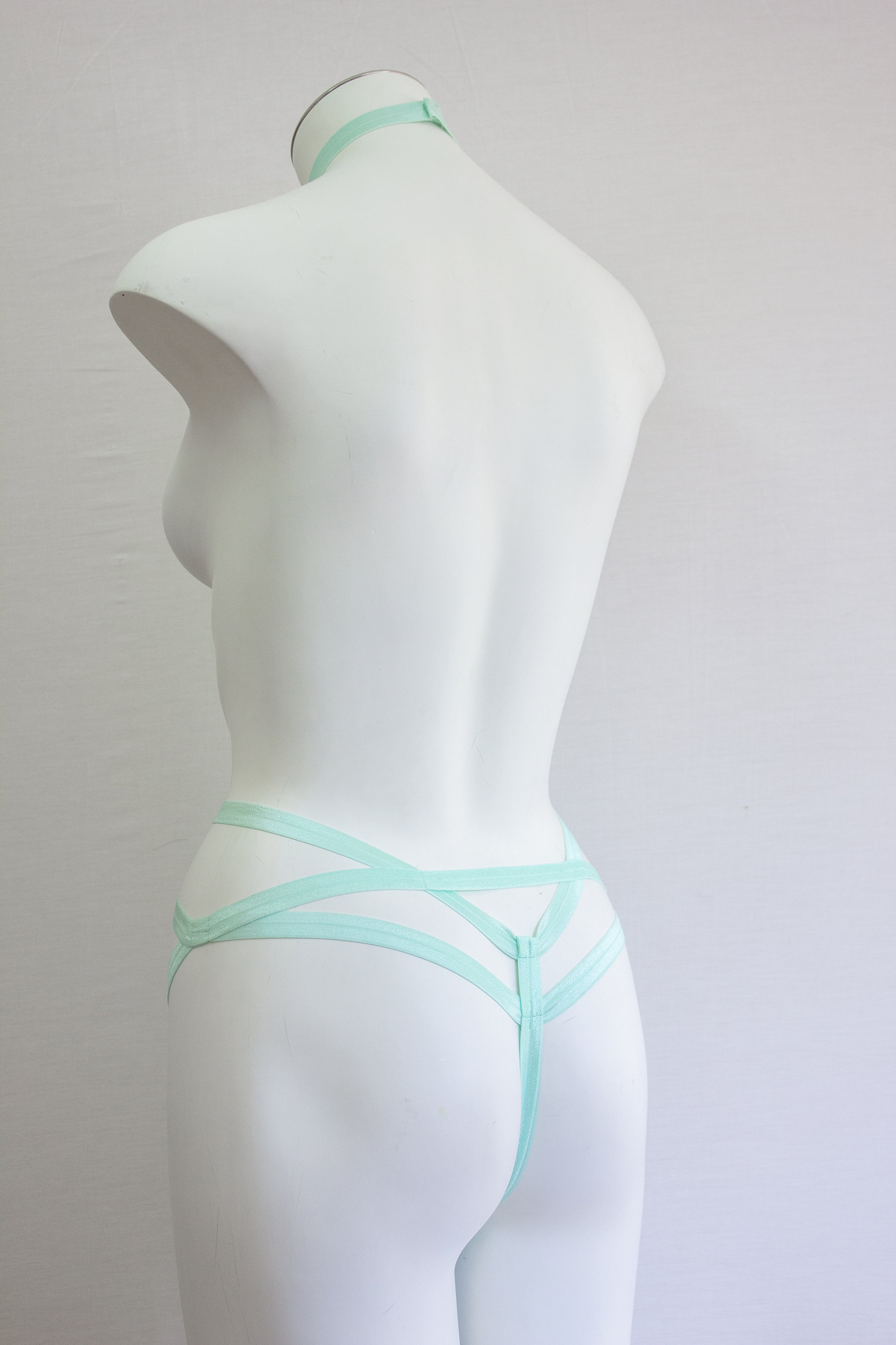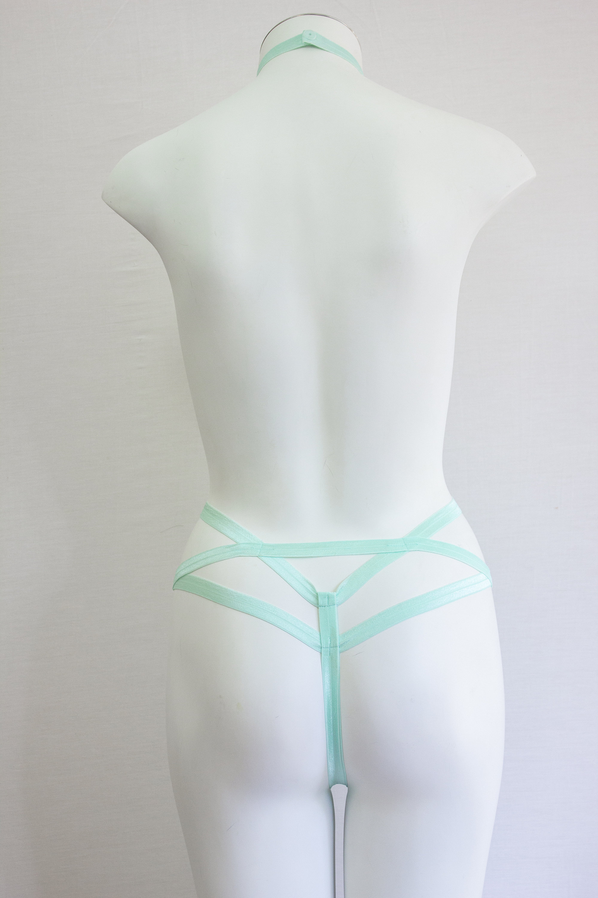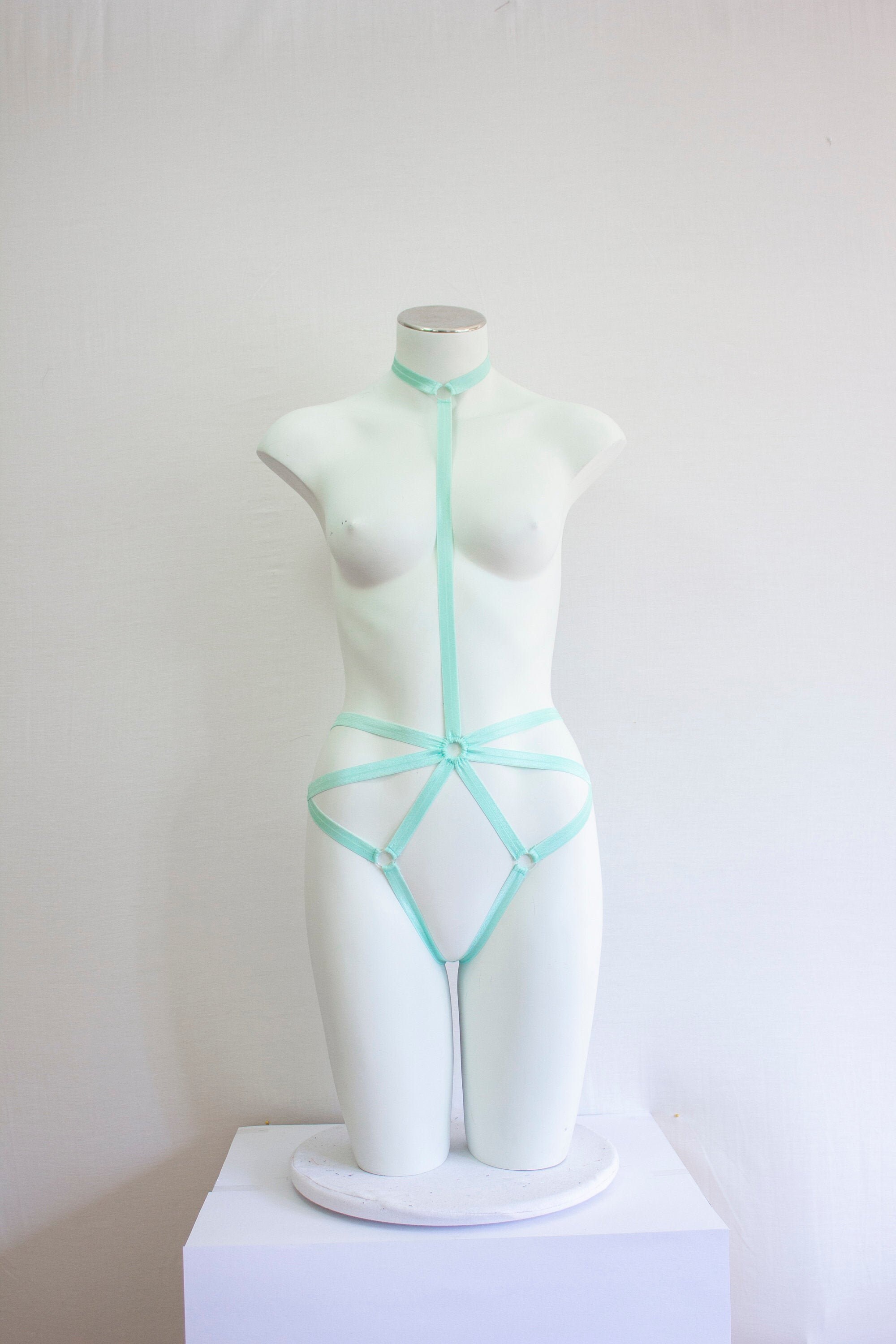 Green Lingerie, Pastel Green Bodysuit, Festival Fashion, Pastel Goth, Green Body Harness, Exotic Dancewear, Rave Clothing, Boudoir Outfit