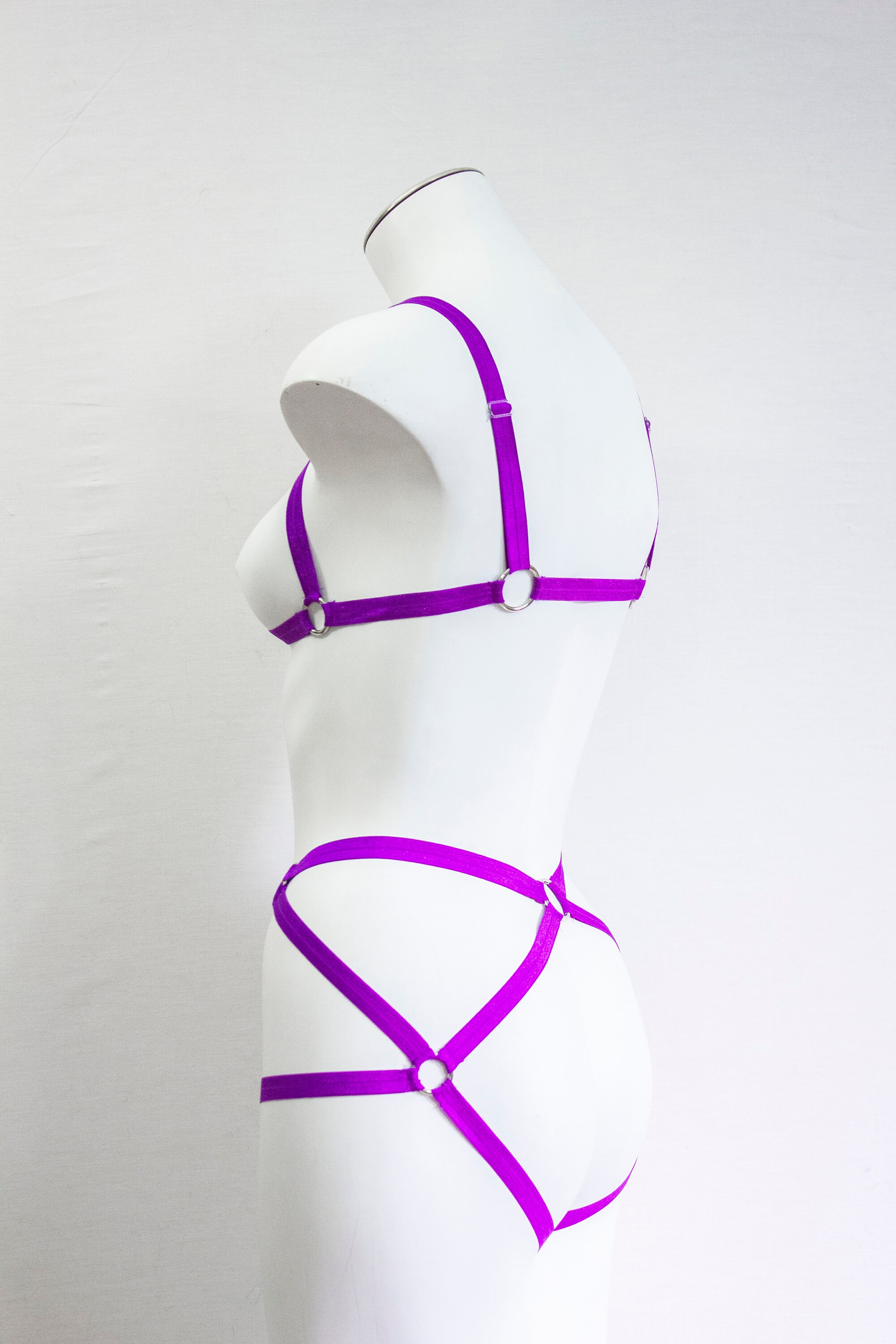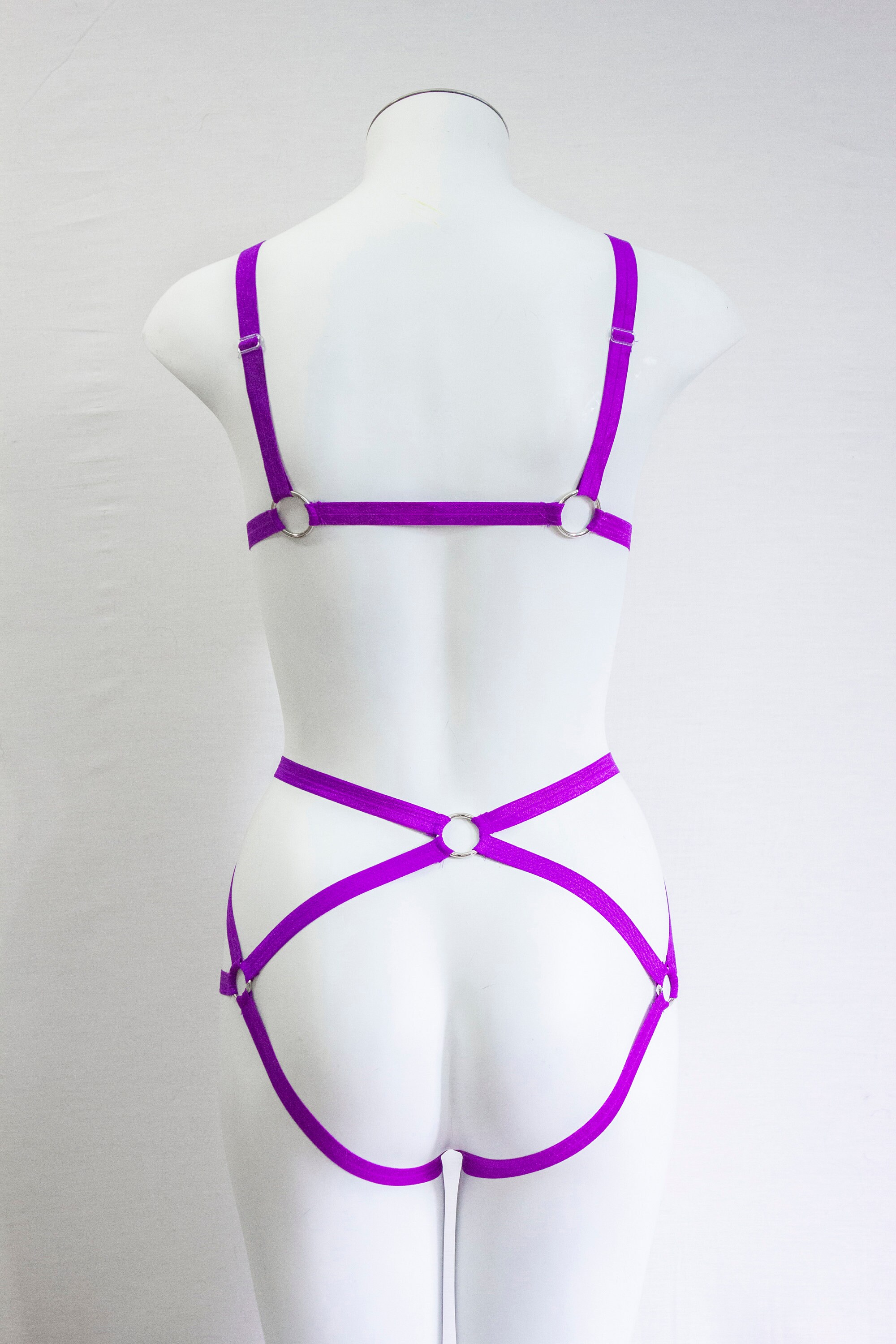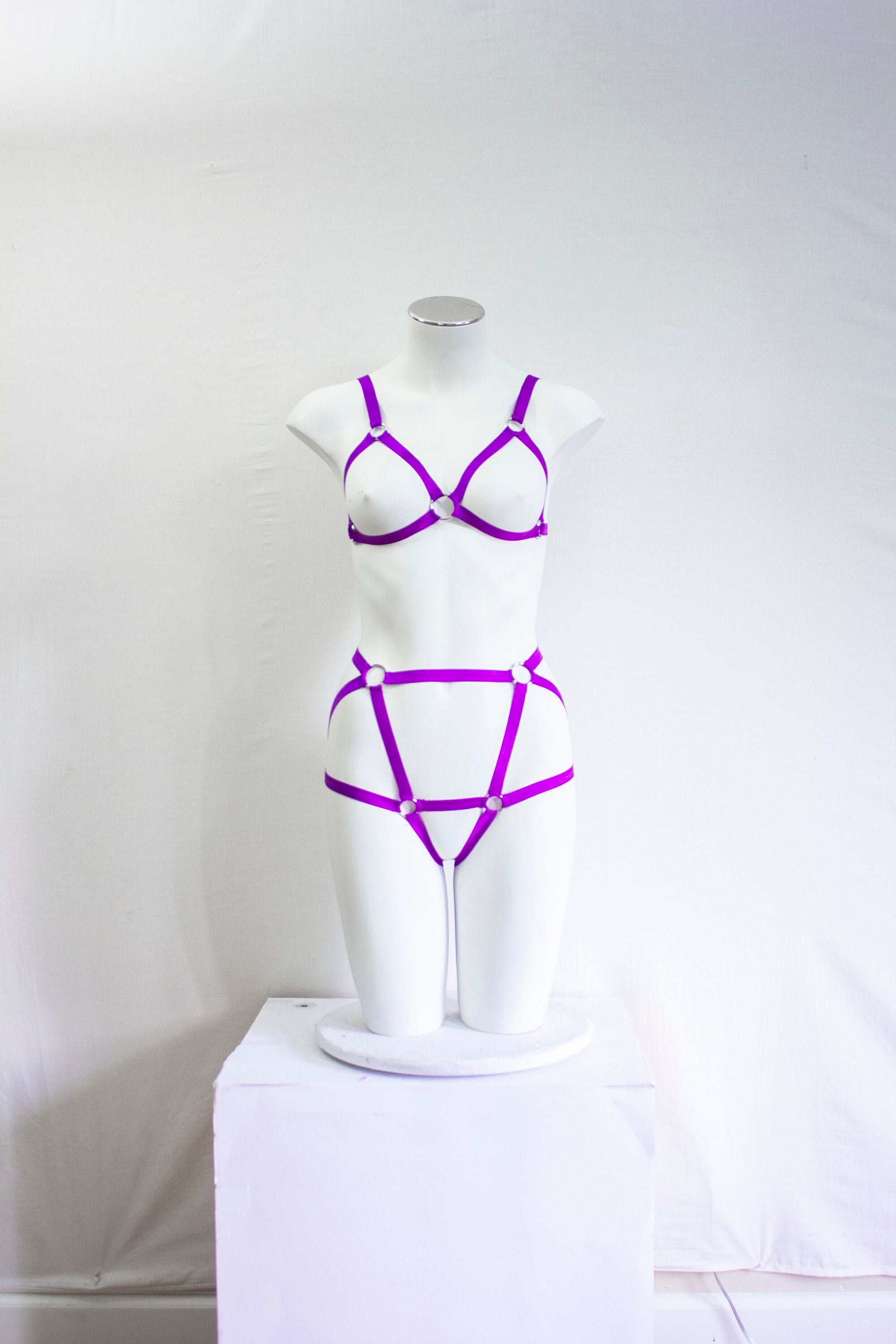 Purple Lingerie: Neon Body Harness, Cage Bralette, Festival Outfit, Exotic Dance Wear, Rave Fashion, EDM Costume, Burlesque Lingerie, Pin Up