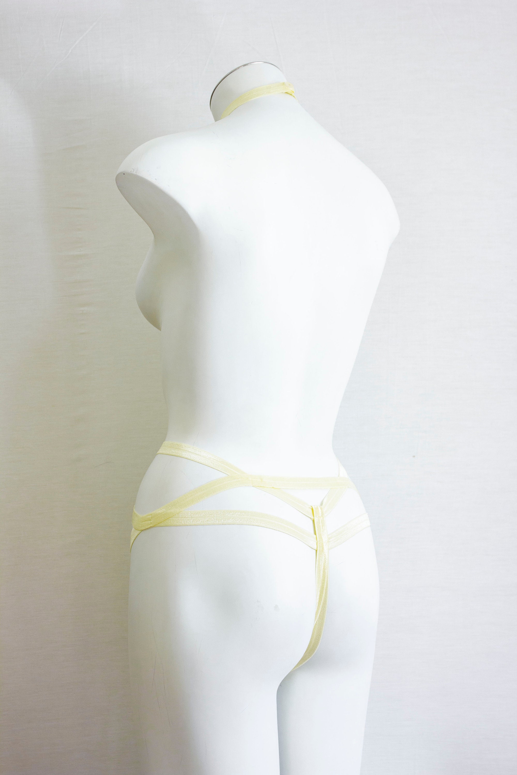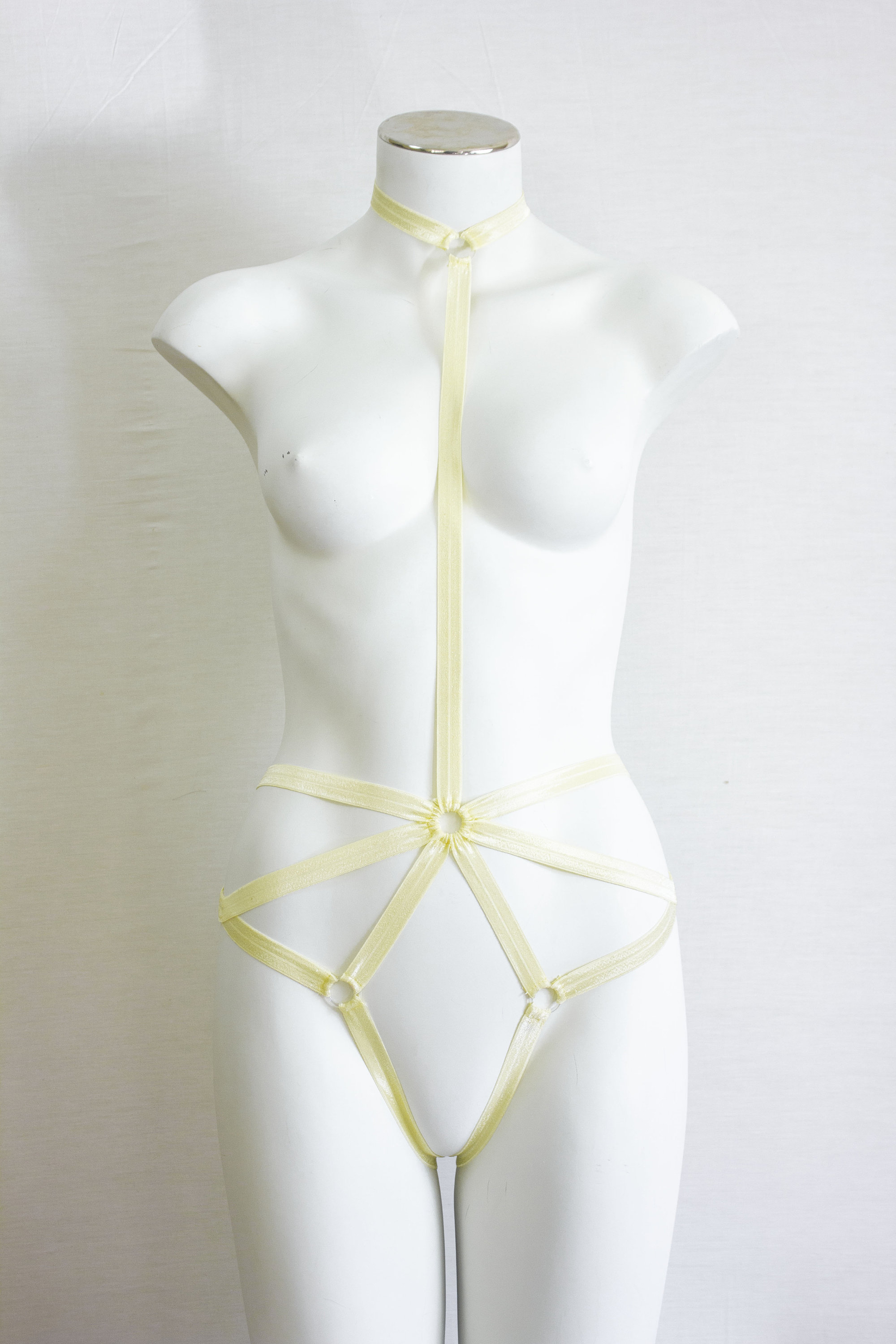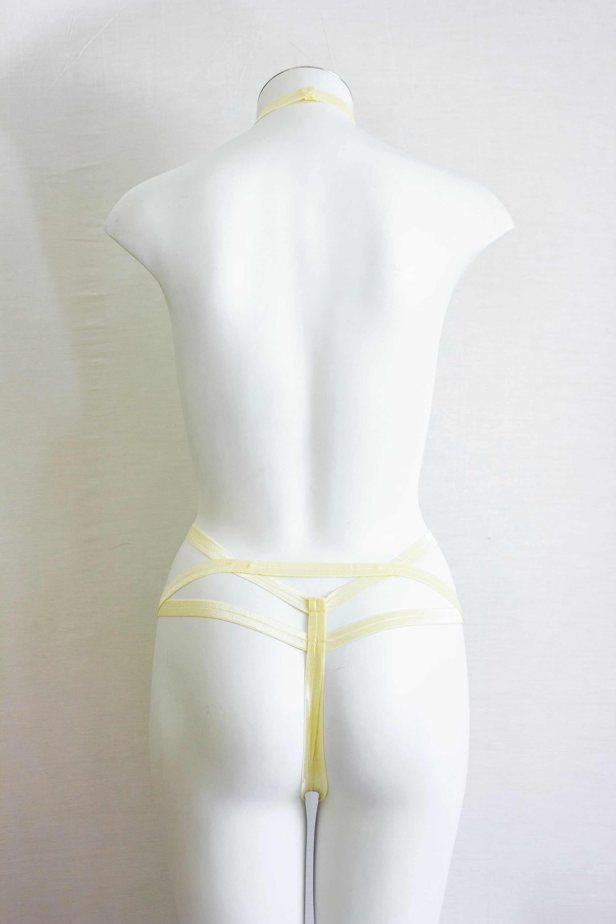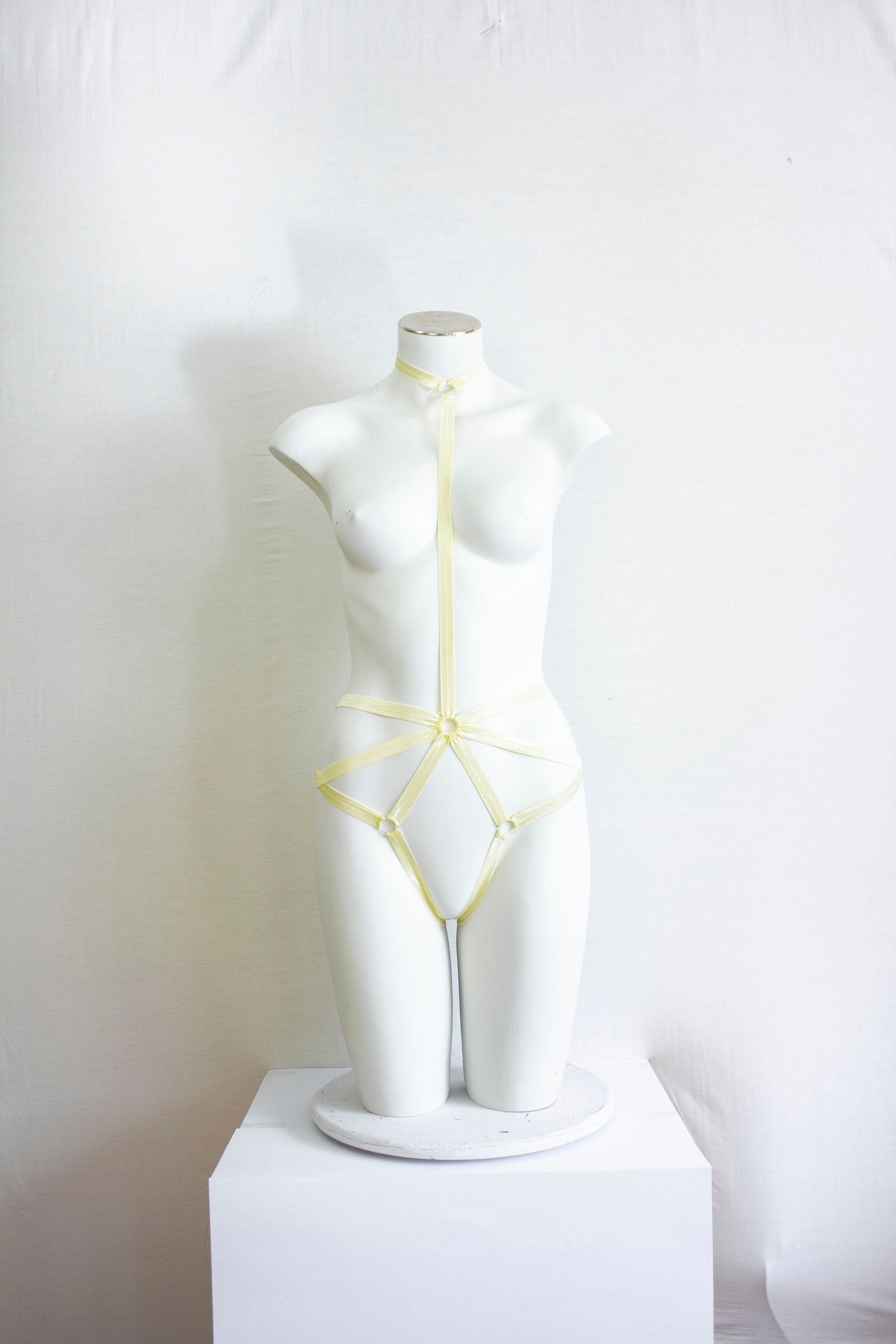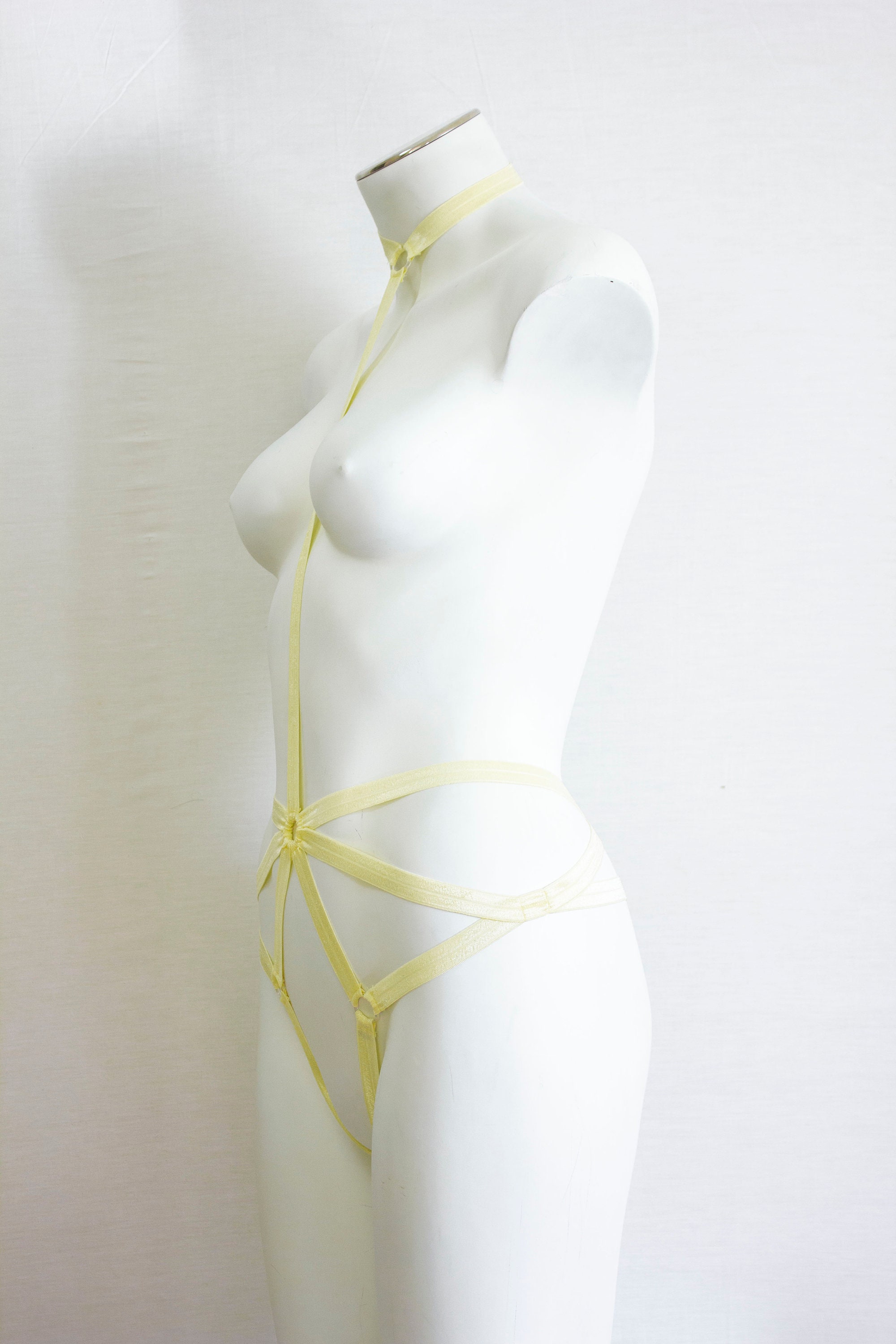 Yellow Body Harness, Pastel Goth Clothing, Pastel Yellow Lingerie, Exotic Dance Outfit, Festival Harness, Burlesque Costume, Halter Harness