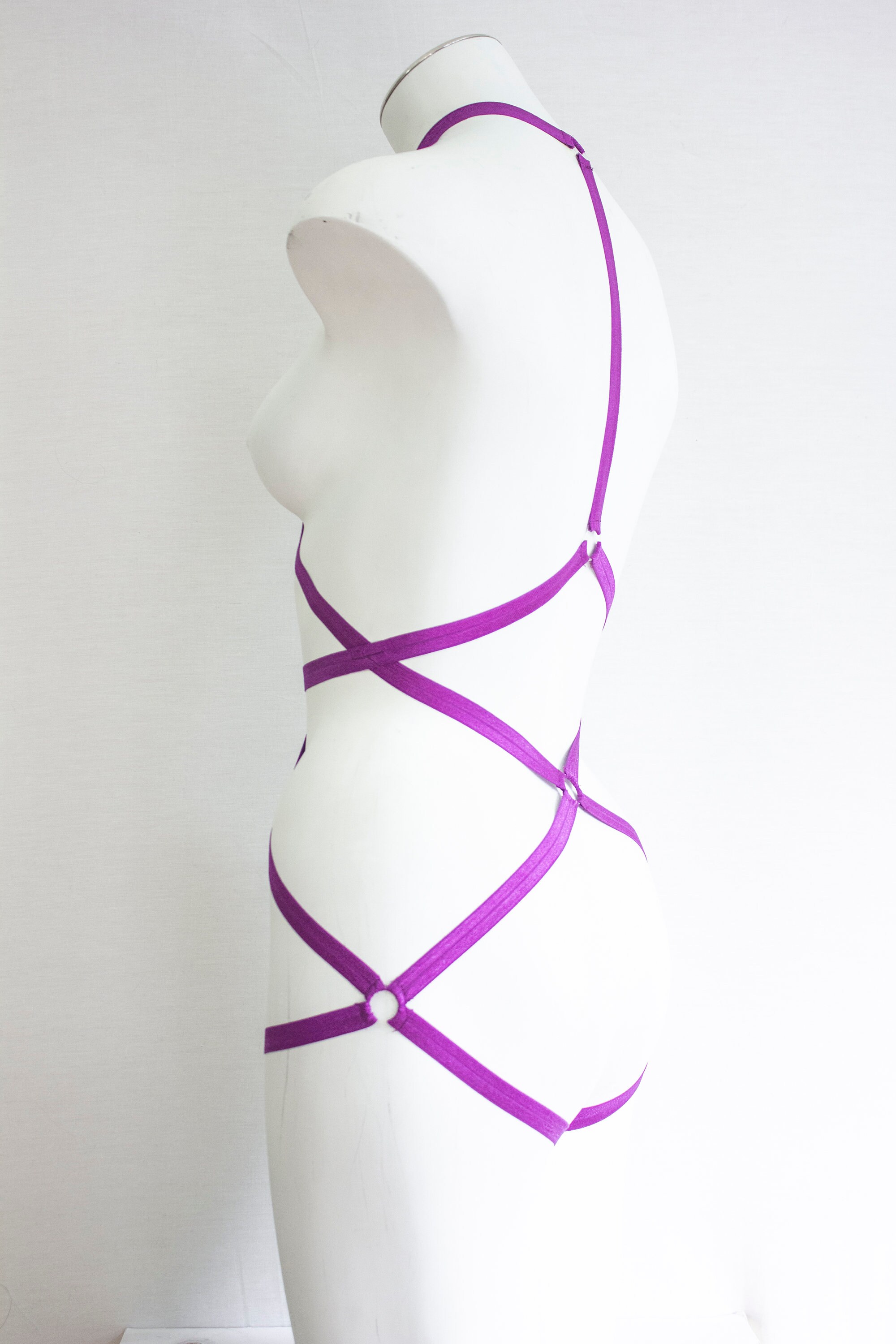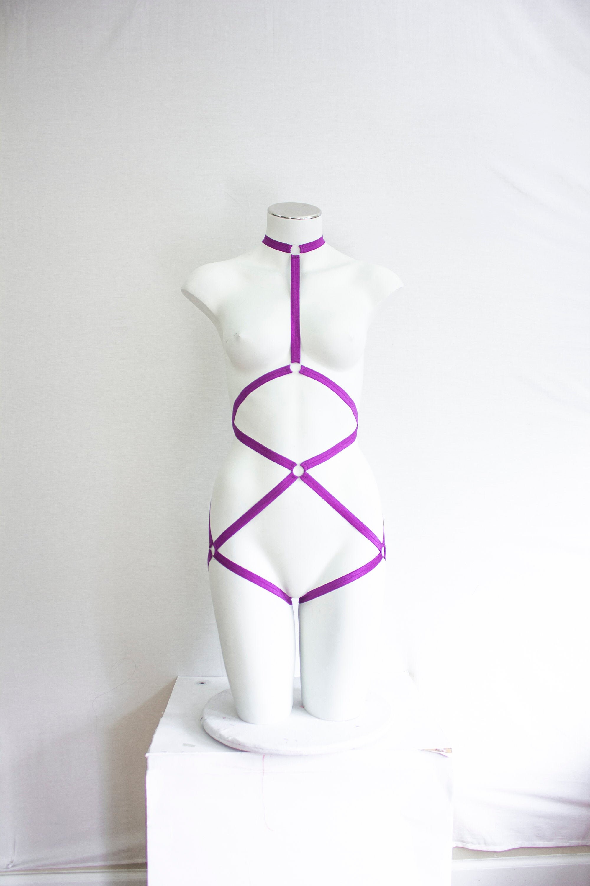 Neon Body Harness, Purple Lingerie, Exotic Dancewear, Festival Bodysuit, Strappy Lingerie, Burlesque Lingerie, Strappy Bodysuit, Dancewear