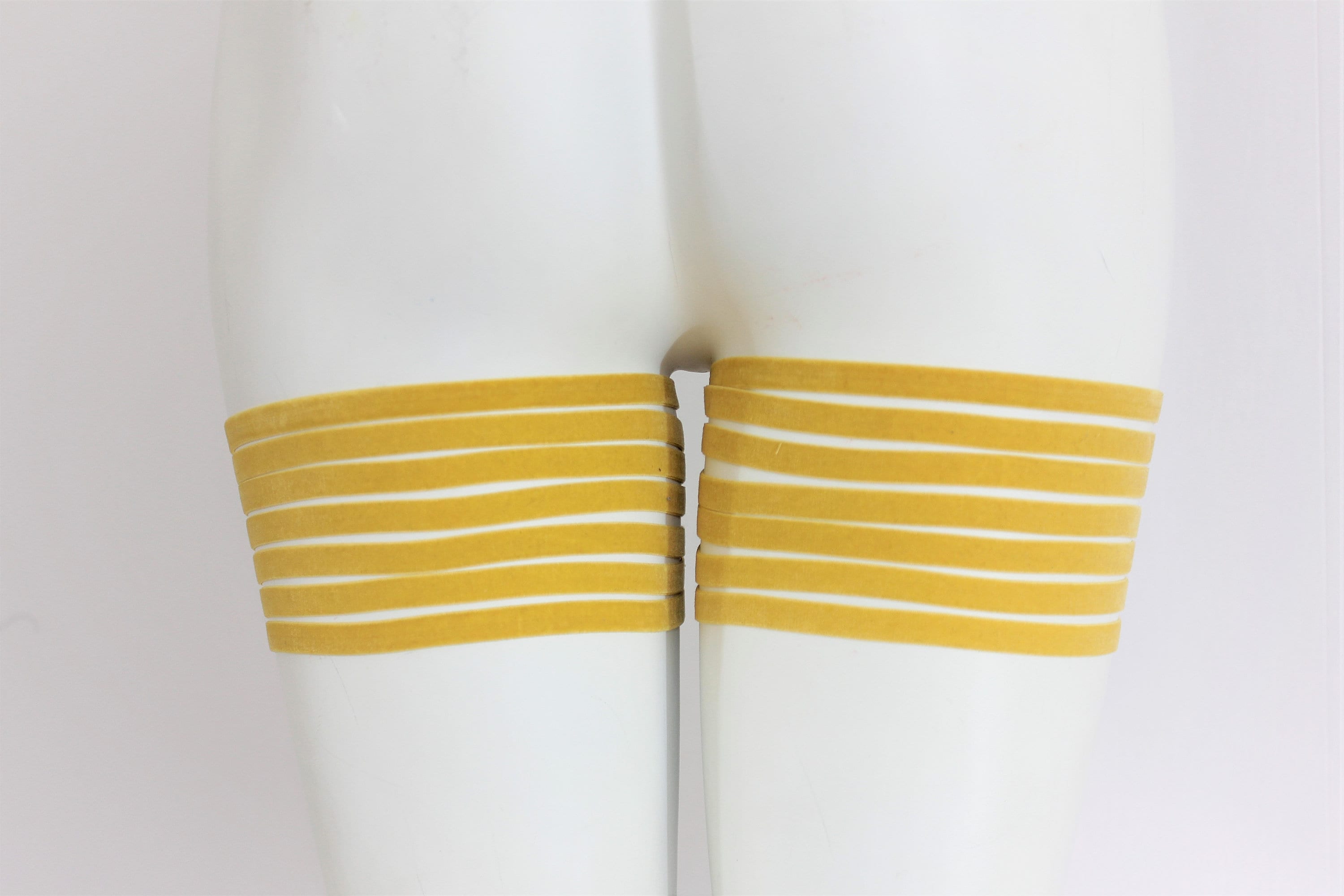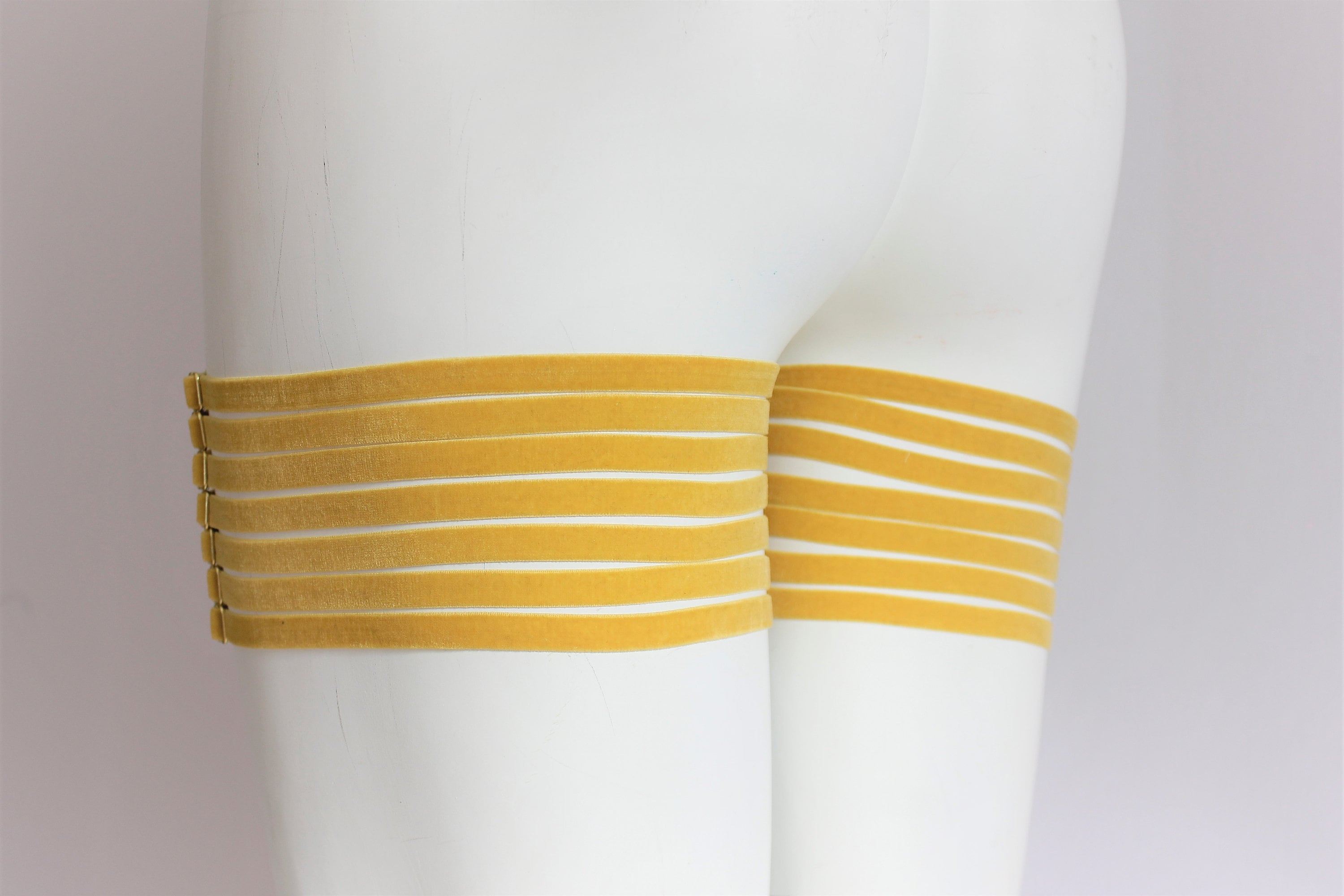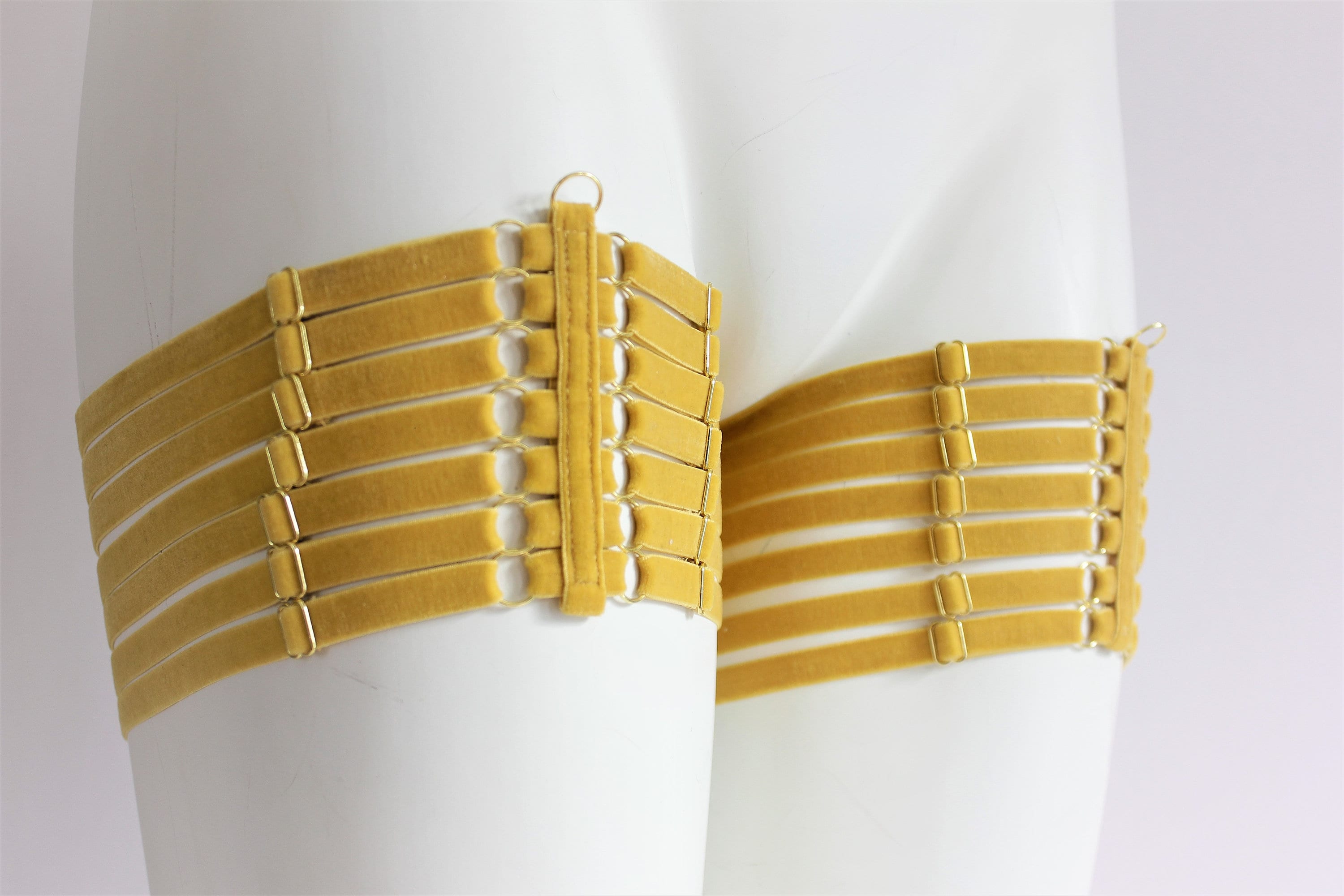 Leg Garters, Velvet Lingerie, Body Harness, Body Accessories , Adjustable Harness, Skinny Strappy, Mustard Yellow, Stretch Harness, Elastic Harness