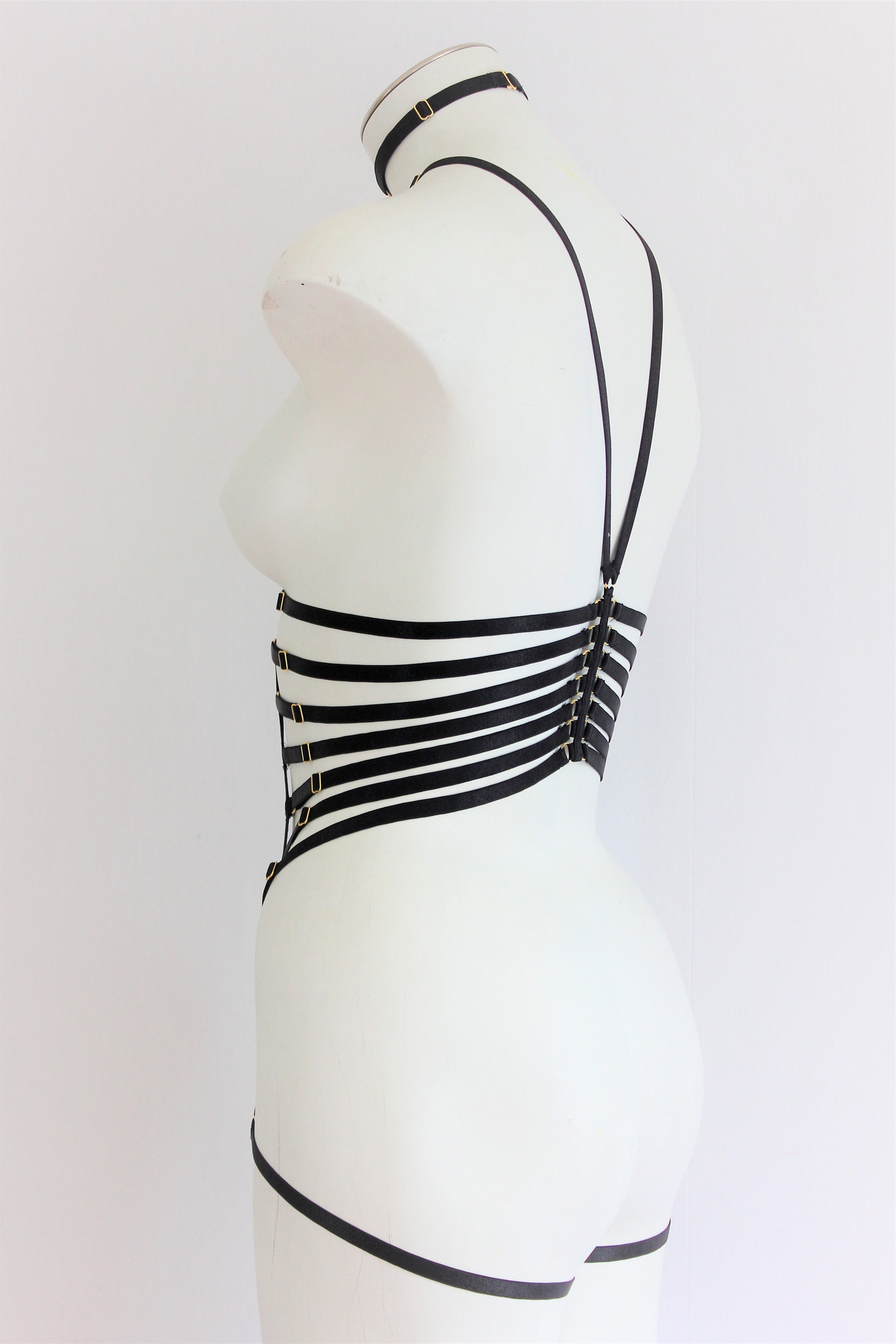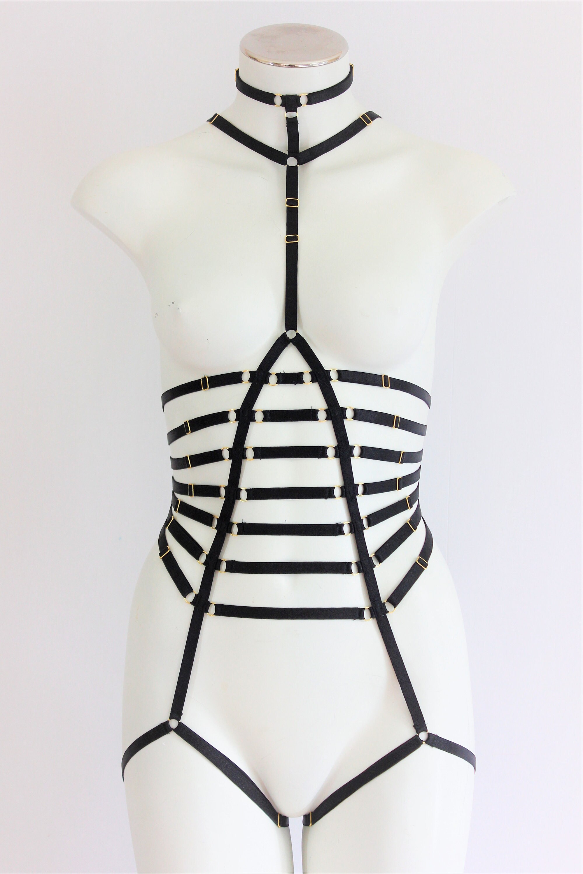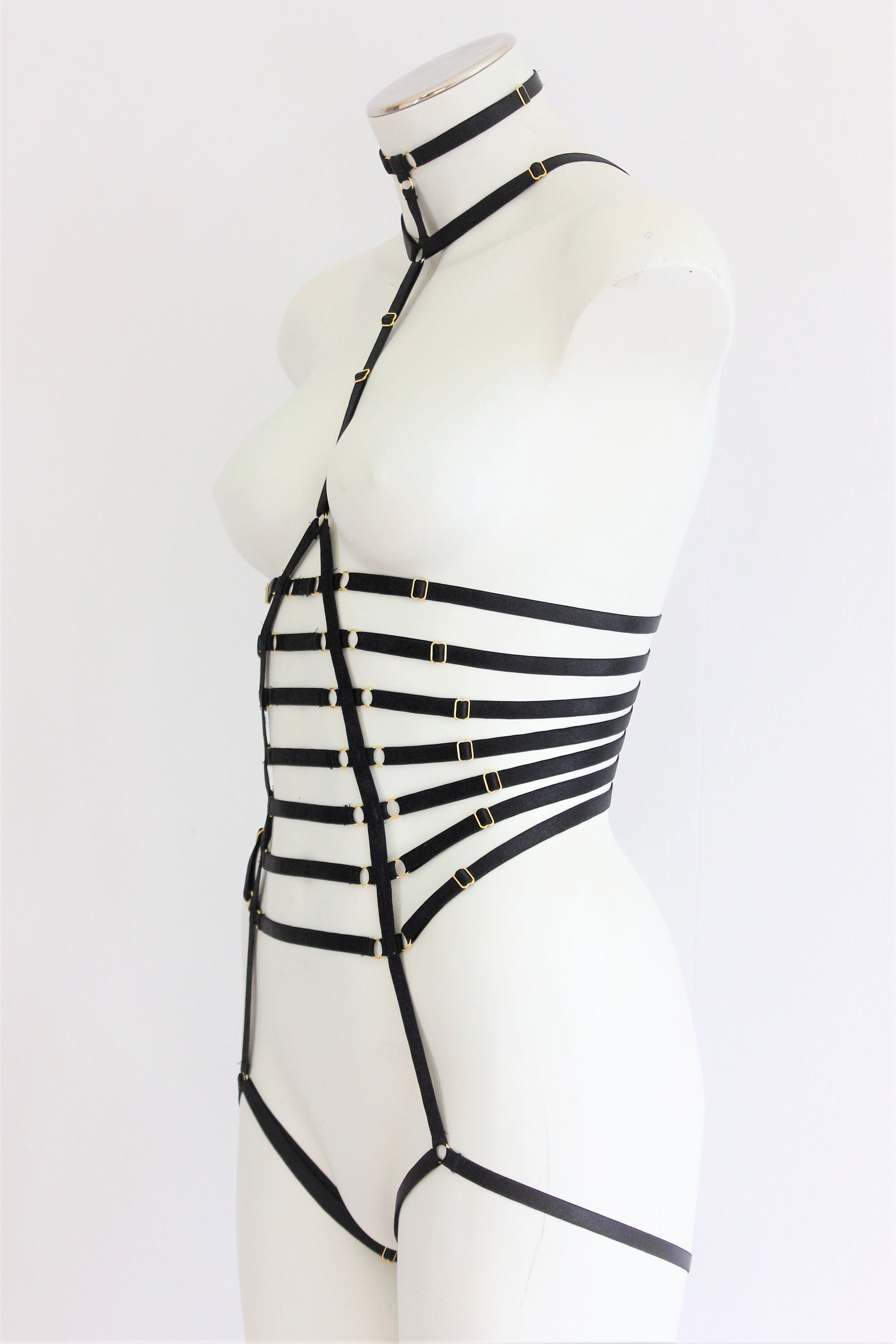 Black Bodysuit, Black Body Harness, Harness Lingerie, Black Fashion, Adjustable Harness, BDSM Fashion, Pole Exotic Dancewear, Skinny Strap