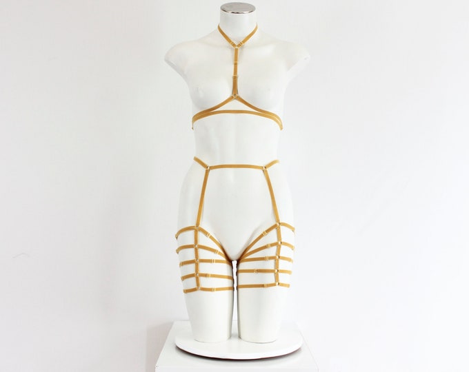 Body Harness Lingerie Set: Cage Bra, Strappy Outfit, Exotic Dancewear, Pole Fitness, Festival Clothing, Boudoir, Harness Top, black leggings